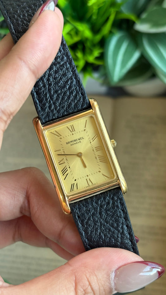 Extremely Rare Vintage Raymond Weil Tank Dress Watch in Leather Strap Roman Dial (Unisex)