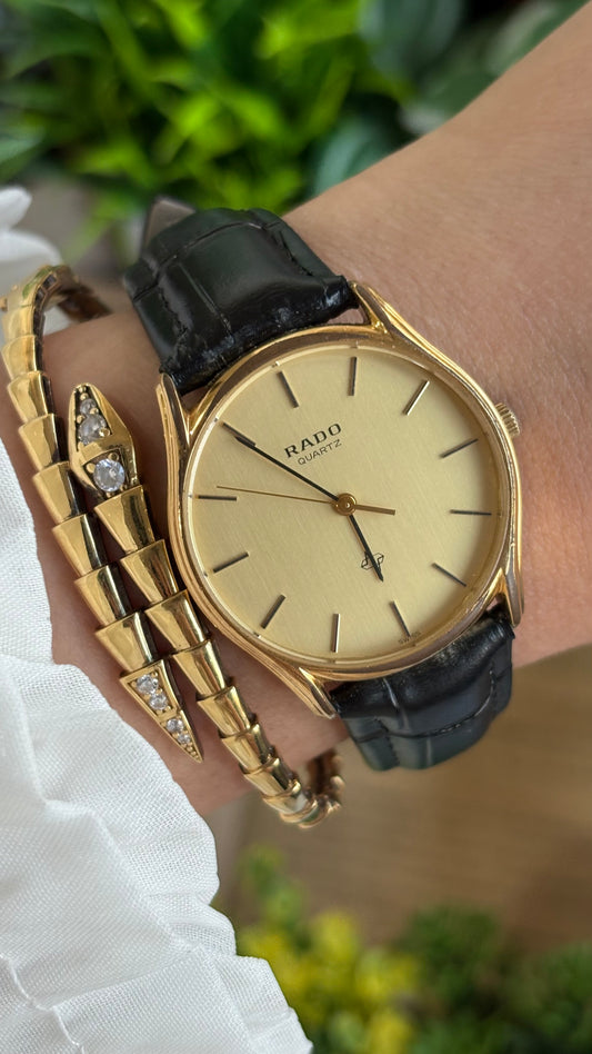 Vintage RADO Men's Dress Watch in Black Leather Strap
