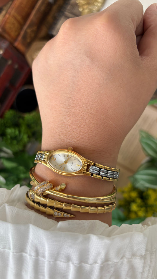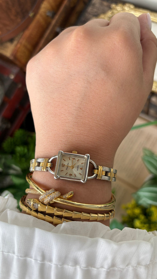 Vintage Persona Dainty Rare Chain Watch in Two-Tone Quartz Lock Style