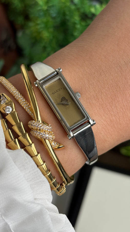 Vintage Gucci 1100L Interchangeable Bezel Set Bangle Watch in Silver Tone