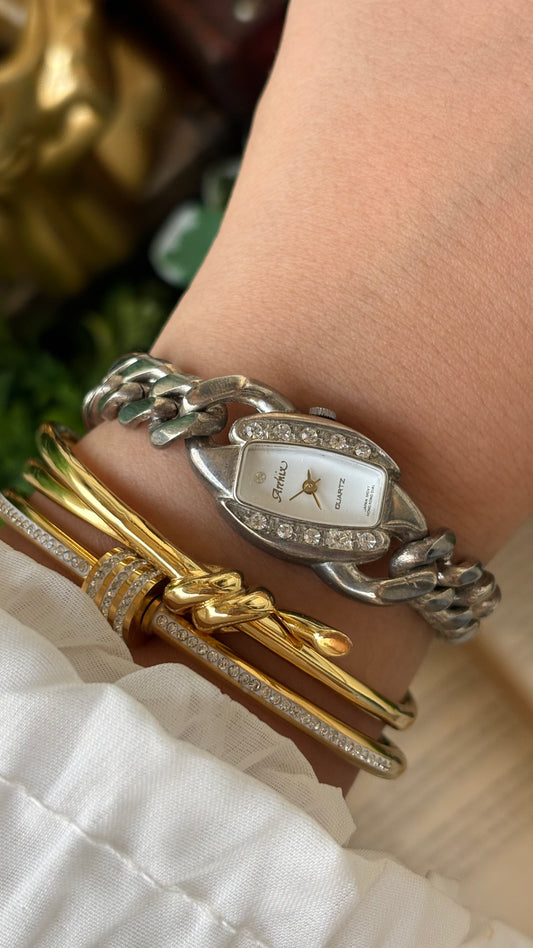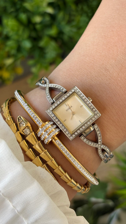 Vintage Dainty Guess Semi-Infinity Bejeweled Bracelet Watch in Silver Tone Quartz #00209