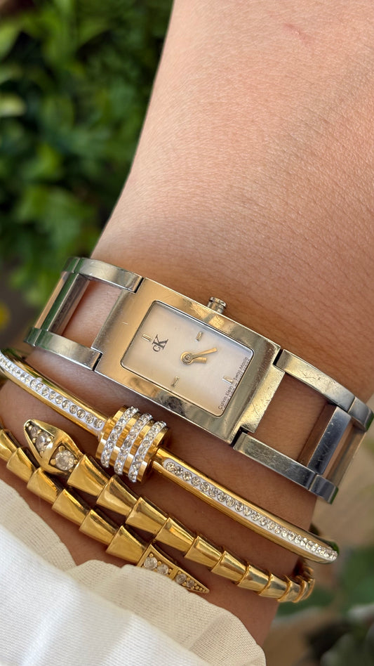 Vintage Calvin Klein Swiss Structured Chain Link Tank Watch in Silver Tone Quartz #00237