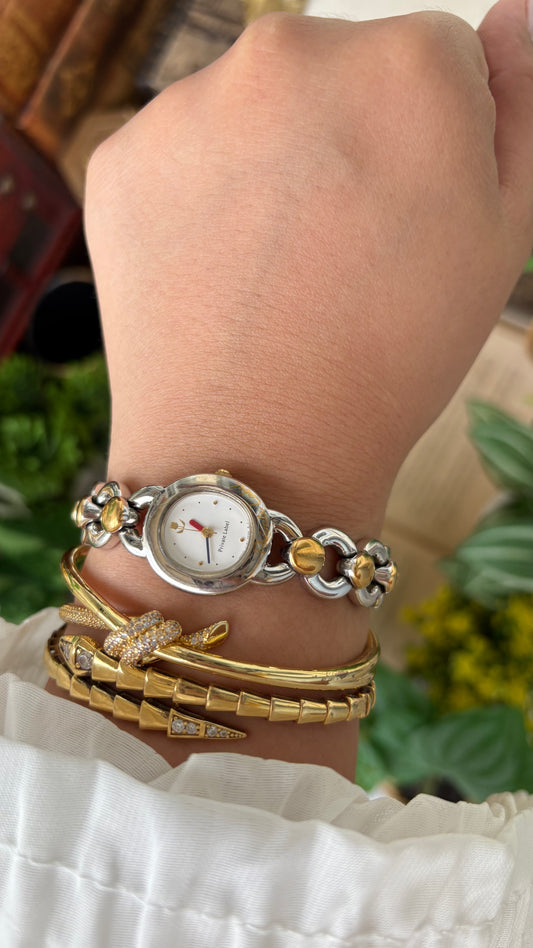 Vintage Persona Dainty Rare Chain Watch in Two-Tone Quartz Lock Style
