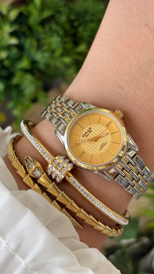 Vintage Omax Classic Watch in Two-tone Yellow Gold Dial Quartz #00208