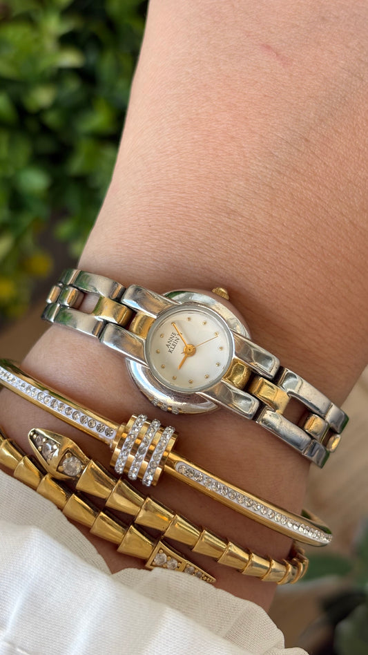 Rare Vintage Dainty Anne Klein Bangle Watch in Two Tone Gold Roman Indices #00206