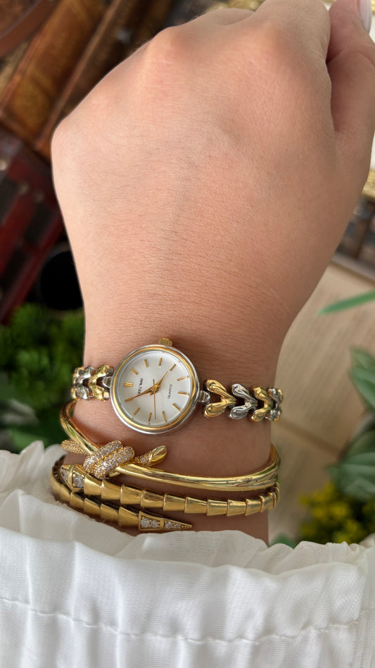 Vintage Jupiter by Orient Seiko Heart Bracelet Watch in Two-Tone Quartz
