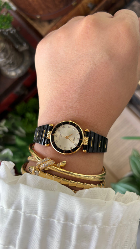 Vintage Concret Paris Rhinestone Indices Watch in Two-Tone Quartz