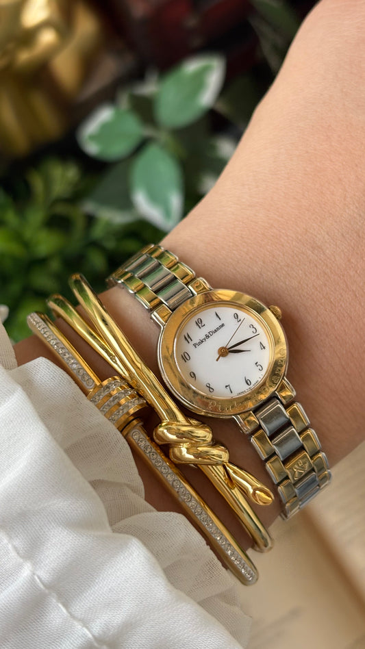 Vintage Pinky & Dianne Elegant Minimalist Watch in Two-Tone Japan Quartz Marie Claire Inspired