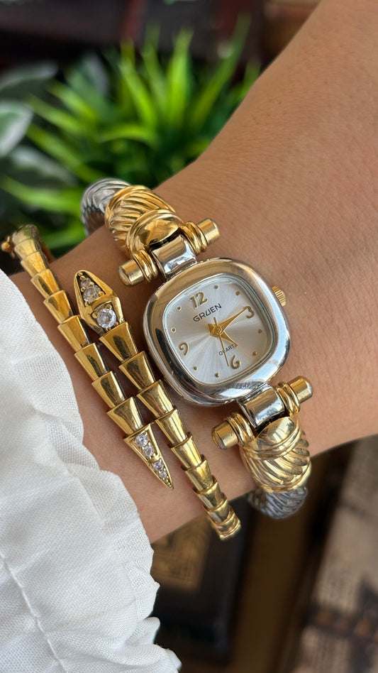 Vintage Gruen Bangle Watch in Two-Tone Versace Inspired