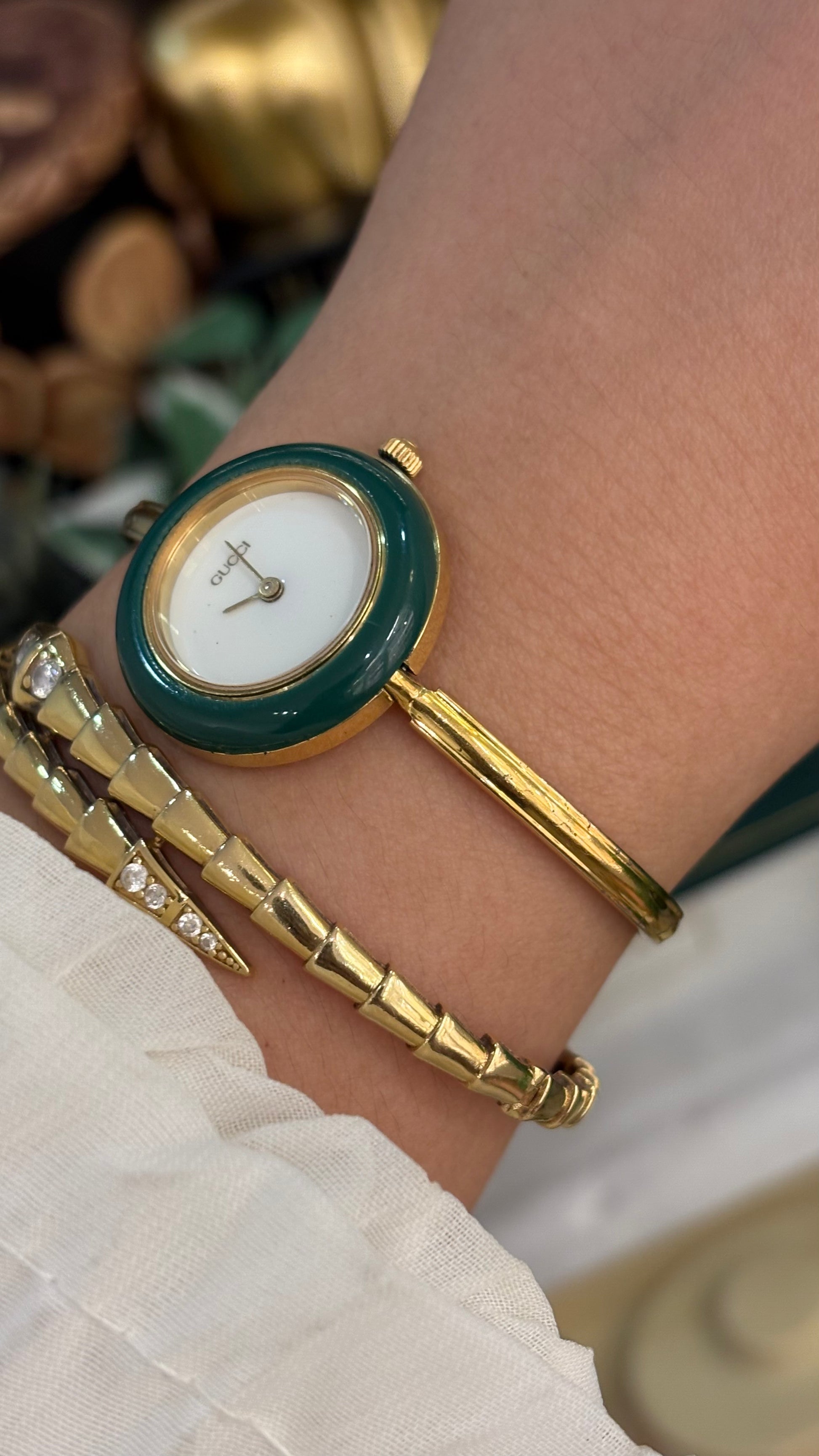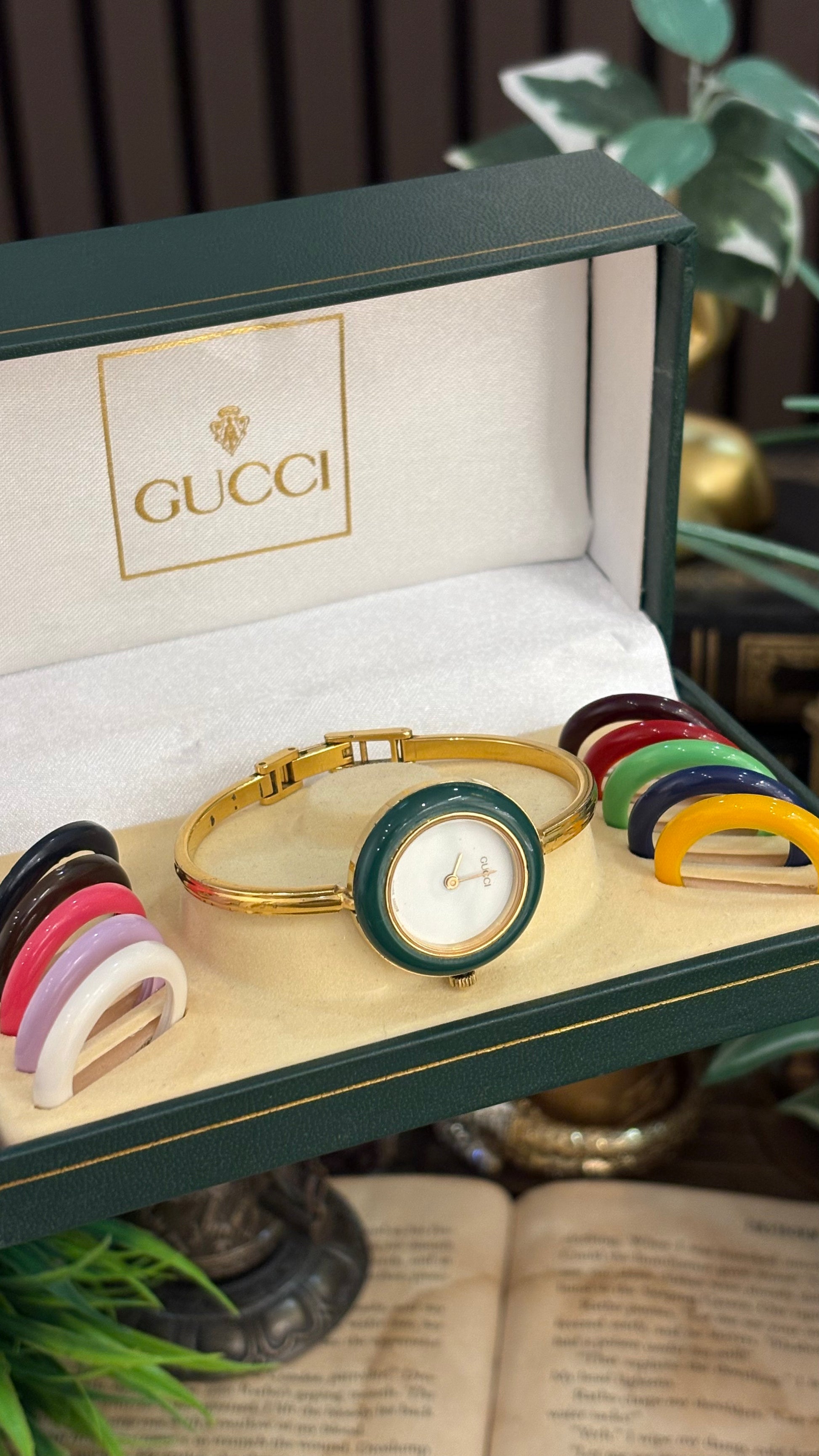 Extremely Rare Gucci Interchangeable Bezel Bangle Watch Set in Gold Tone Quartz Swiss