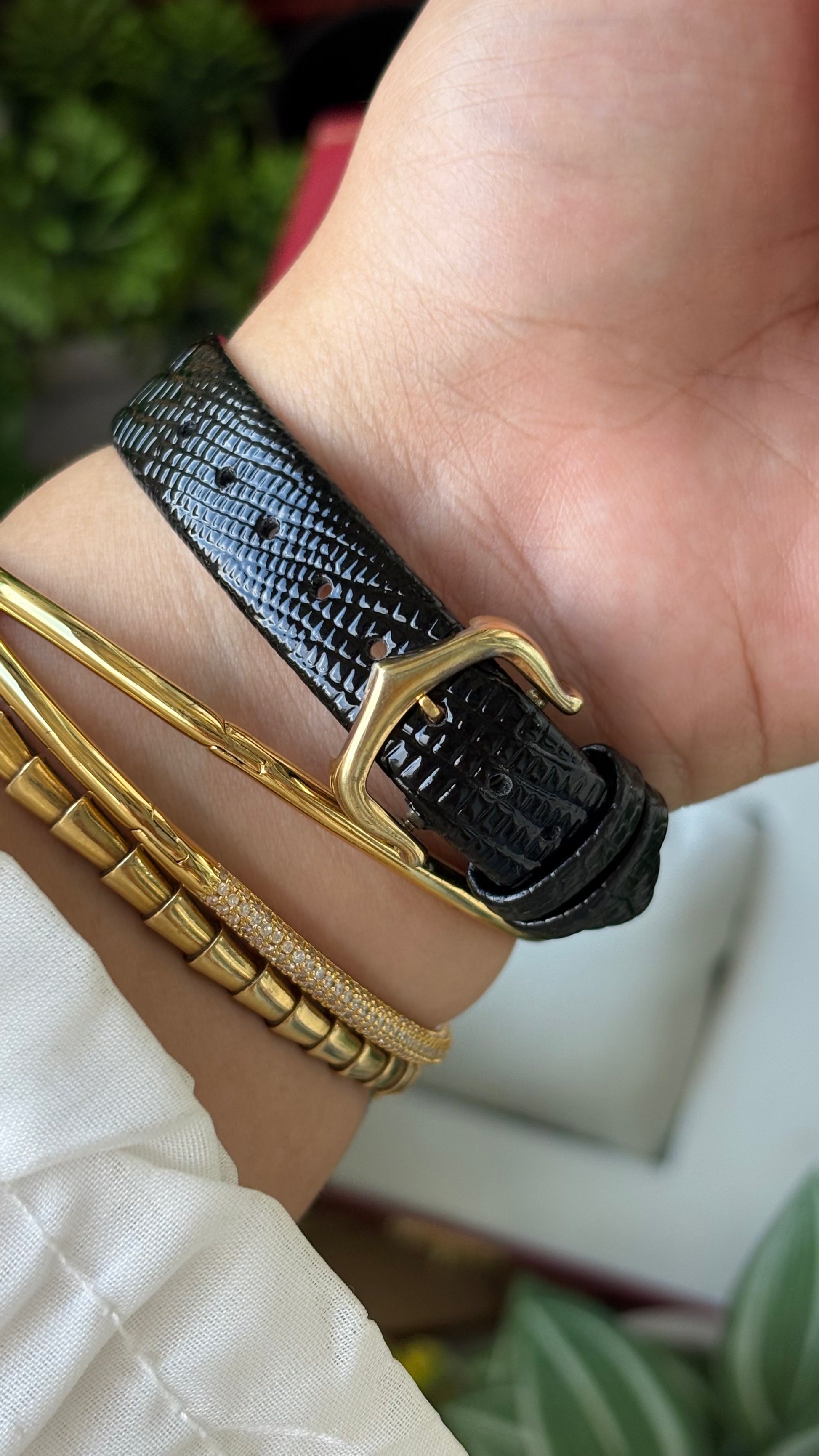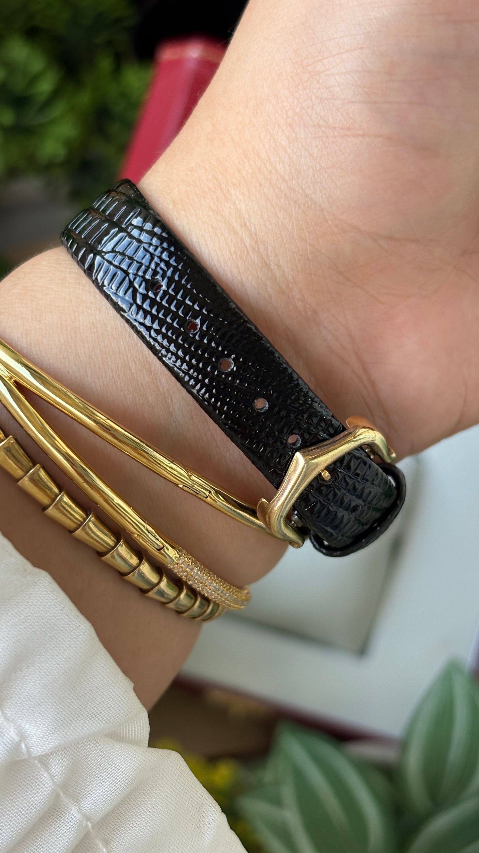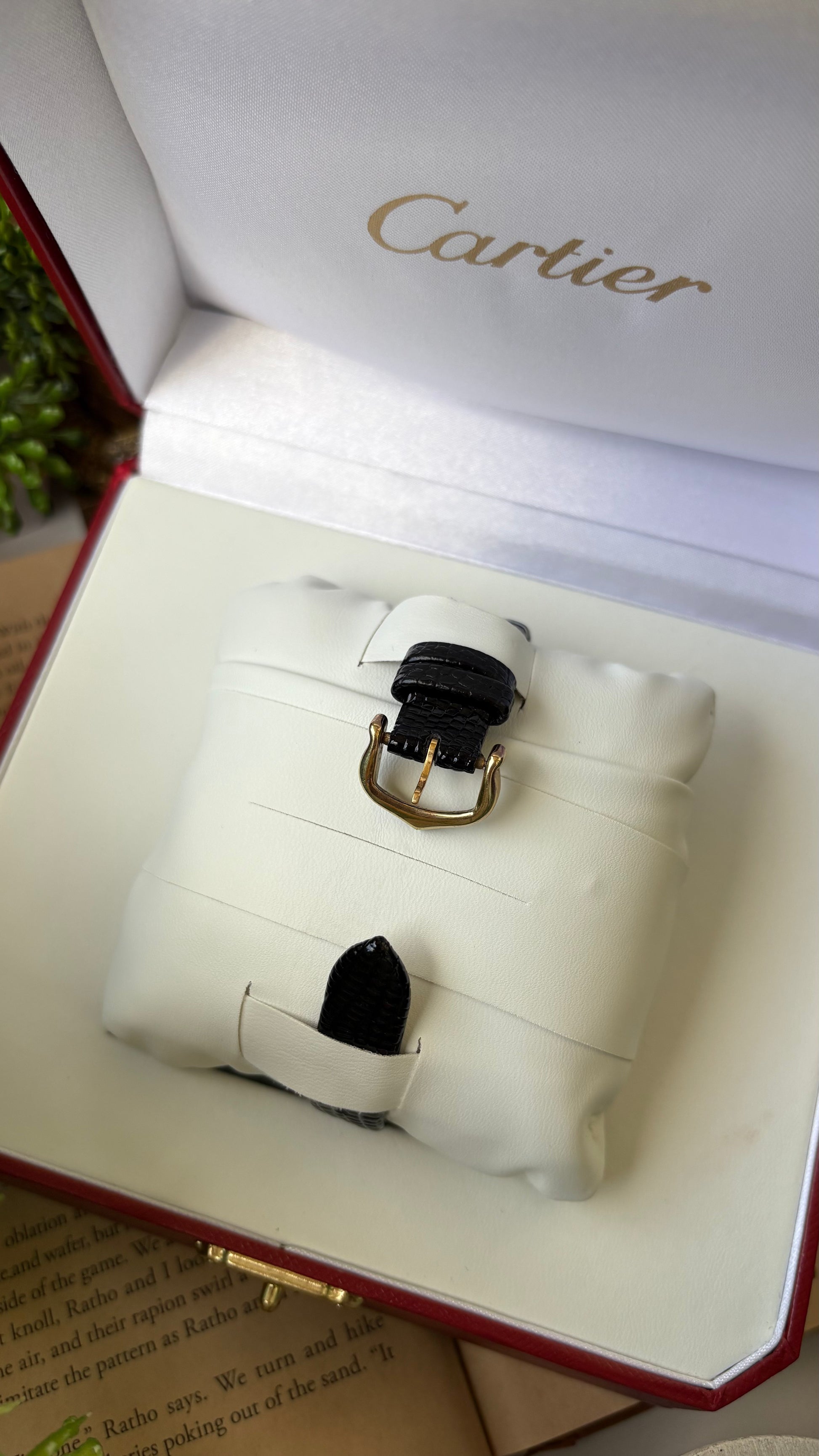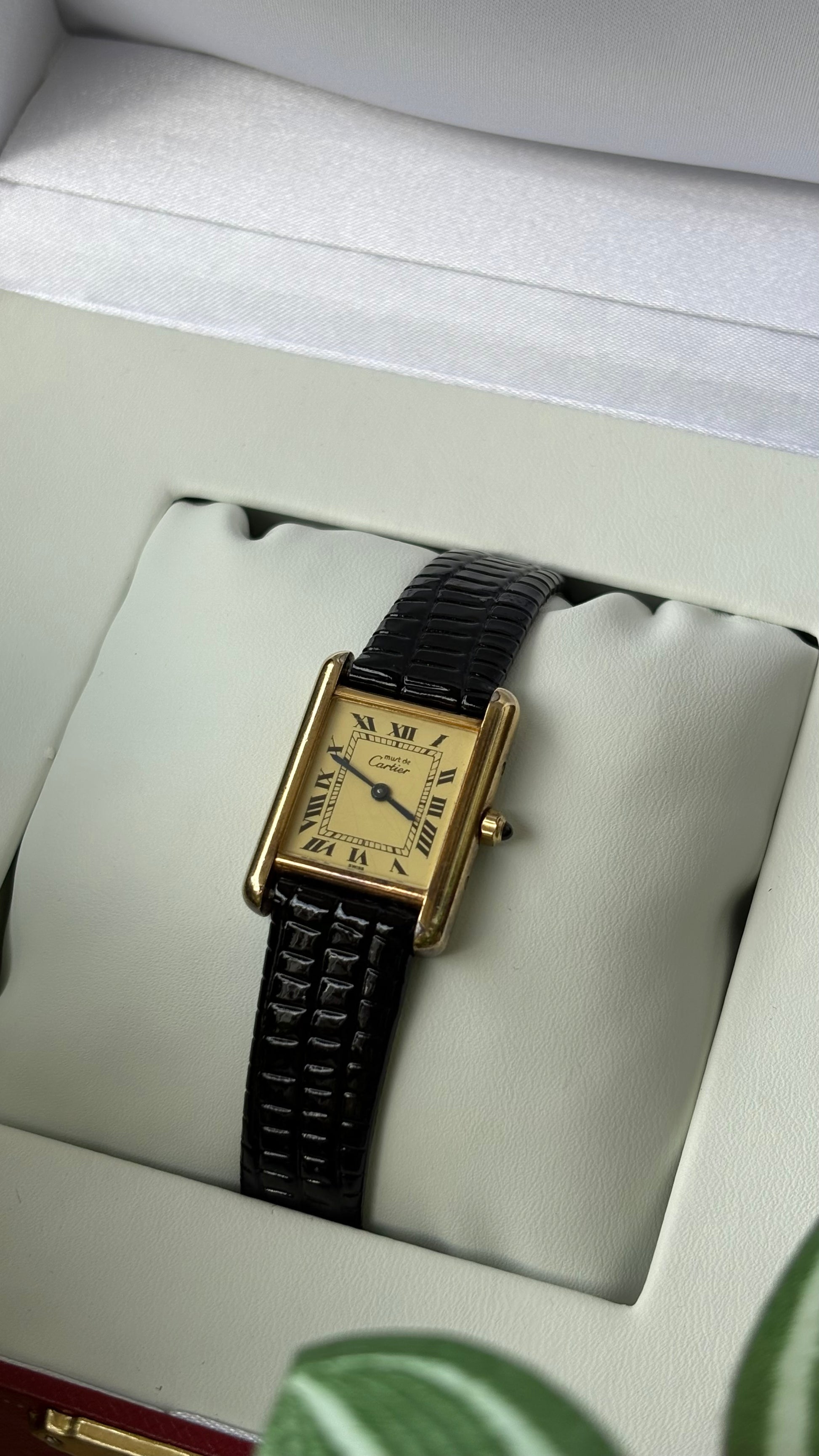 Extremely Rare Vintage 1990s Cartier Must De Tank Vermeil in Black Leather Gold Tone Lemon Cream Dial