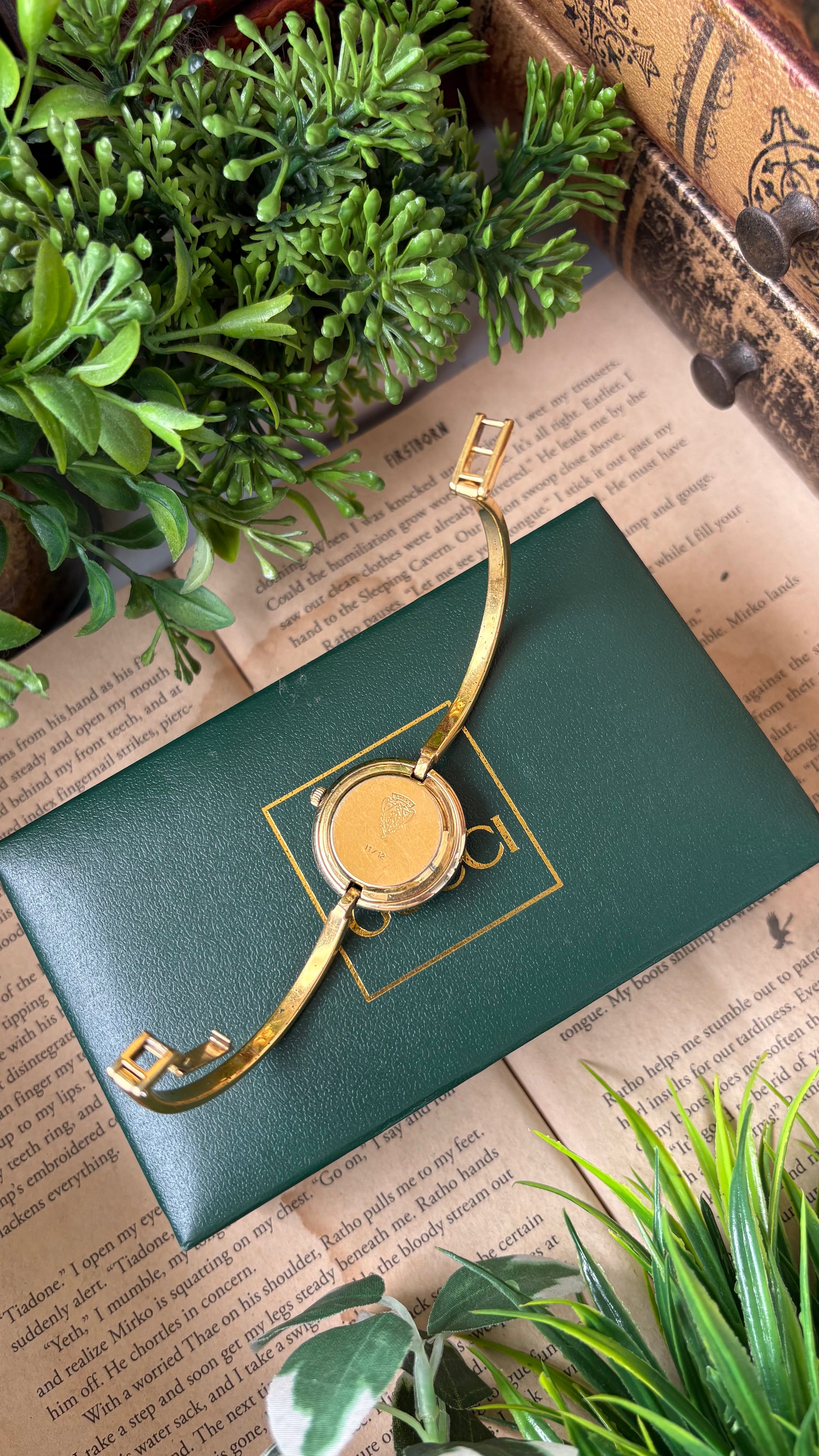 Extremely Rare Vintage Gucci 1100L Interchangeable Bezel Set Bangle Watch in Gold Tone
