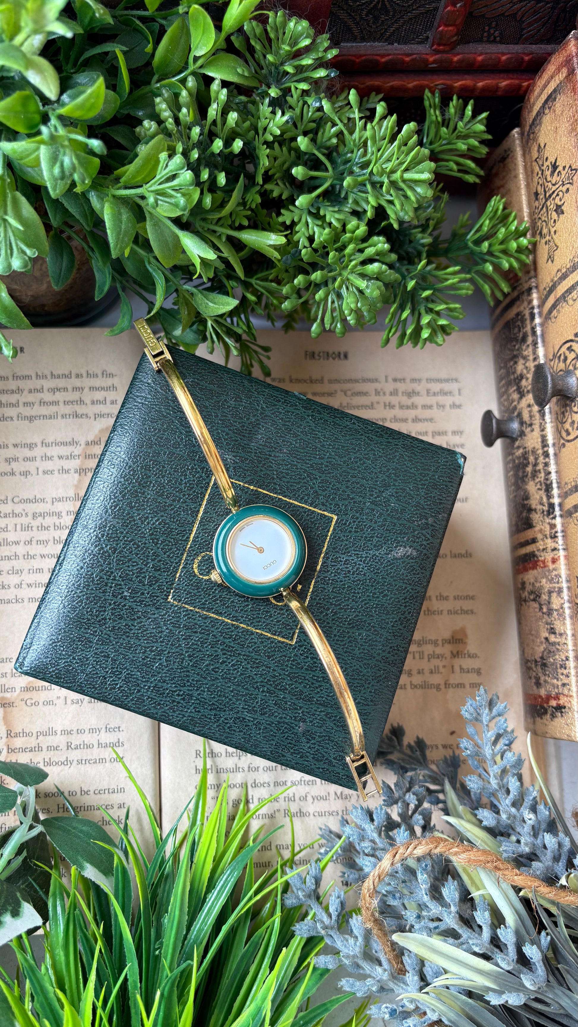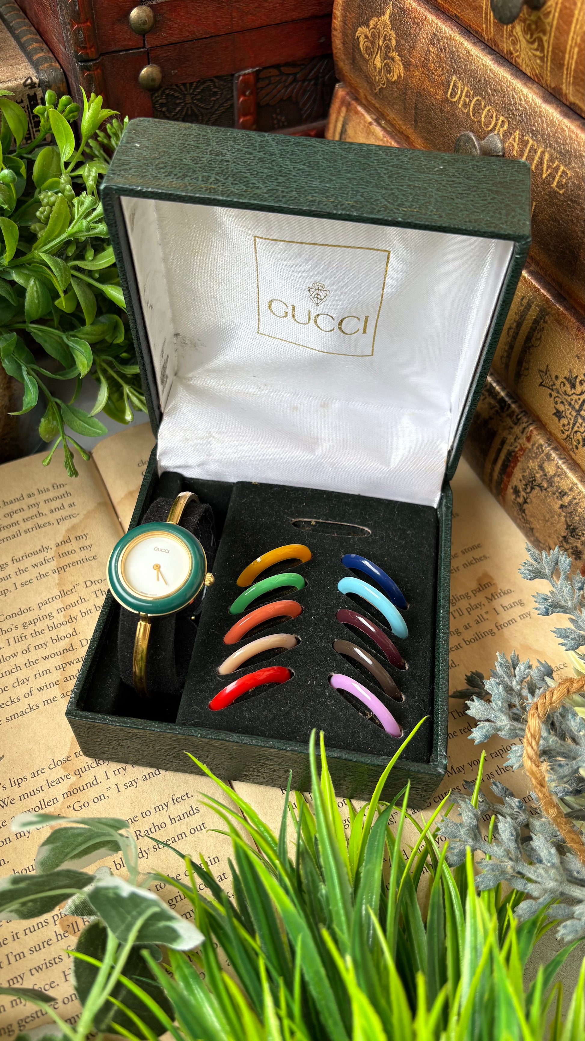 Extremely Rare Vintage Gucci 1100L Interchangeable Bezel Set Bangle Watch in Gold Tone