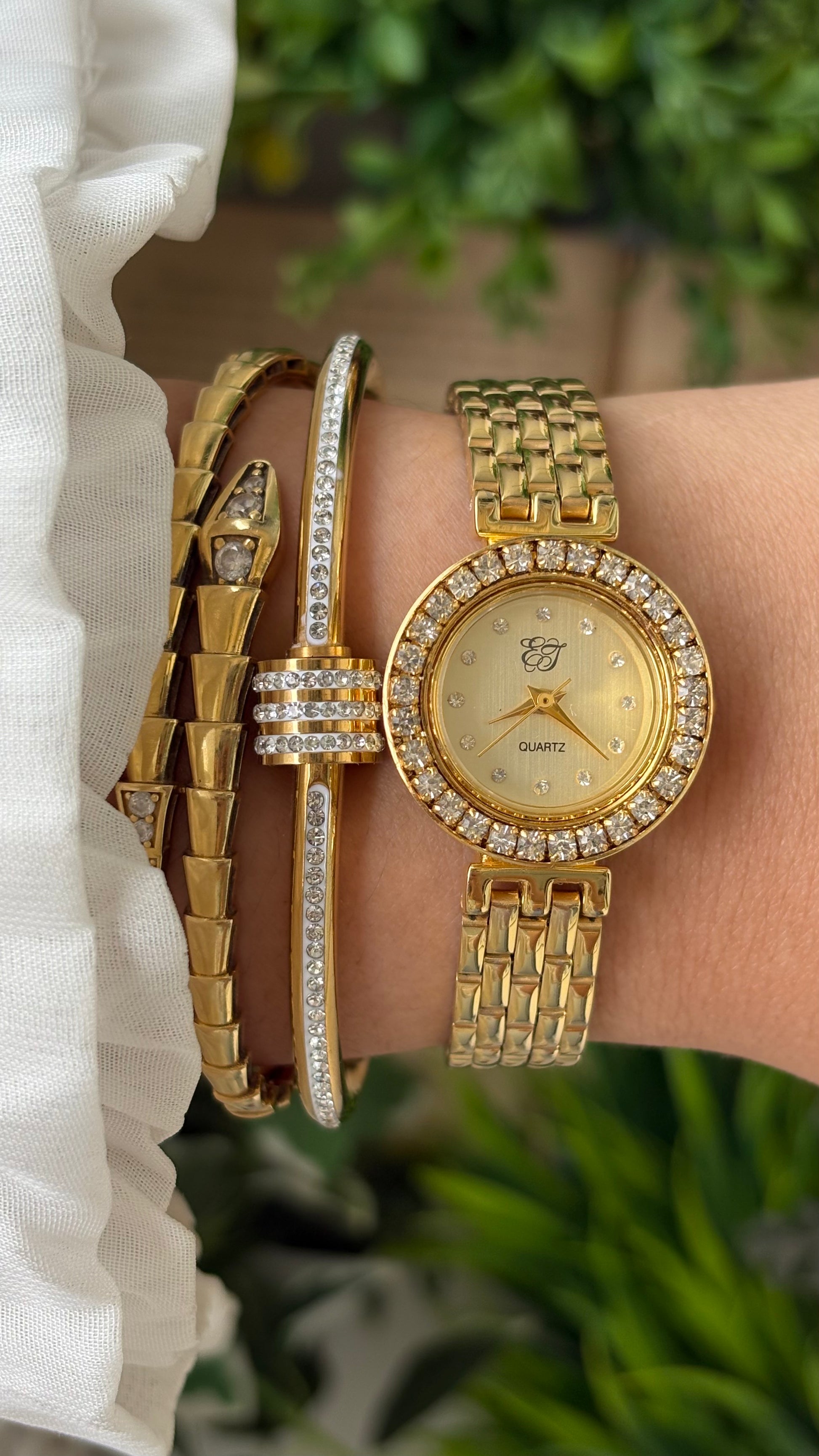 Rare Vintage Elizabeth Taylor Interchangeable Rhinestone Bezel (Watch only) in Gold Tone Quartz #00219
