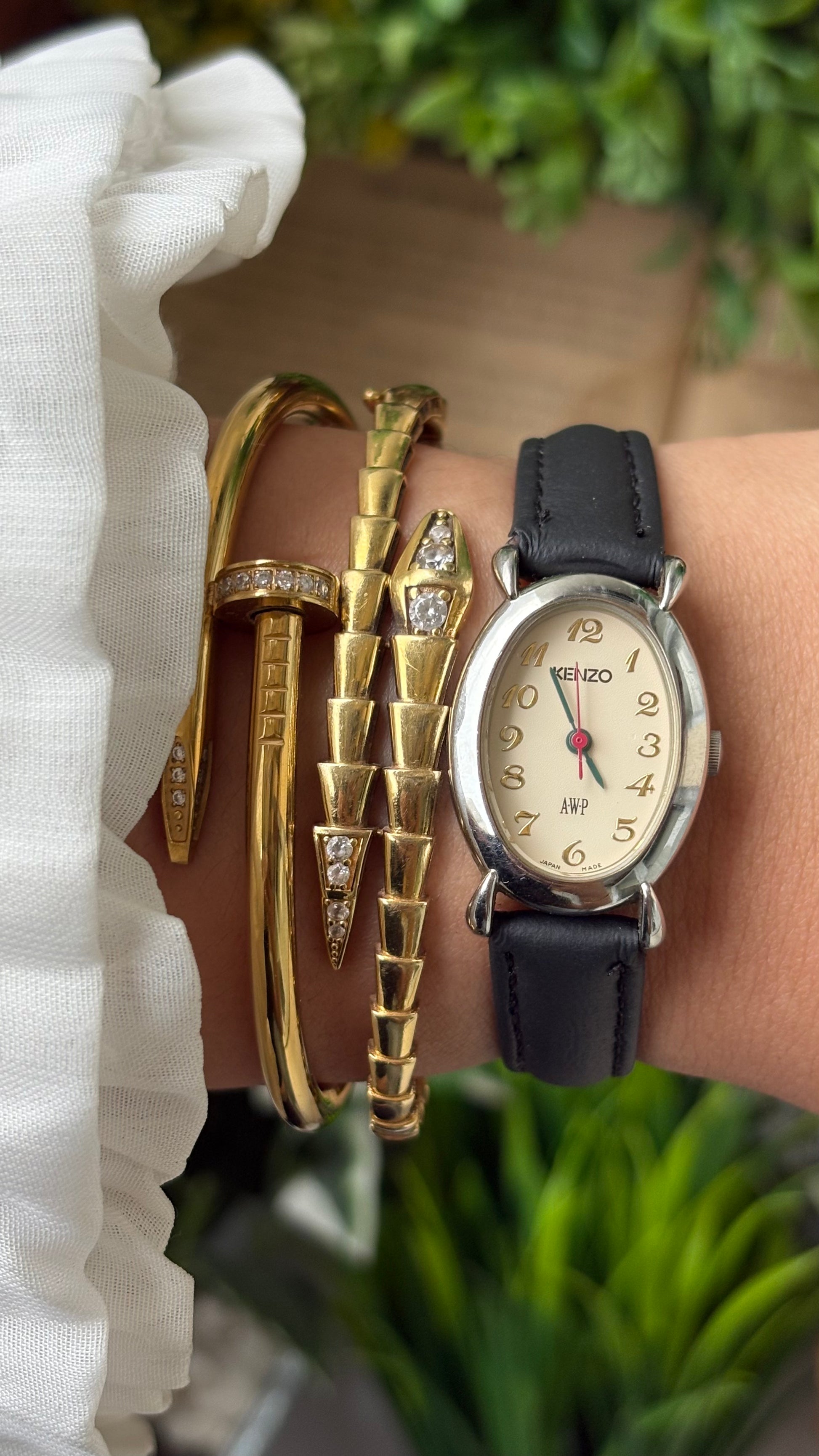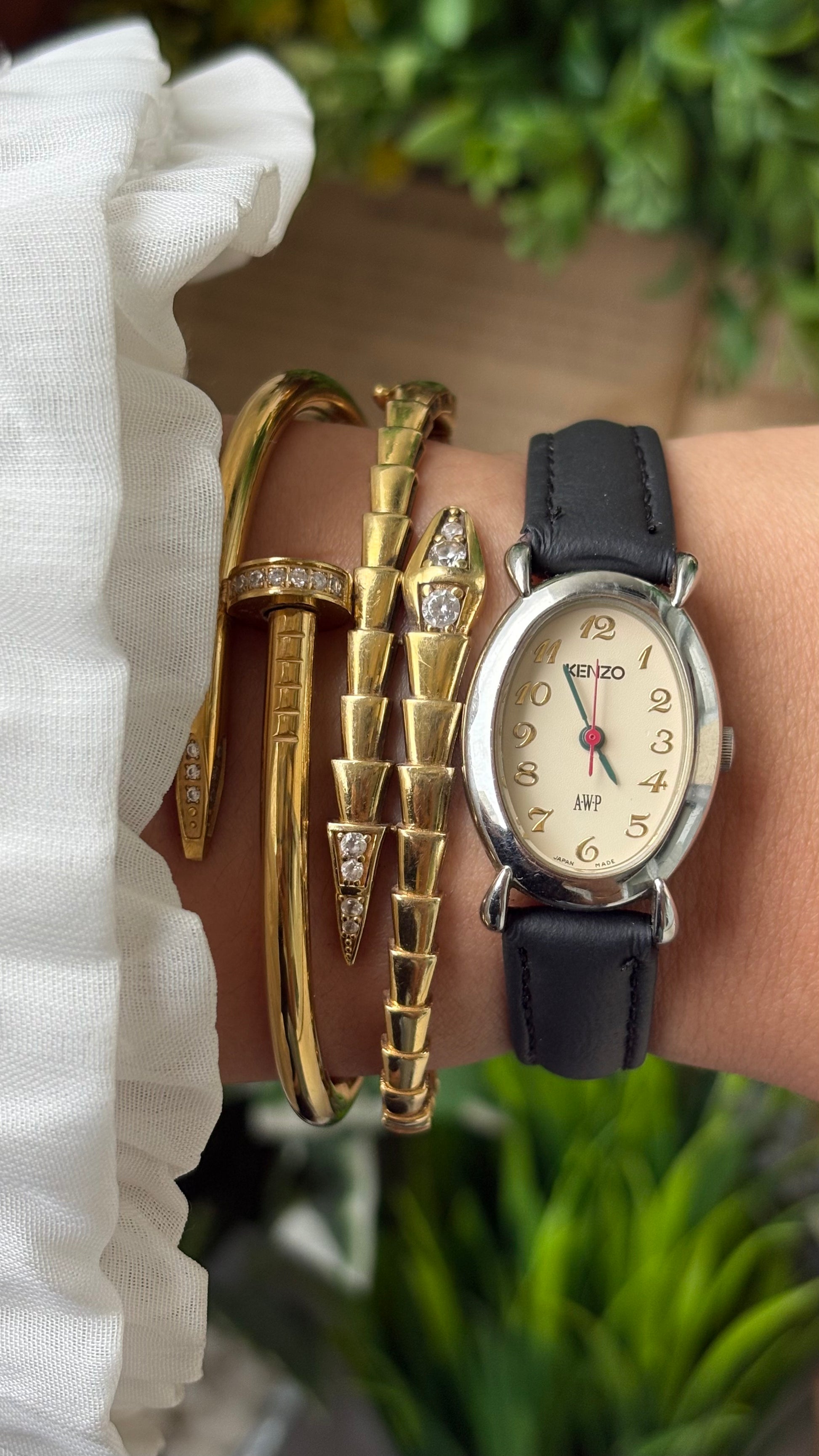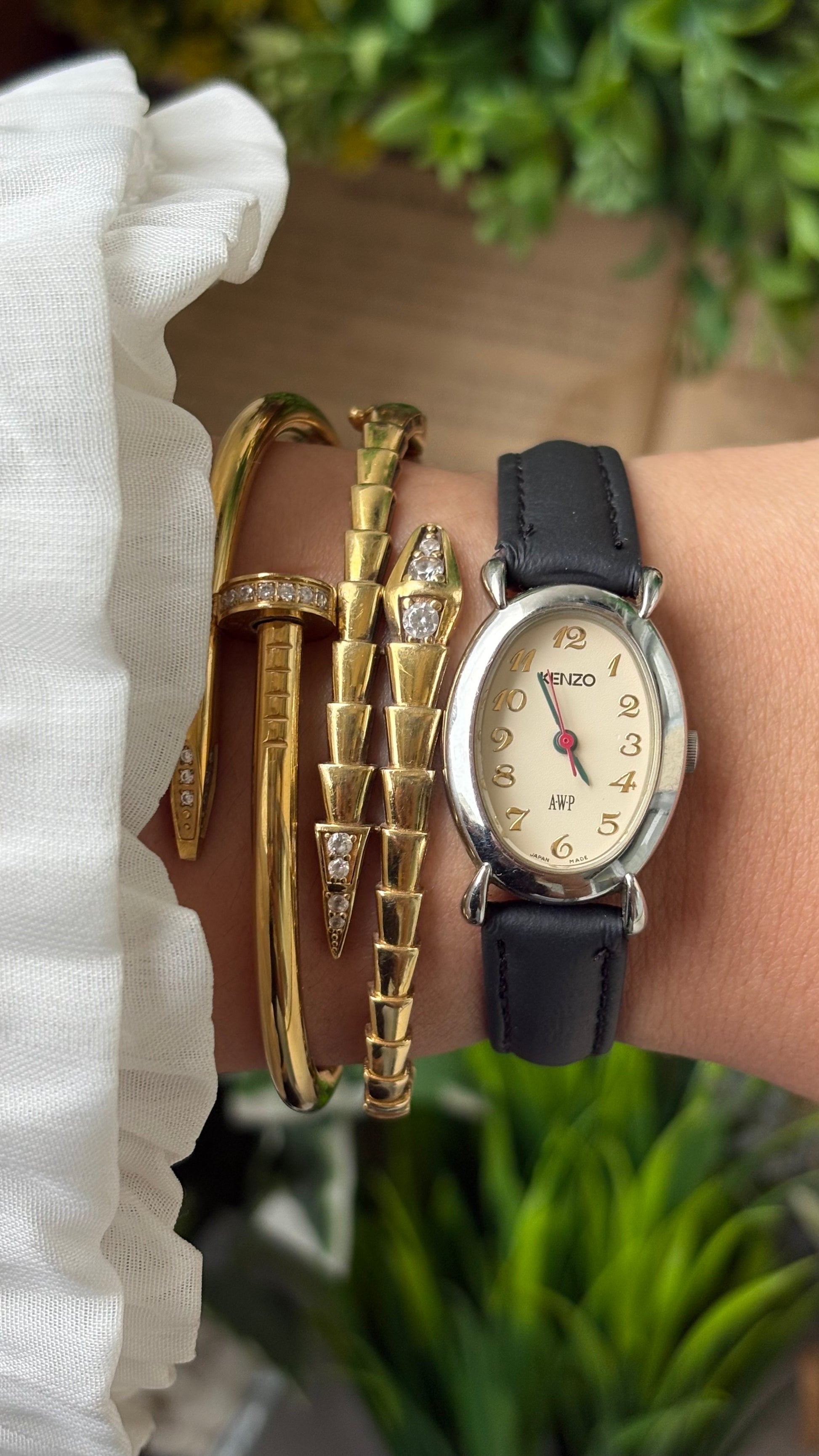 Rare Dainty Vintage Kenzo AWP Limited Edition Oval Dial Watch in Silver Tone Black Leather Quartz #00940
