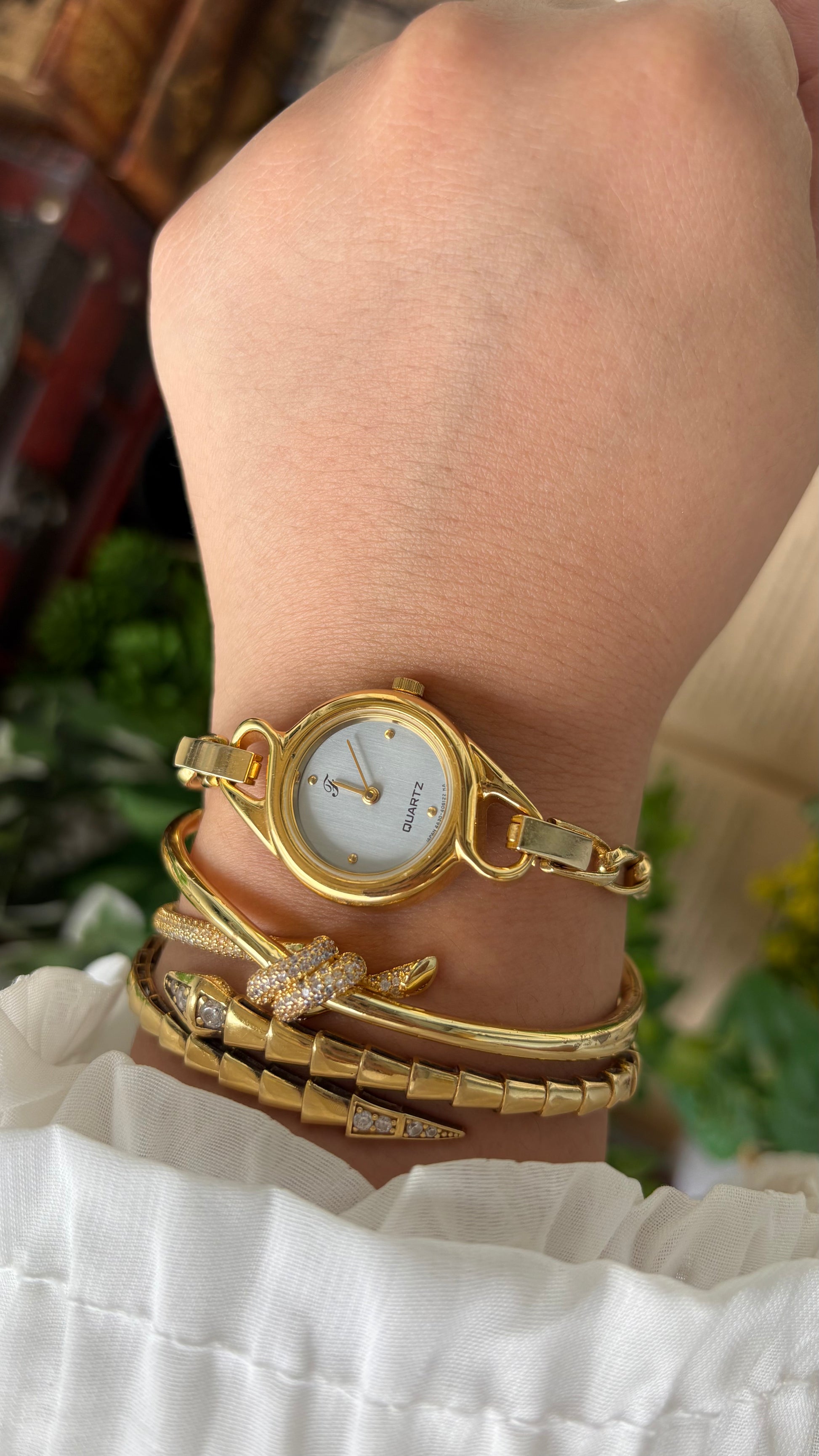 Rare Vintage Oppen Chain Watch in Gold Tone Unique Dial Quartz