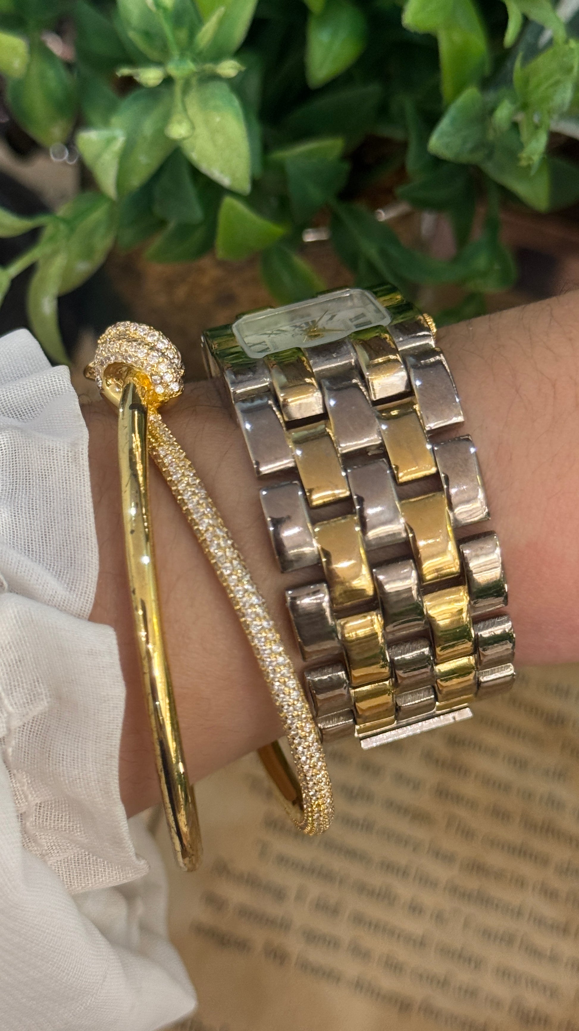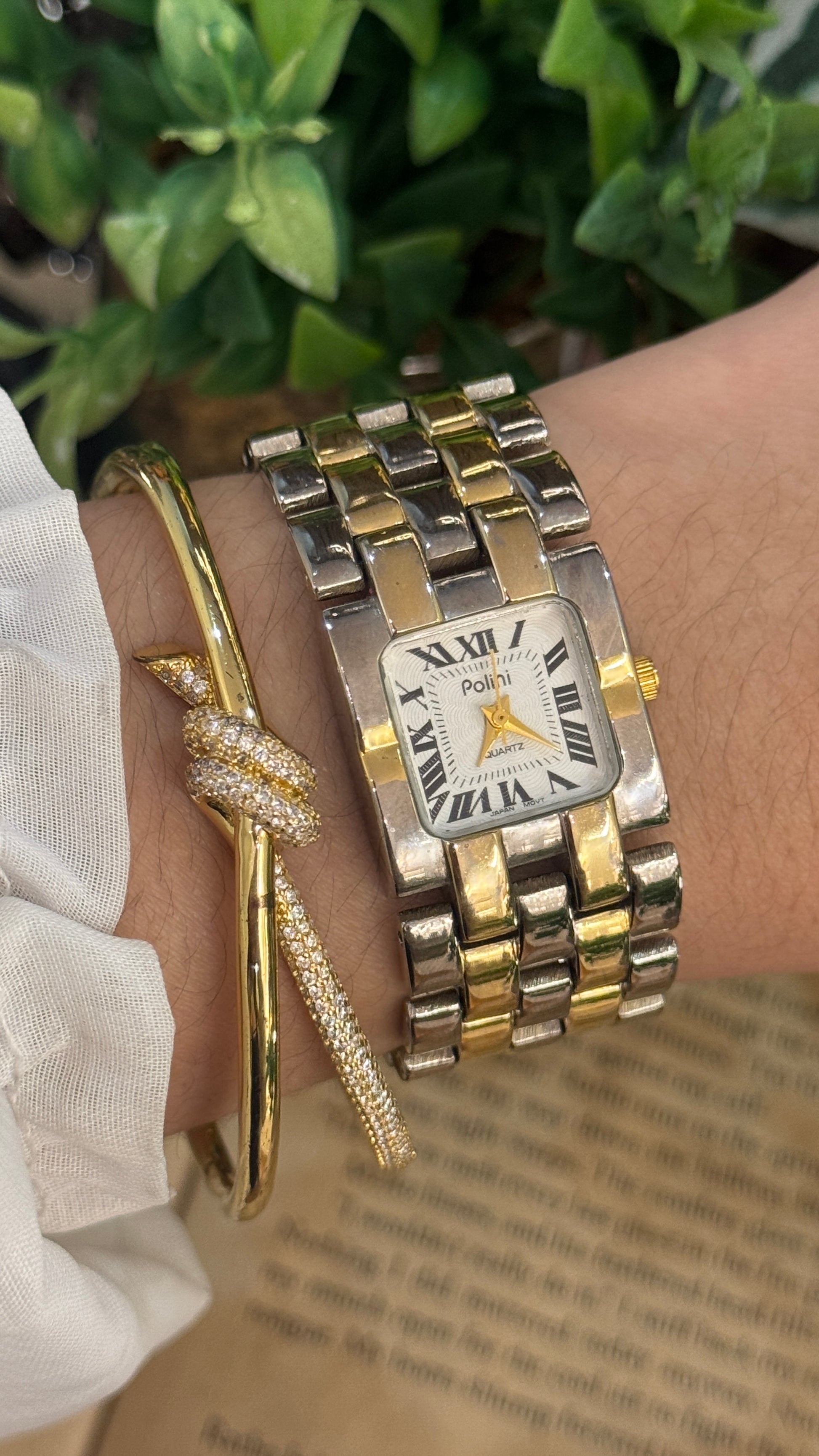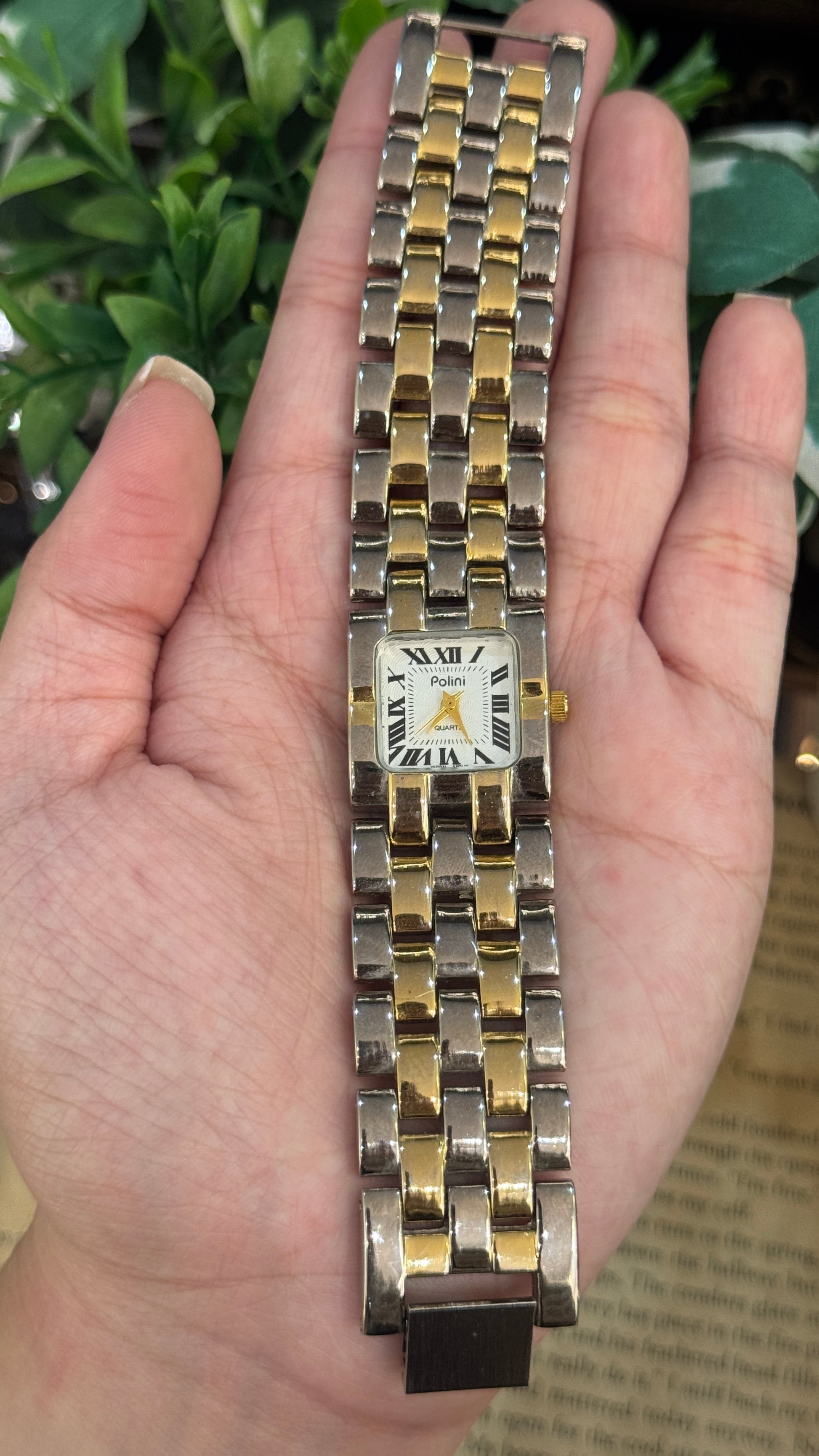 Rare Vintage Polini Roman Dial Bracelet Tank Watch in Two-Tone Quartz