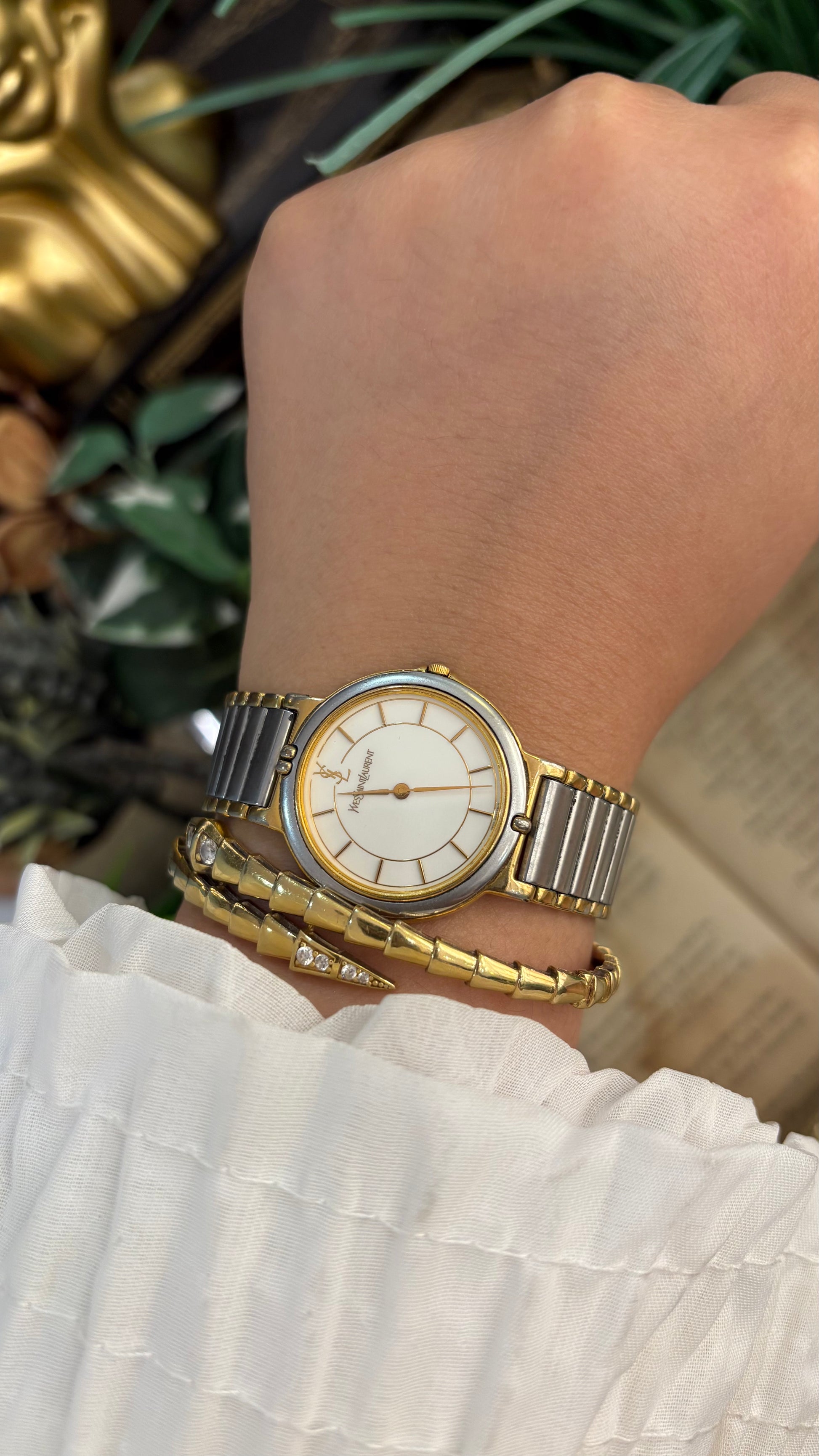 Rare Vintage YSL Swiss Classic Minimalist Watch in Two-Tone Quartz
