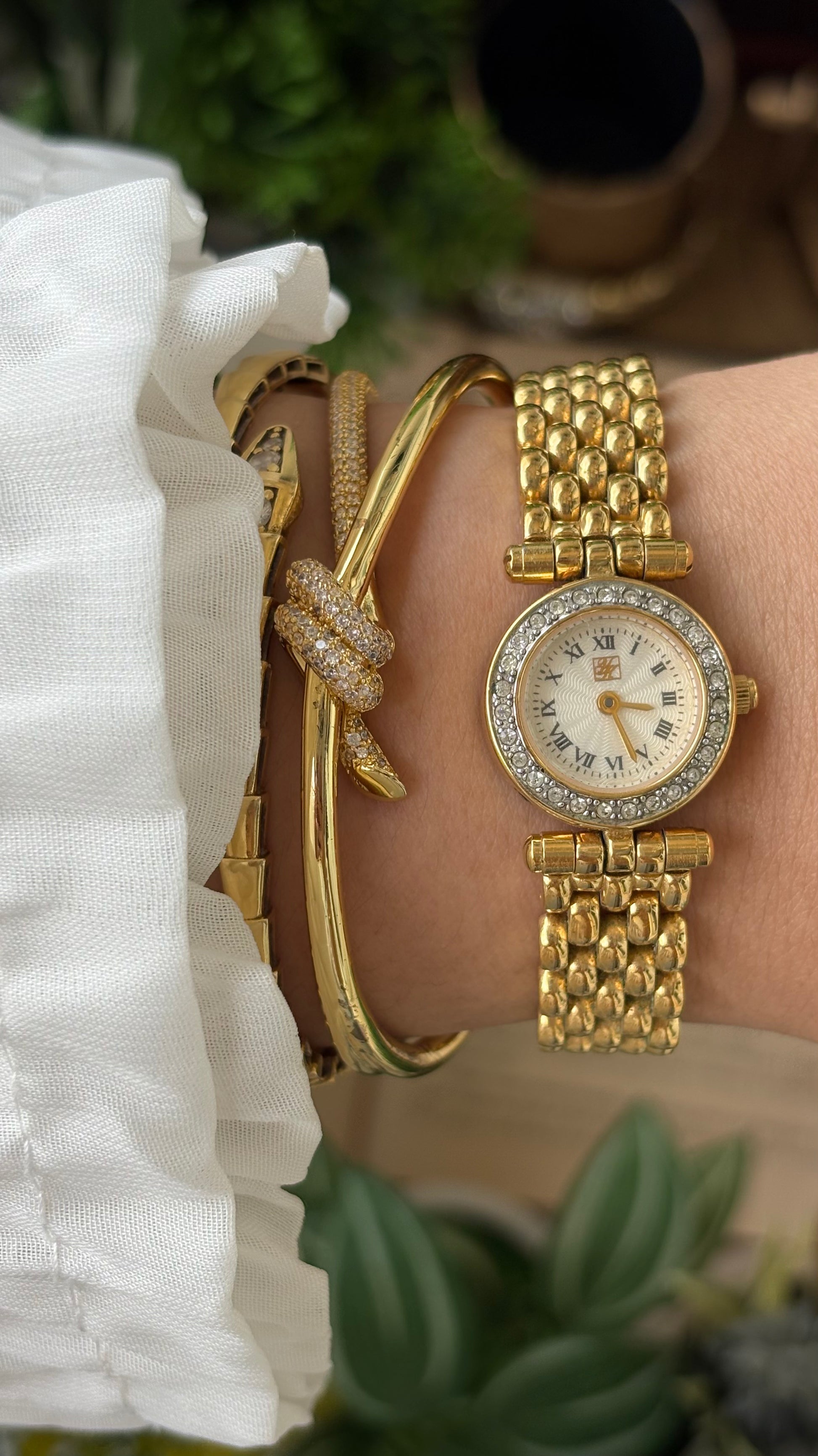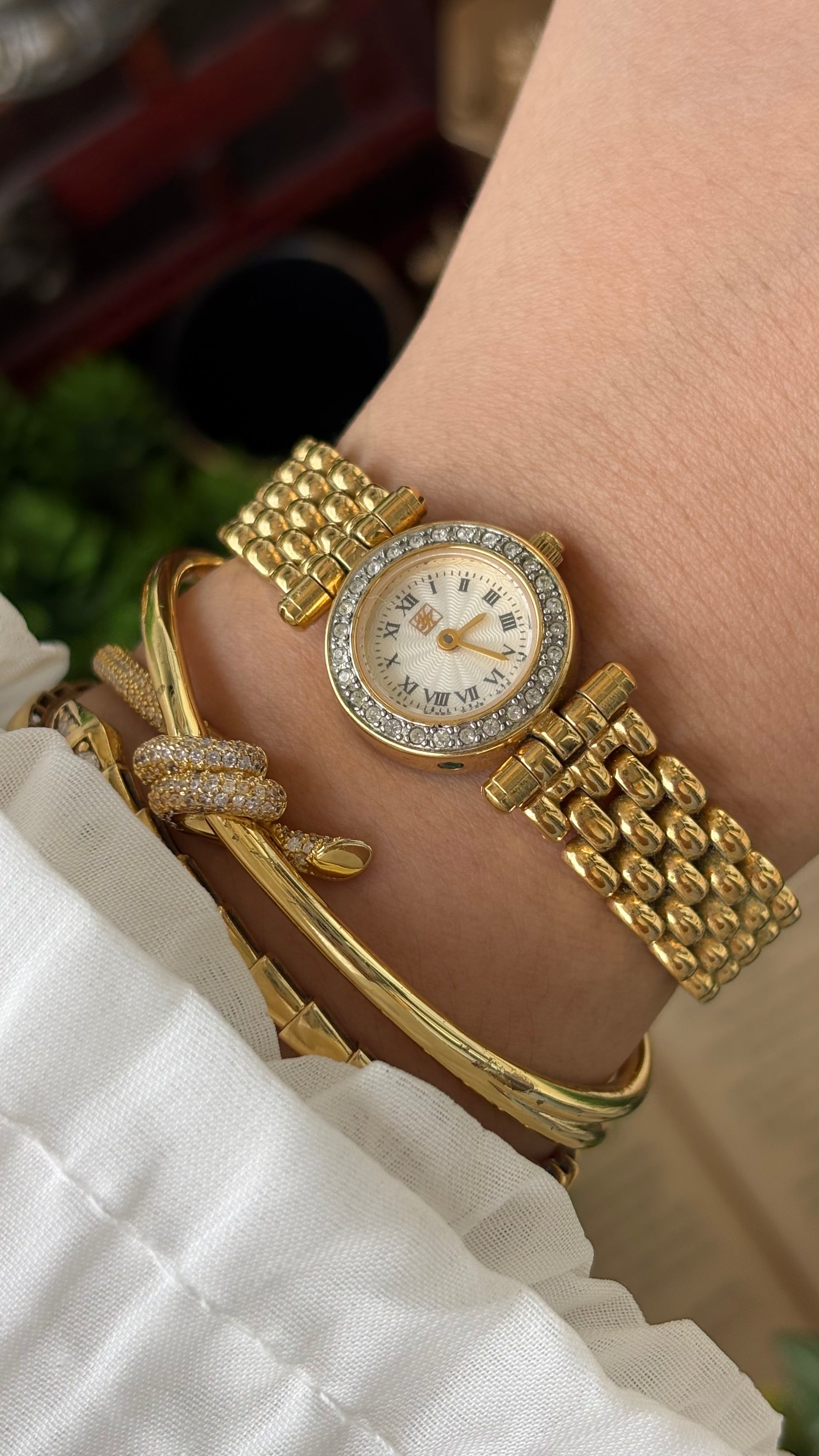 Rare Vintage Yumiko Kimijima Rhinestone Bezel Watch in Gold Tone Quartz