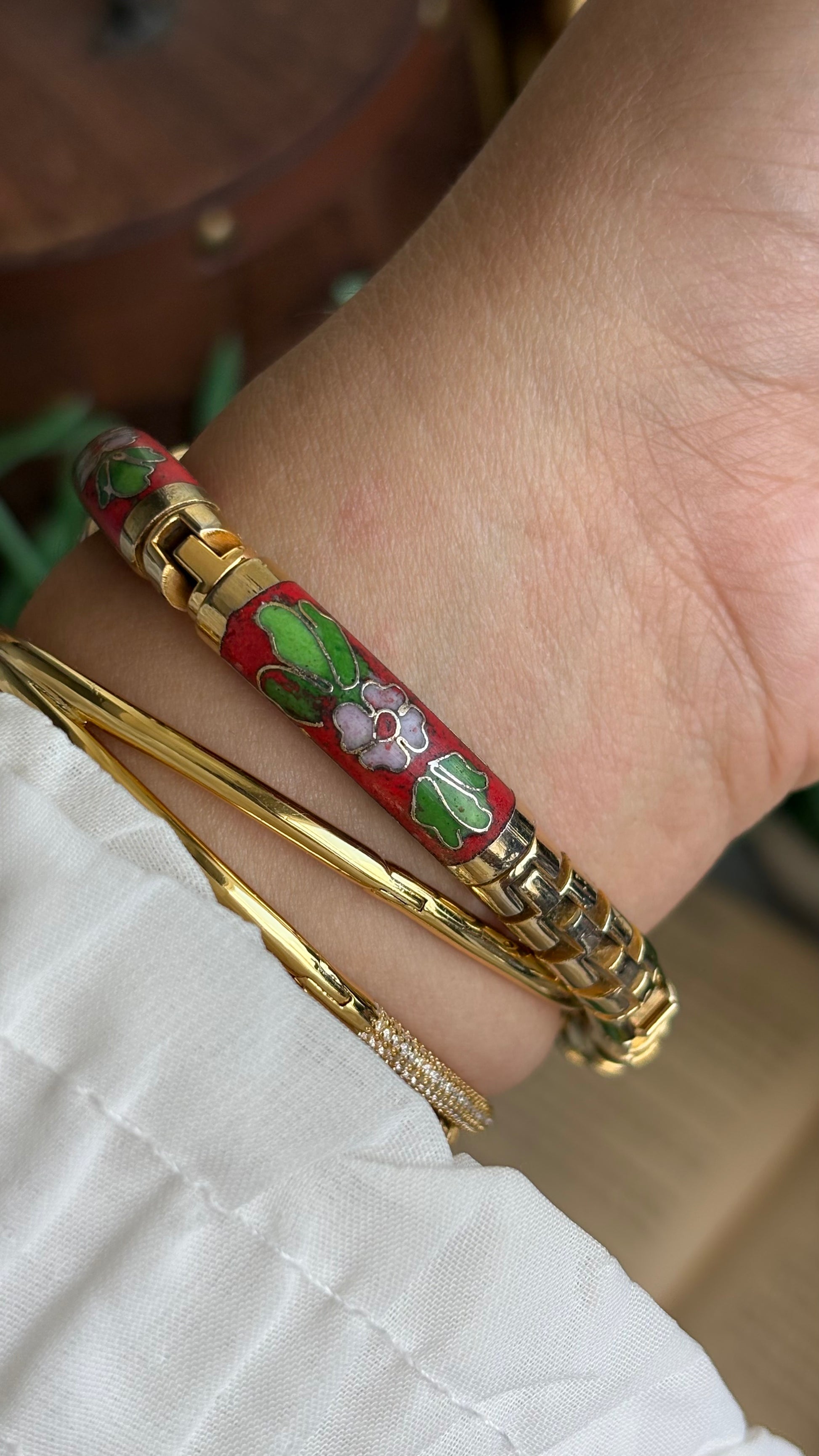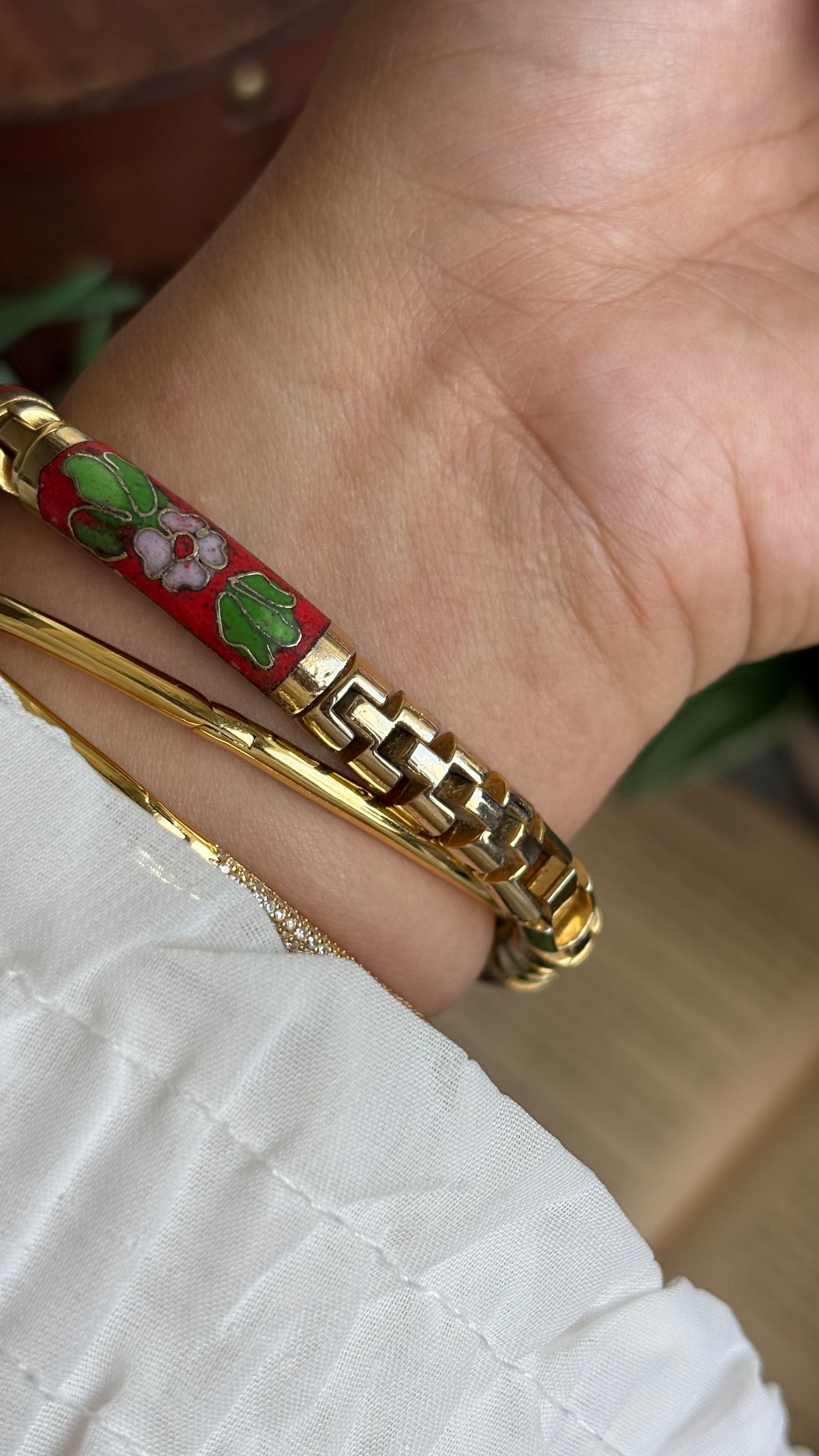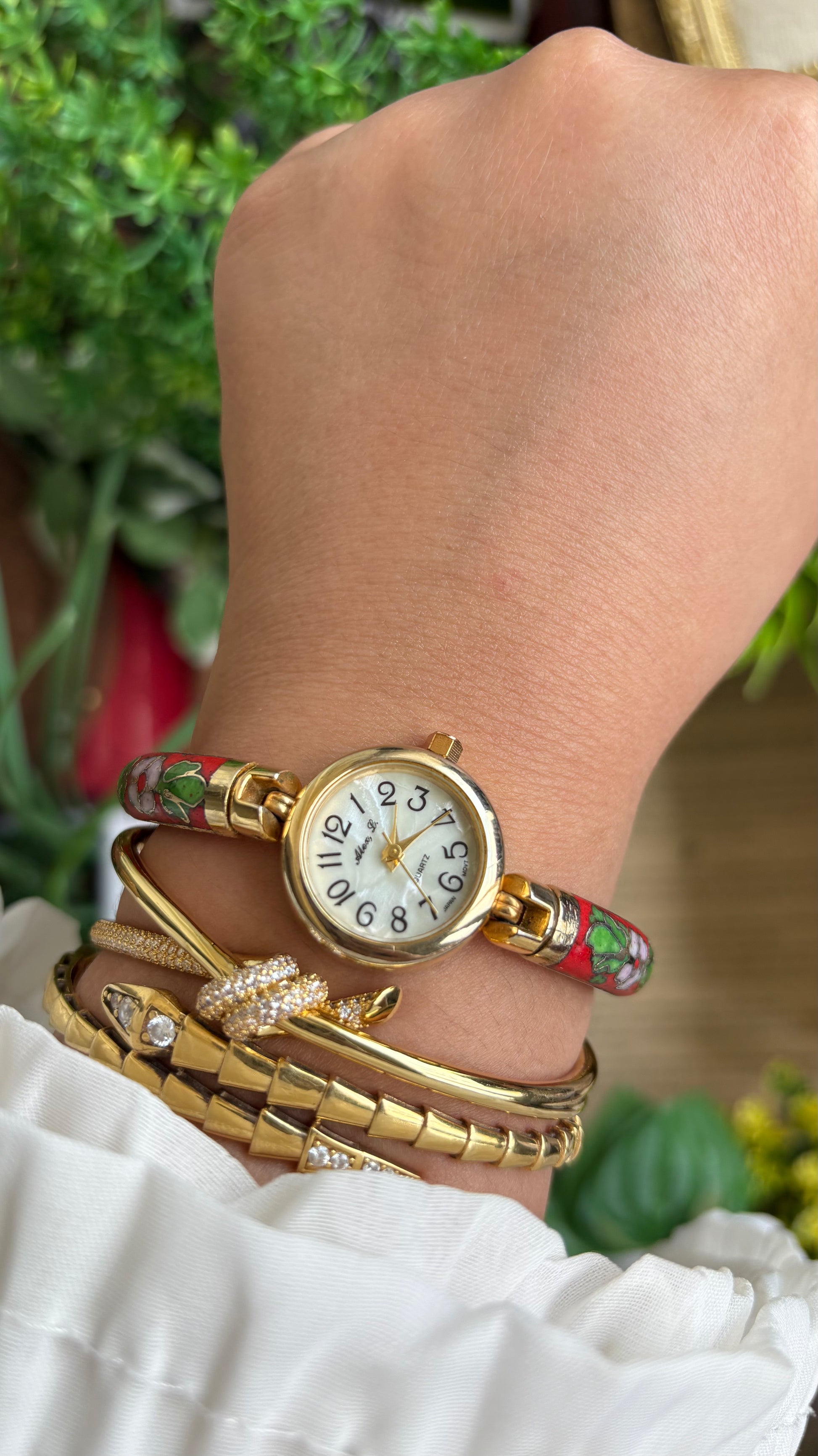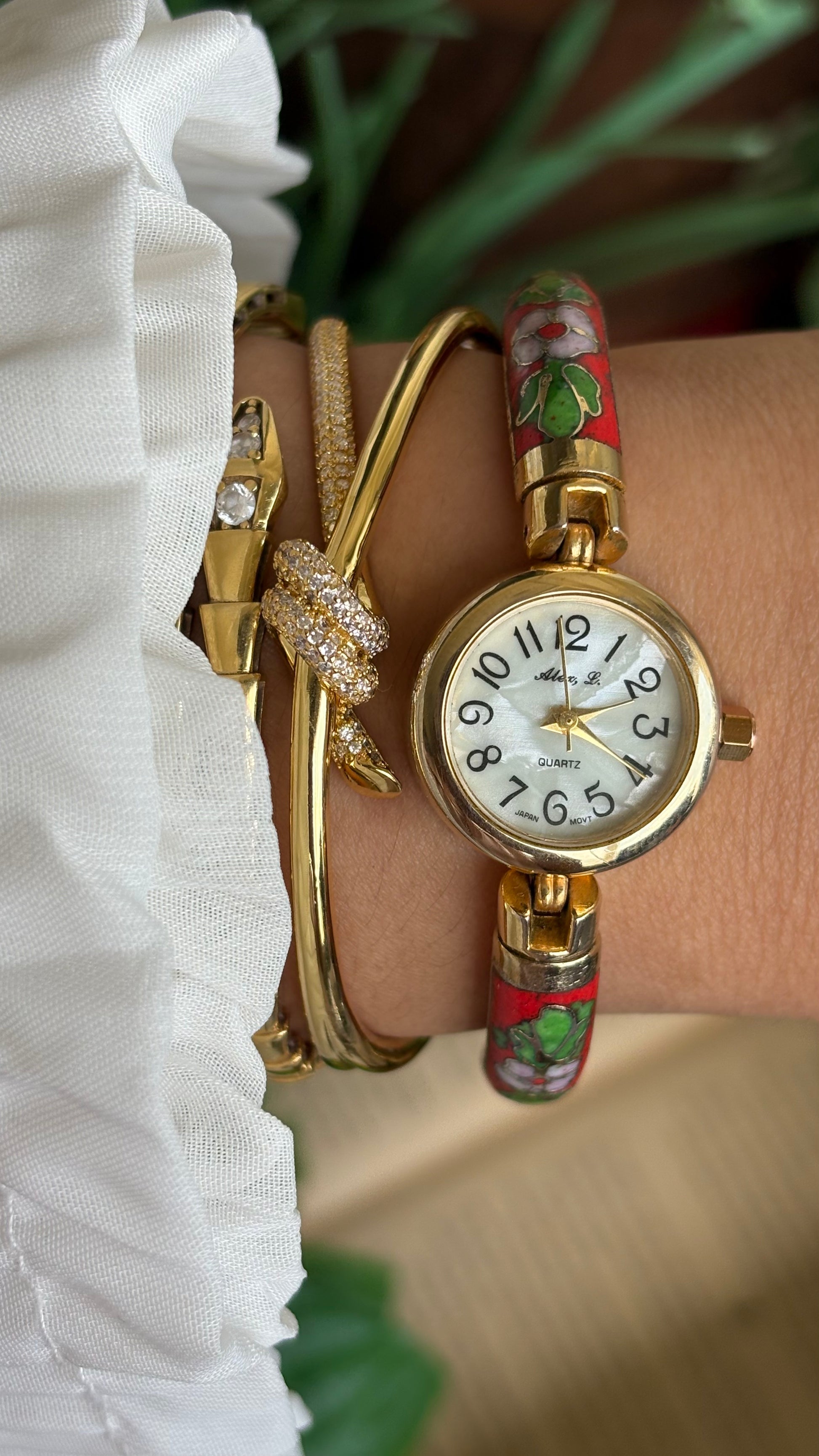 Extremely Rare Vintage L. Alex Cloisonné Watch in Gold Tone Pearl Dial Ancient Deco