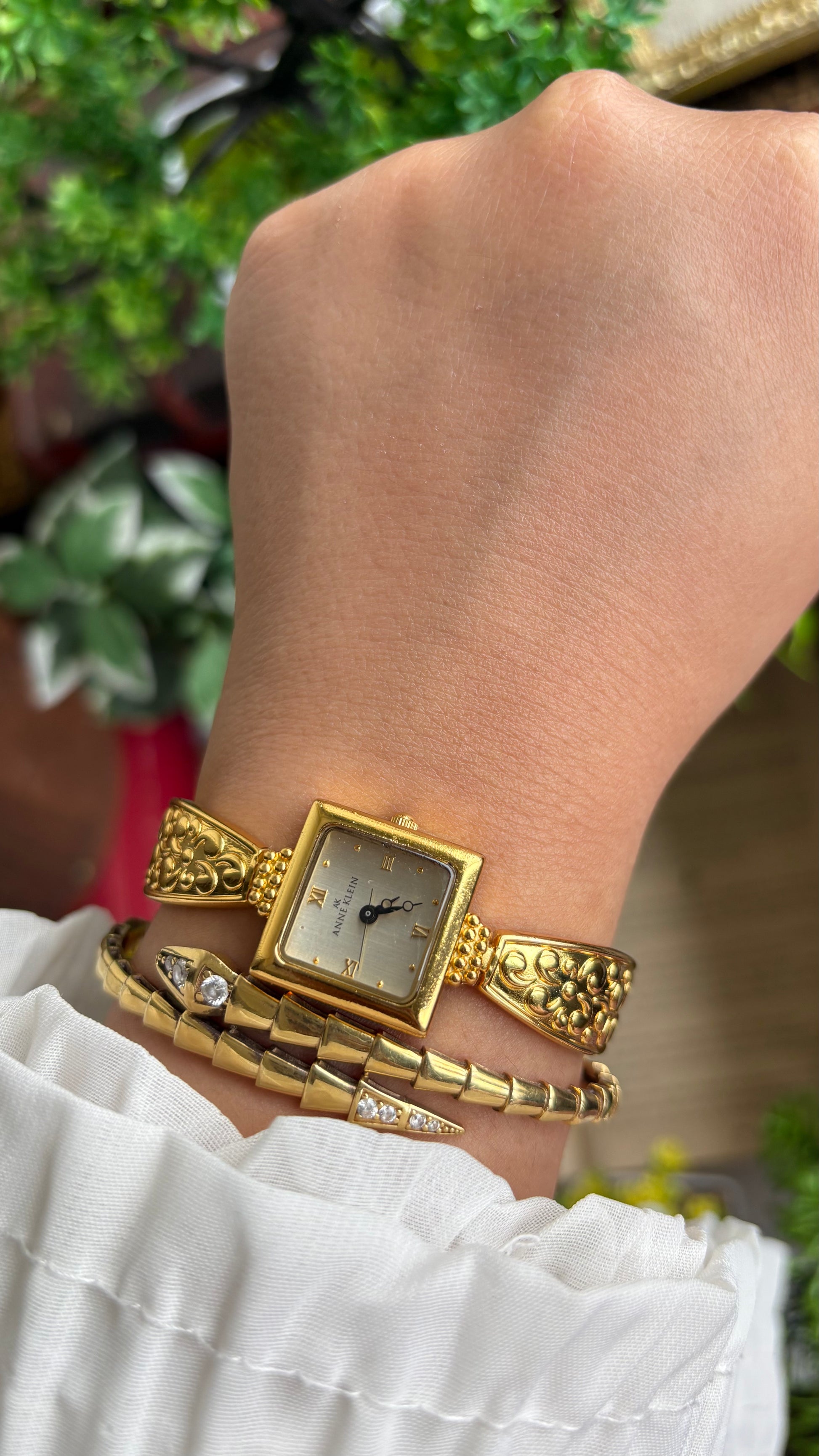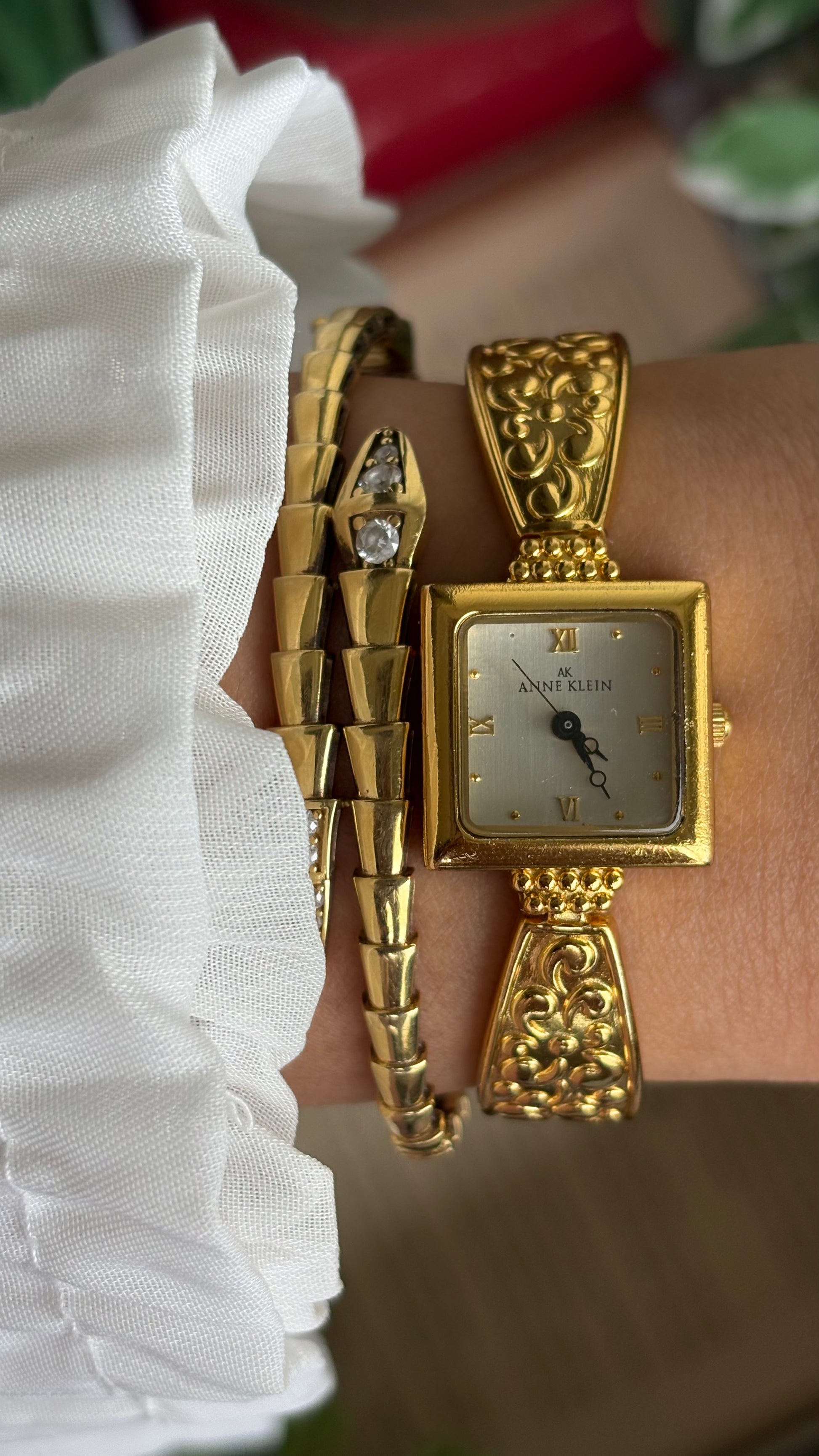 Extremely Rare Vintage Anne Klein Art Deco Watch in Gold Tone