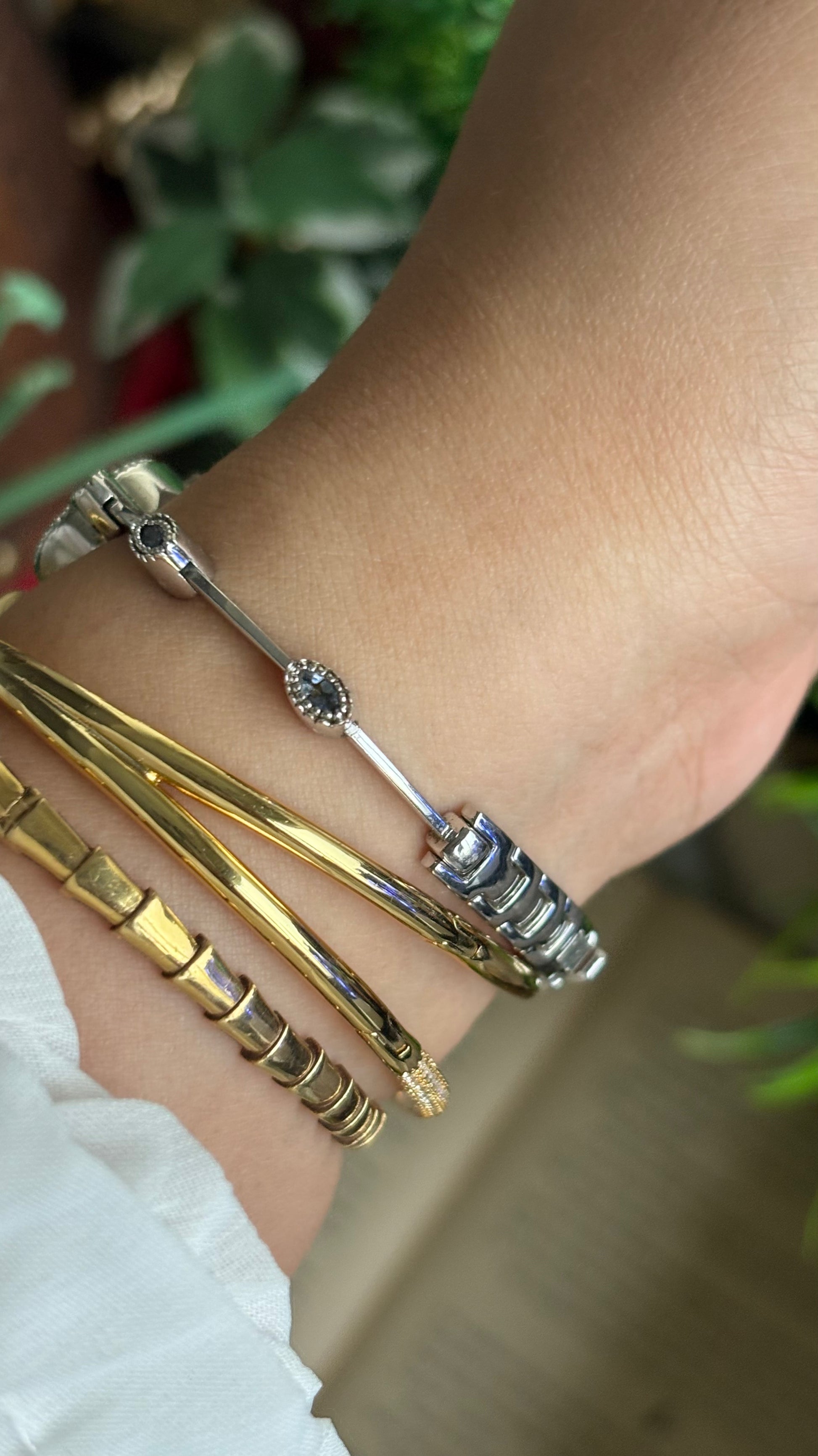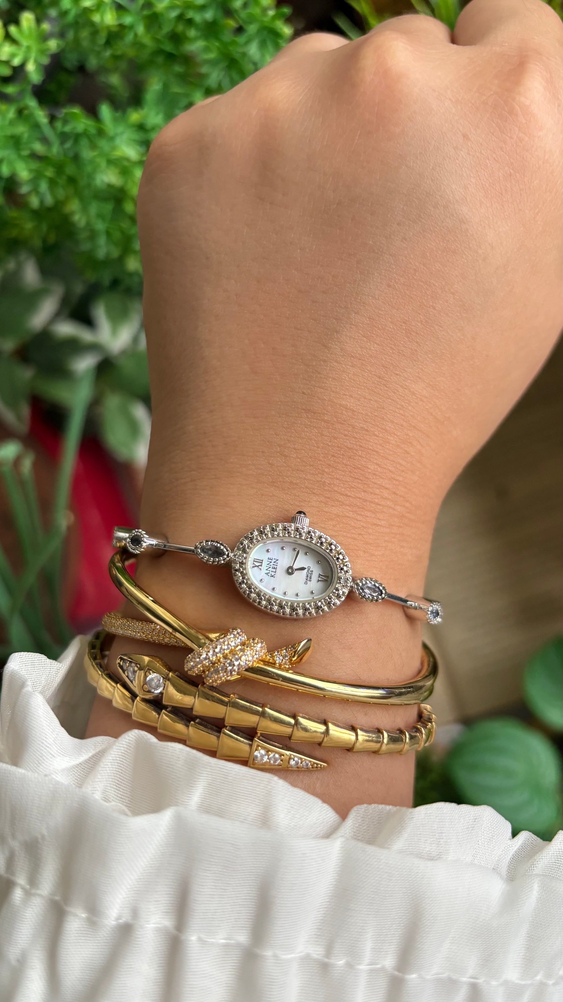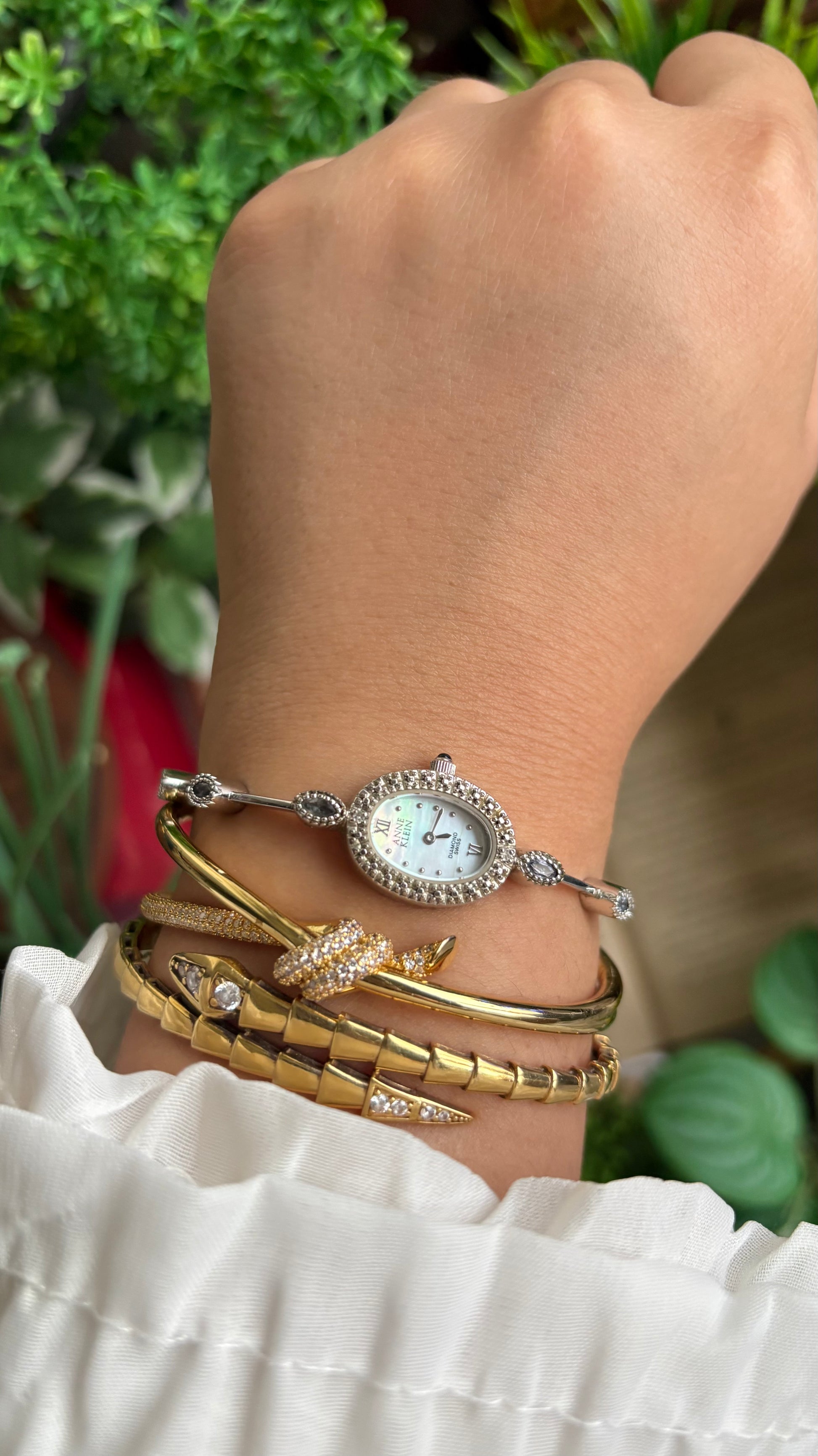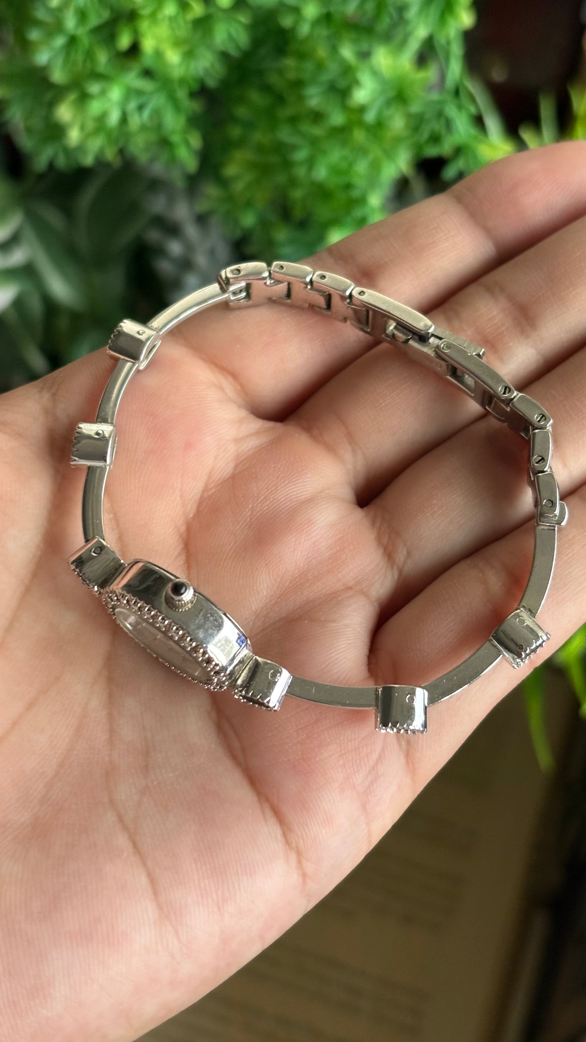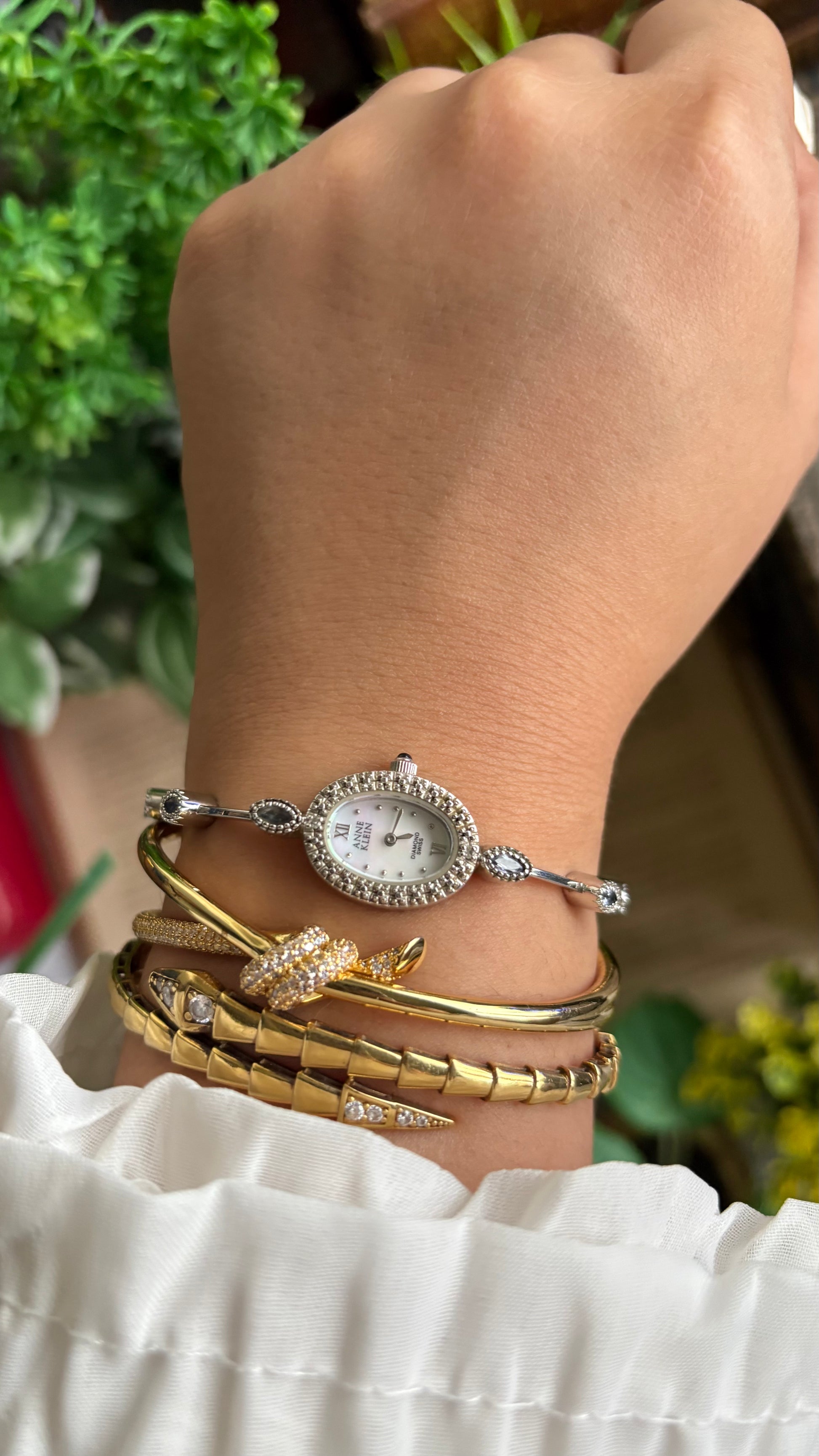 Vintage Anne Klein Swiss Watch in Silver Tone with Genuine Diamonds and Spinel Stone Mother of Pearl Dial
