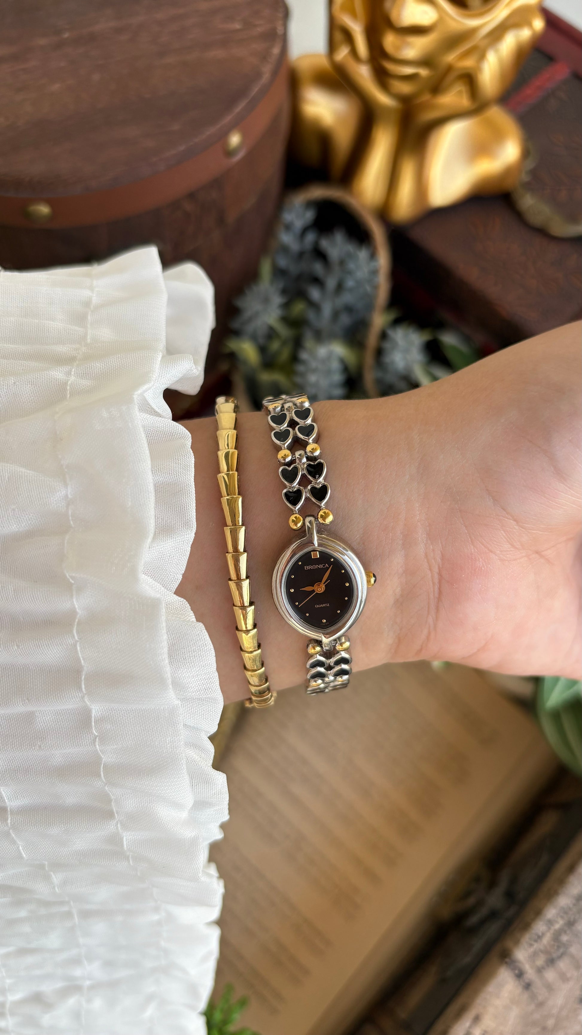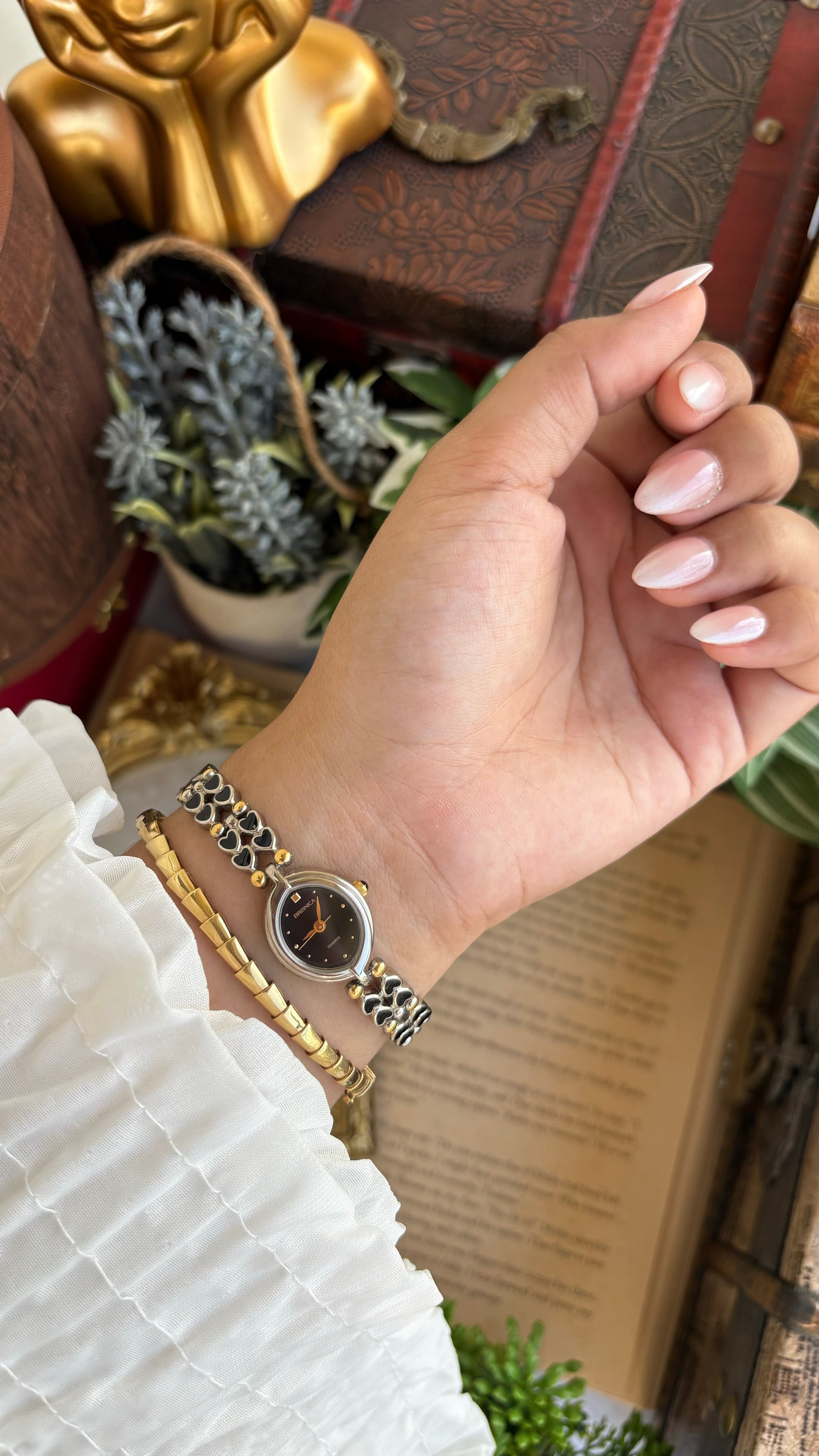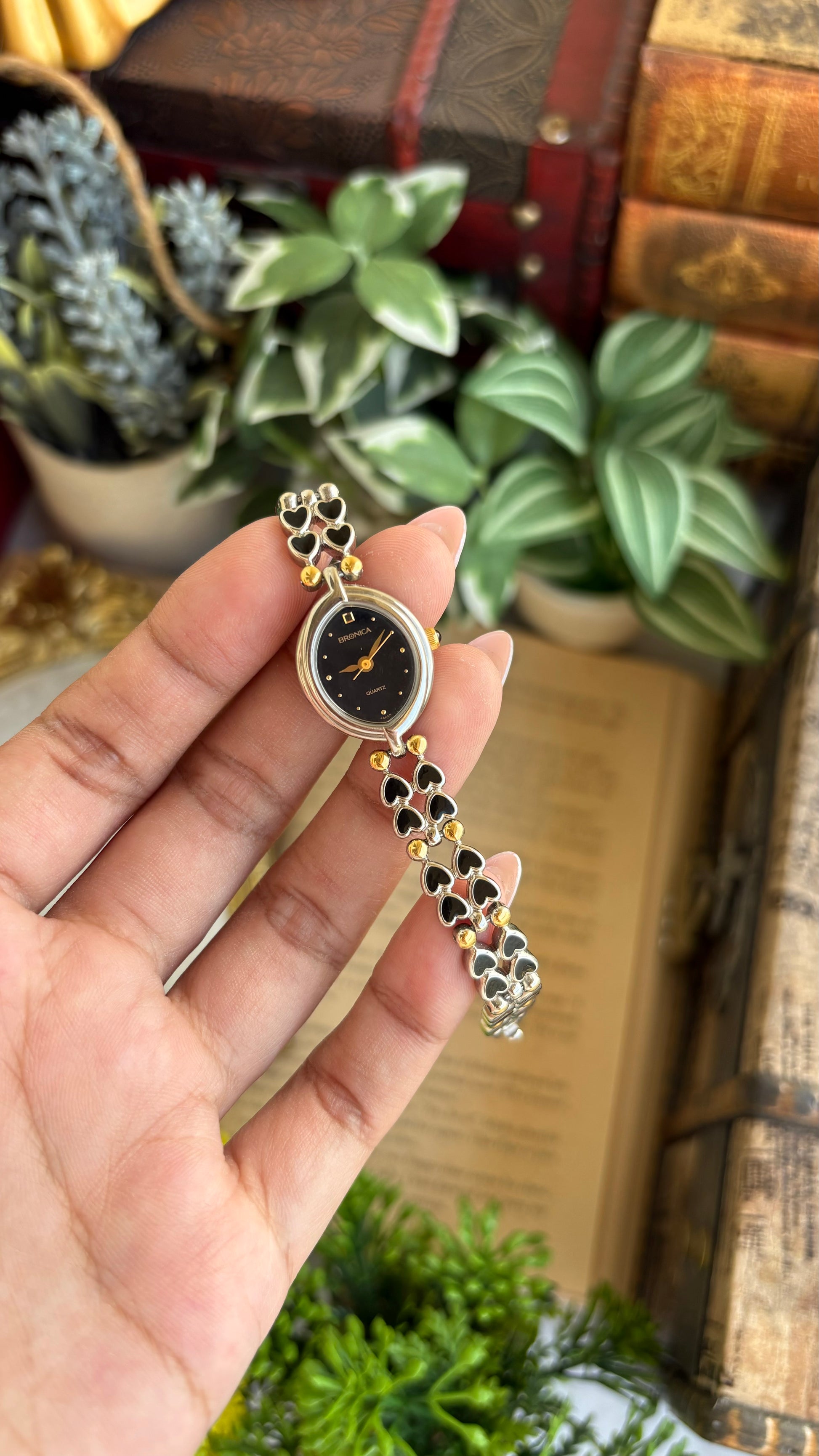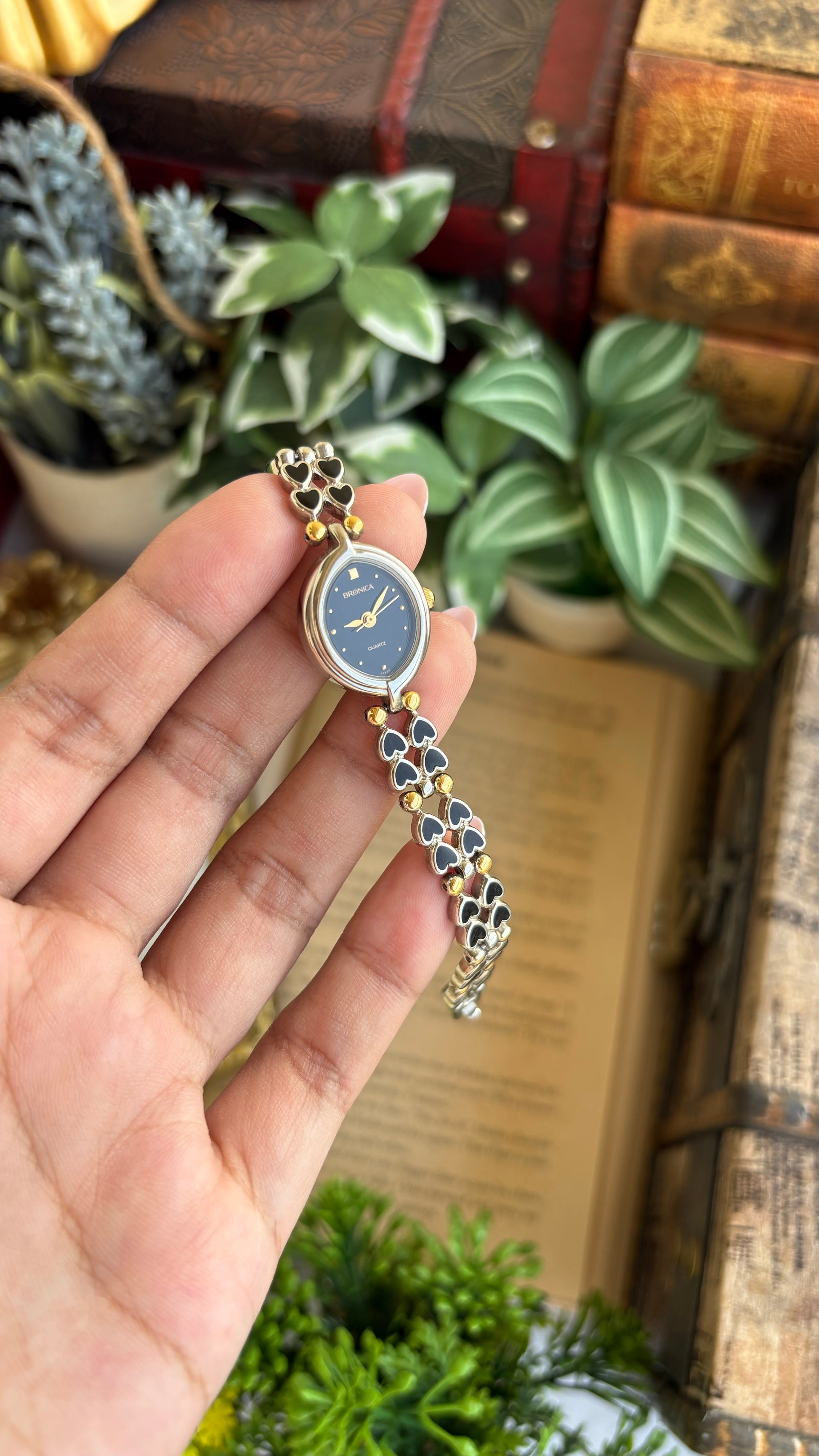 Rare Vintage Bronica Japan Almond Shape Watch in Two-Tone Heart Straps