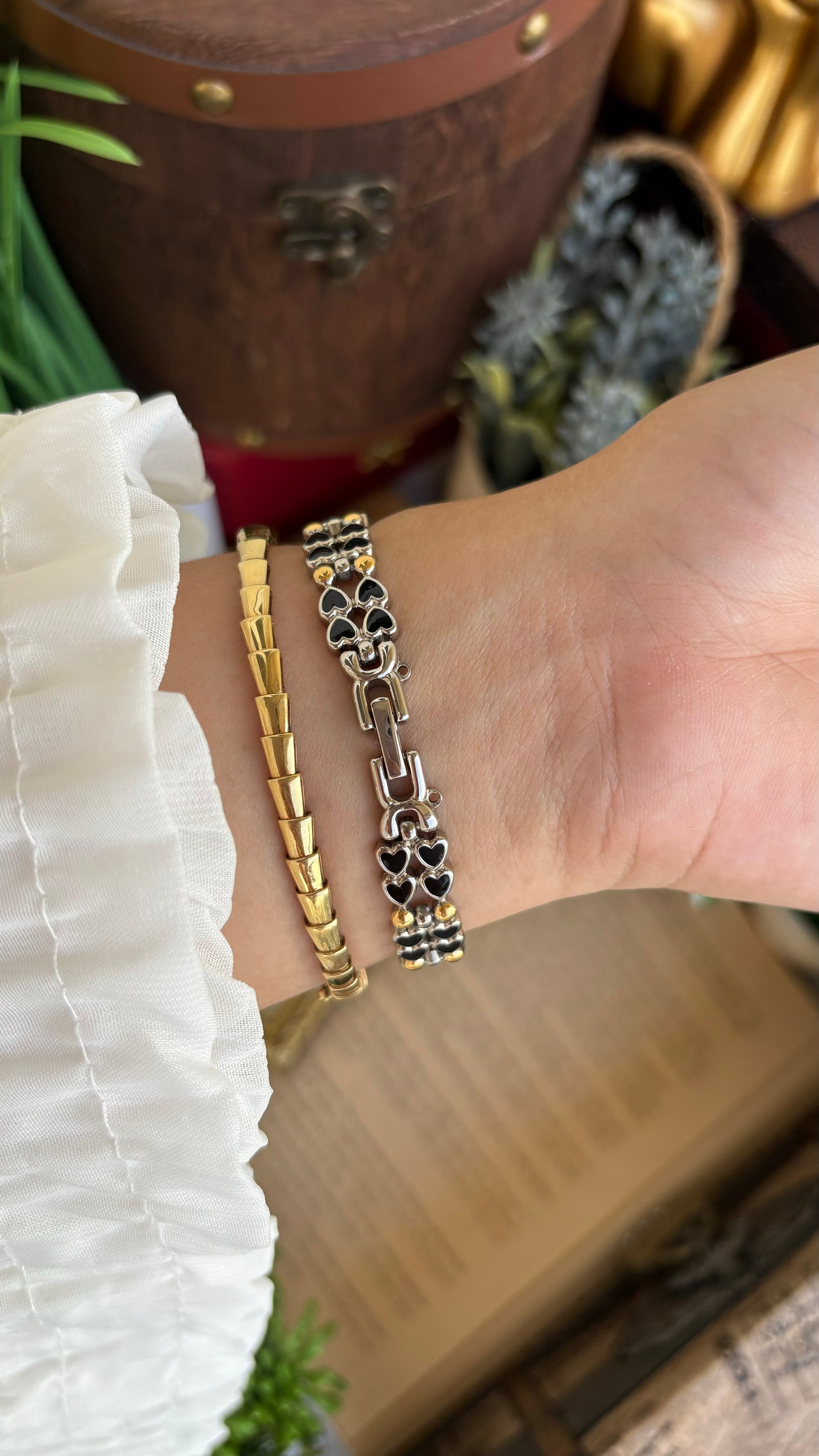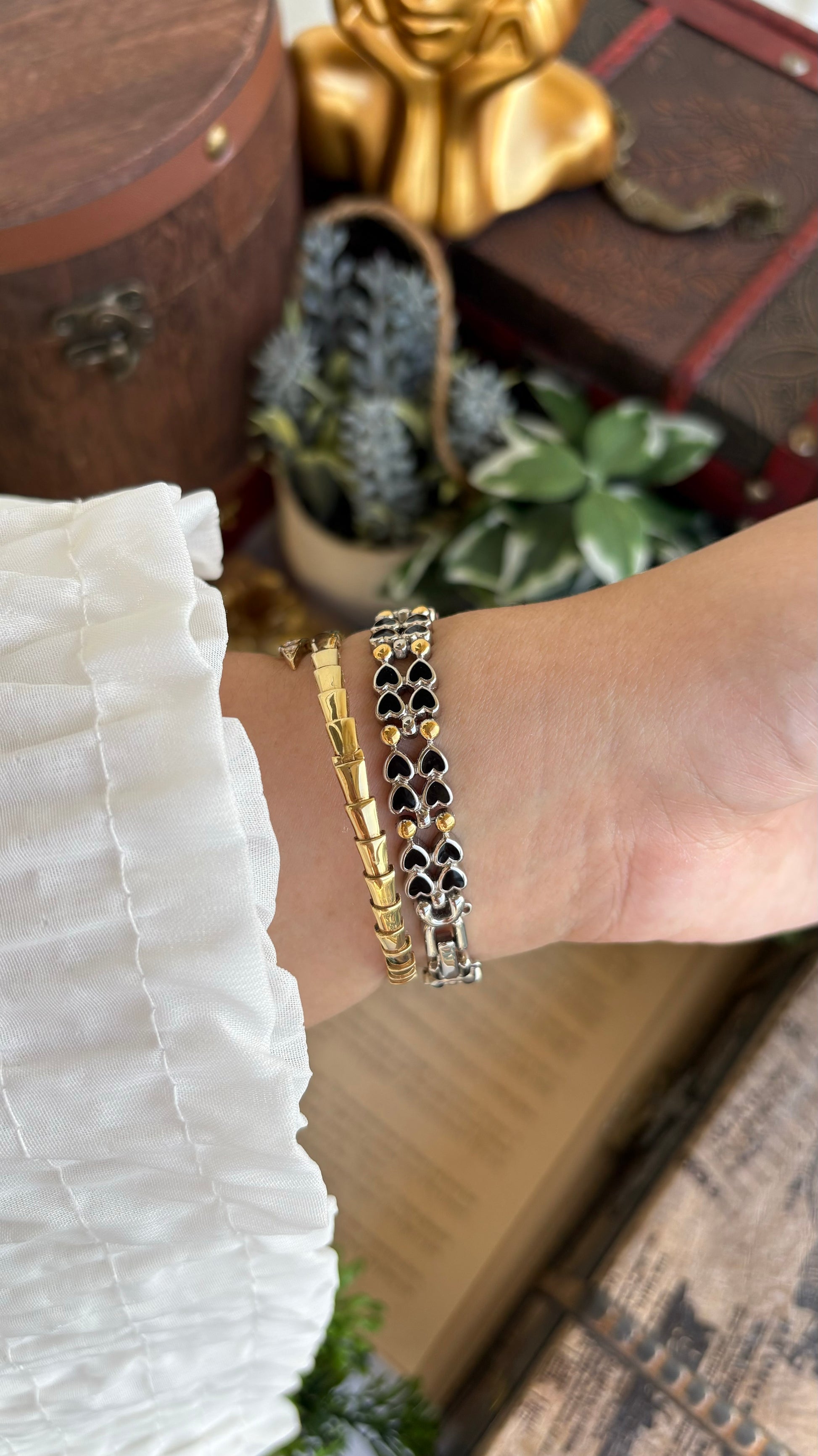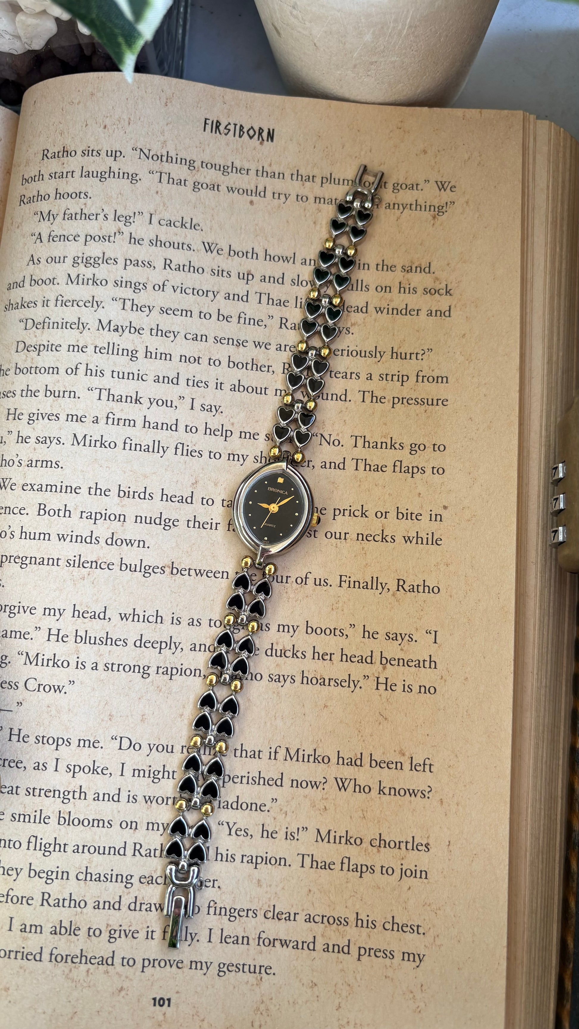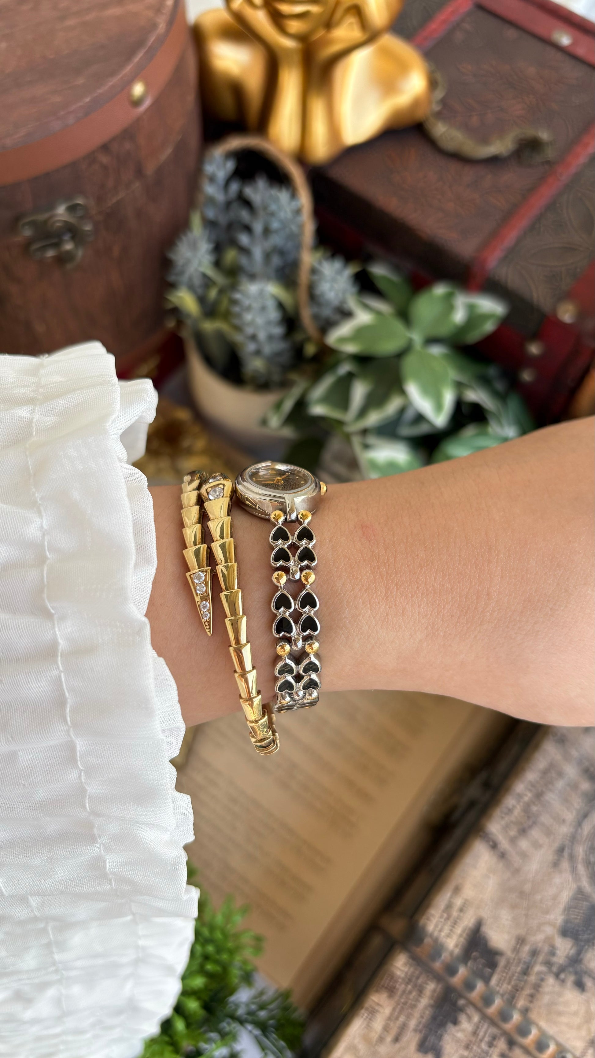Rare Vintage Bronica Japan Almond Shape Watch in Two-Tone Heart Straps