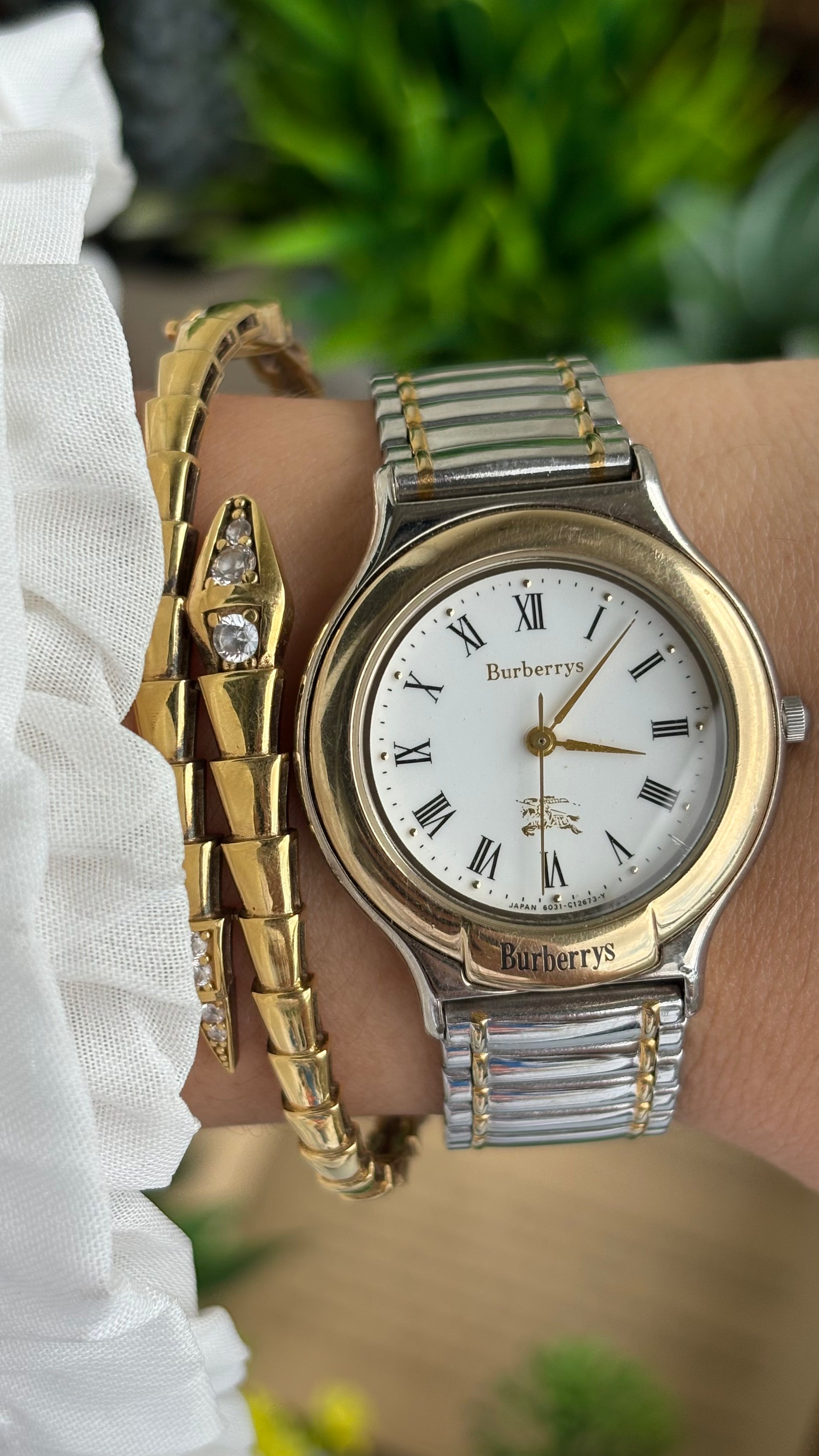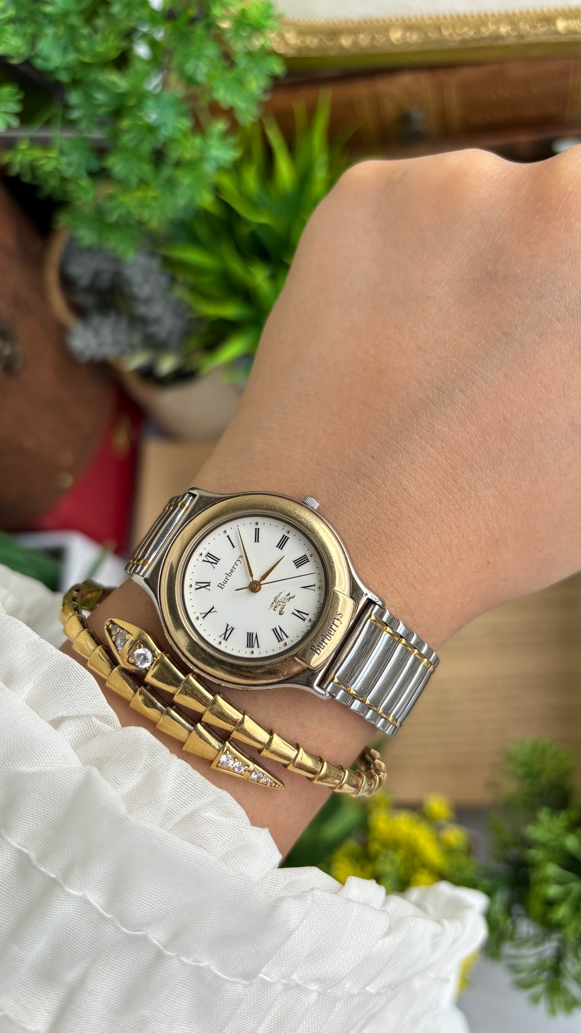 Vintage Two-Tone Unisex Burberry Watch in Roman Dial