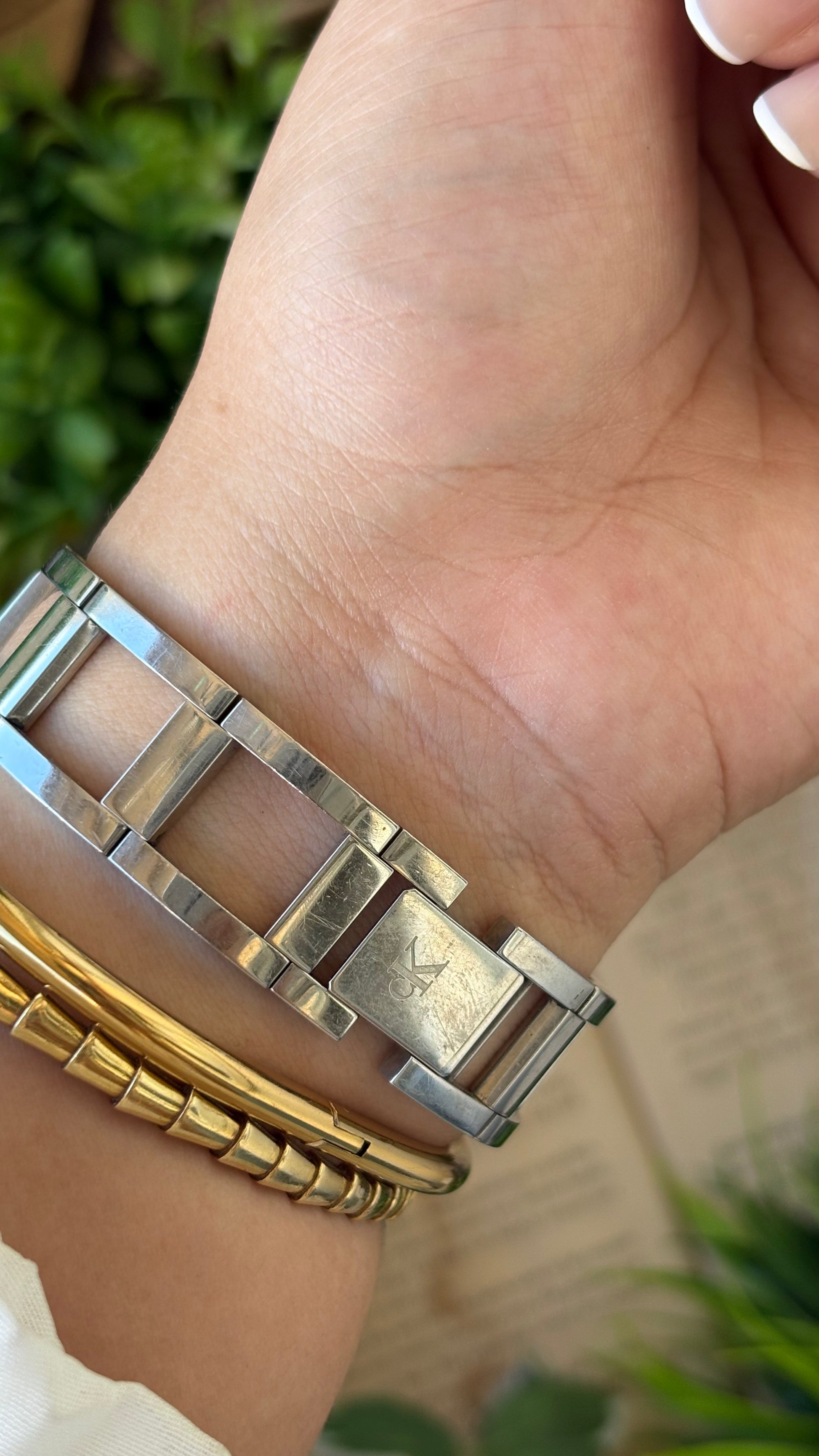 Vintage Calvin Klein Swiss Structured Chain Link Tank Watch in Silver Tone Quartz #00237