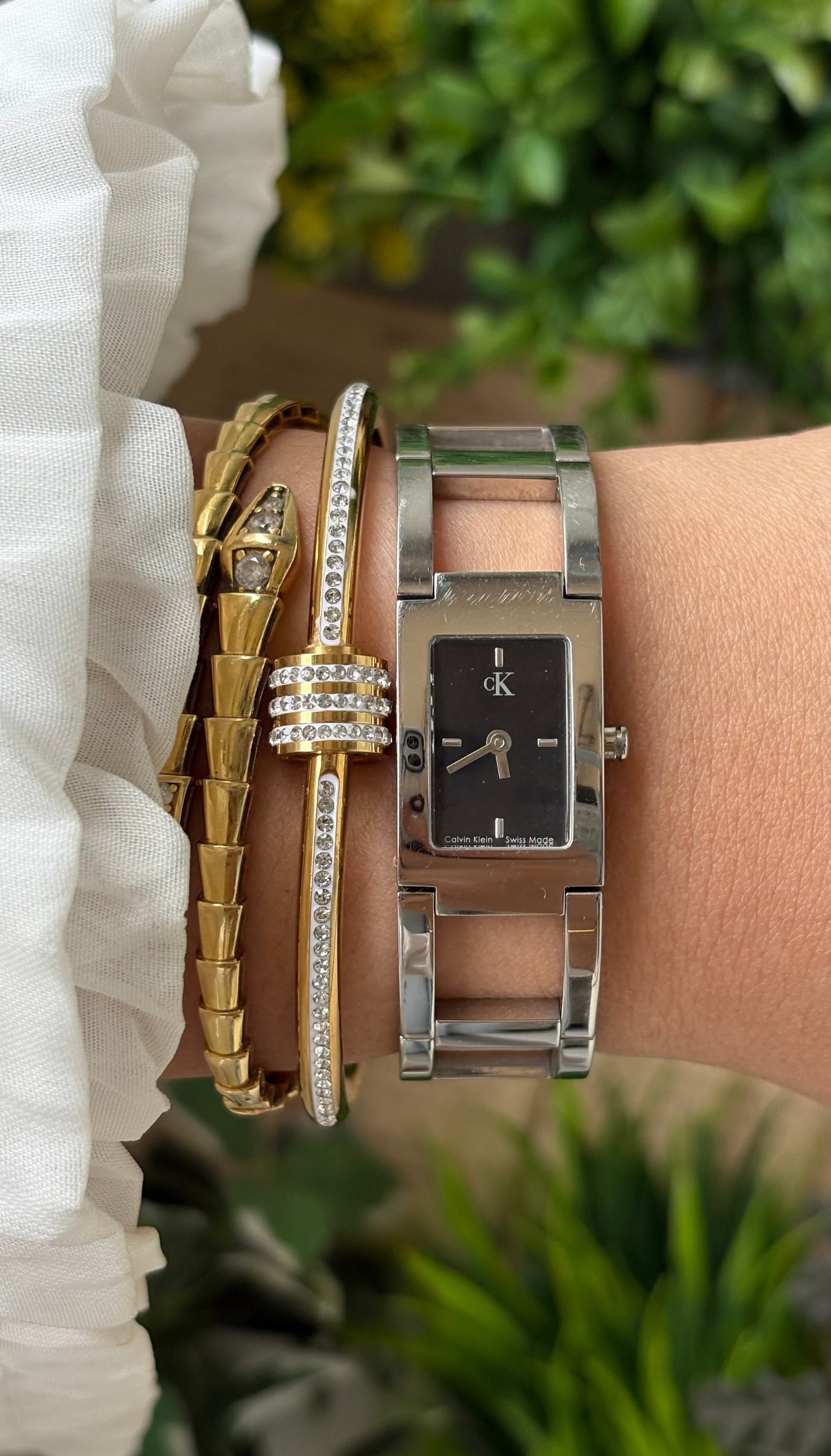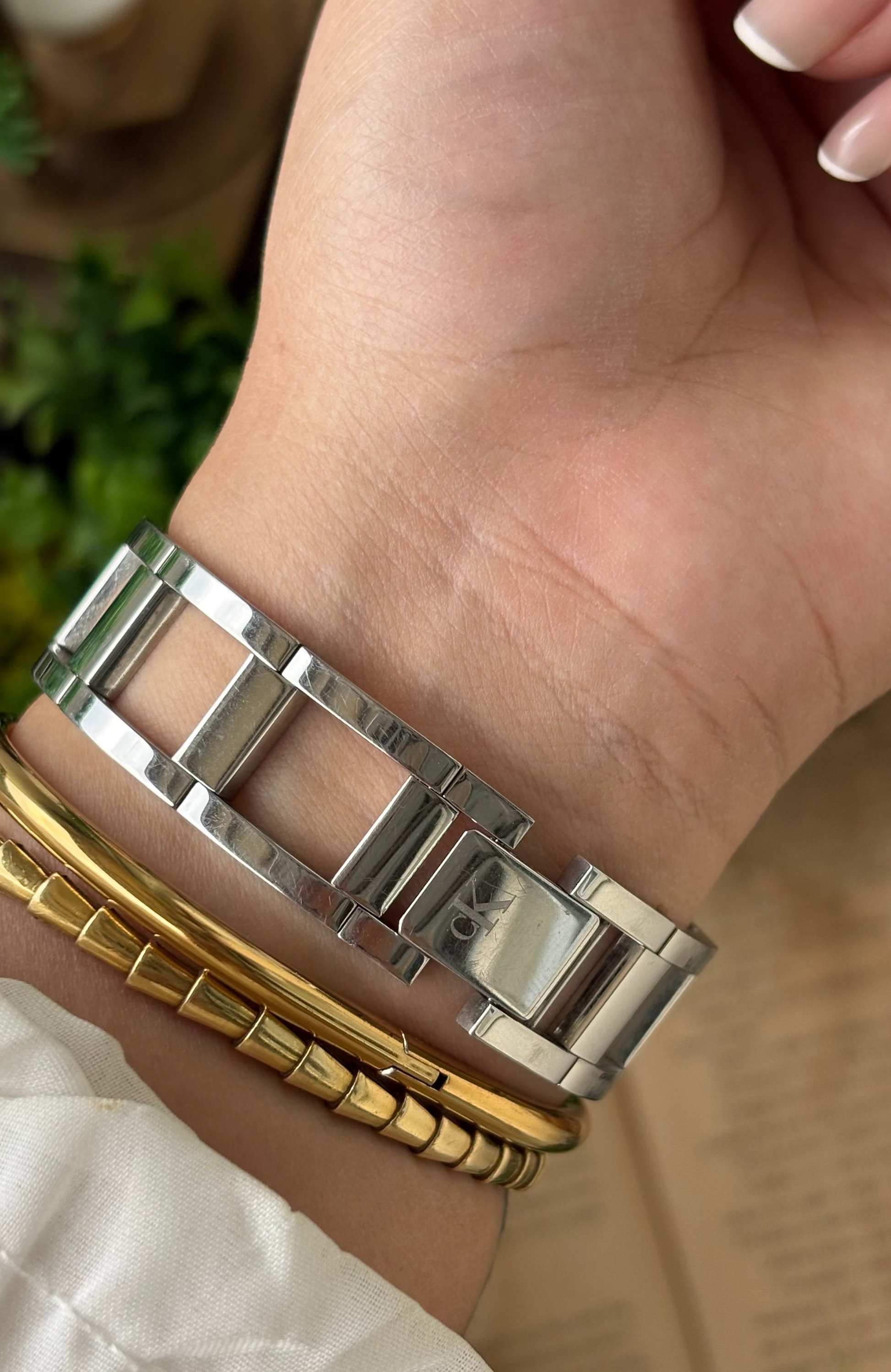 Vintage Calvin Klein Swiss Structured Chain Tank Watch in Silver Tone Quartz #00264