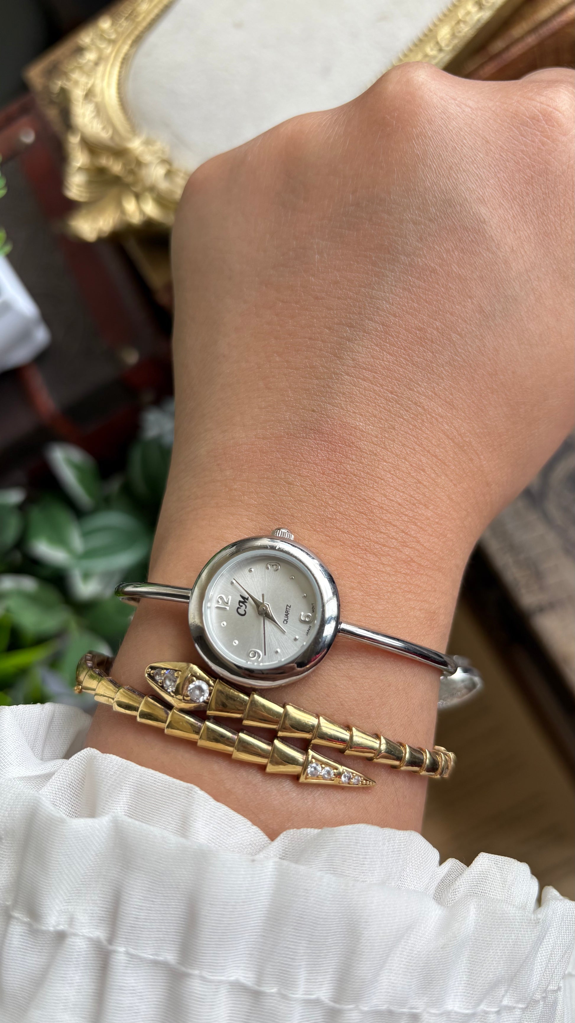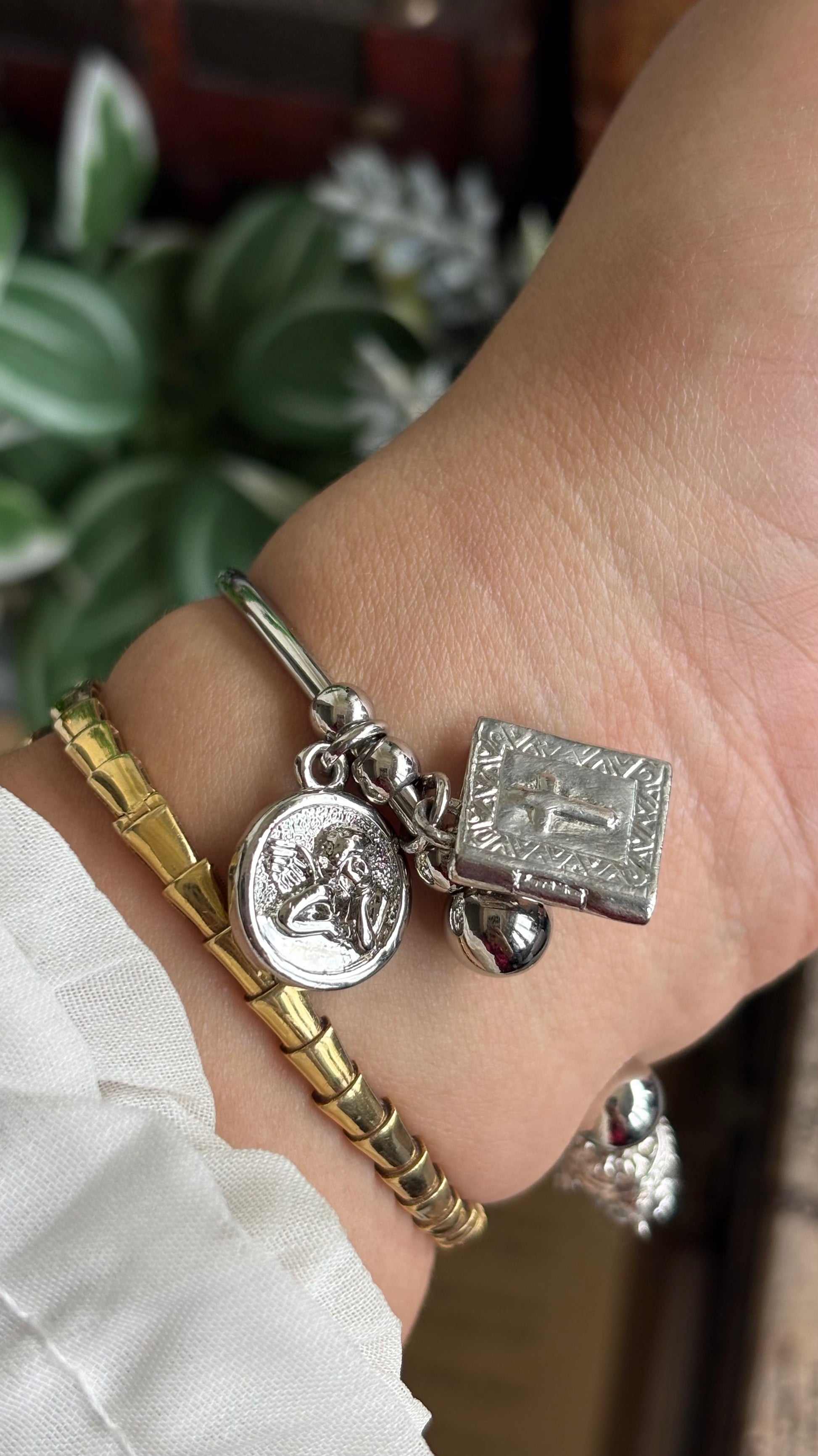 Vintage Dangling Charms Petite Bangle Watch in Silver Tone