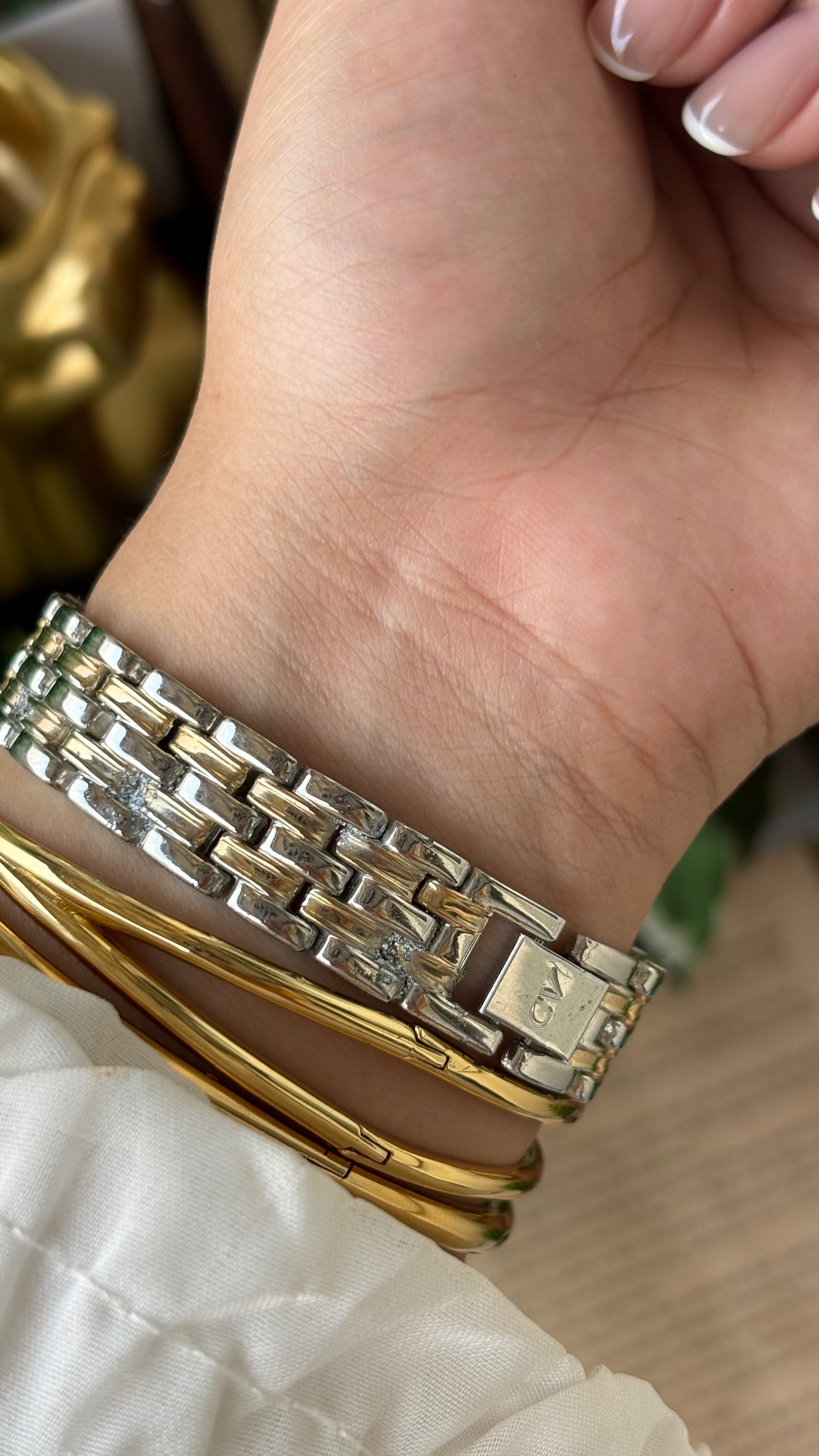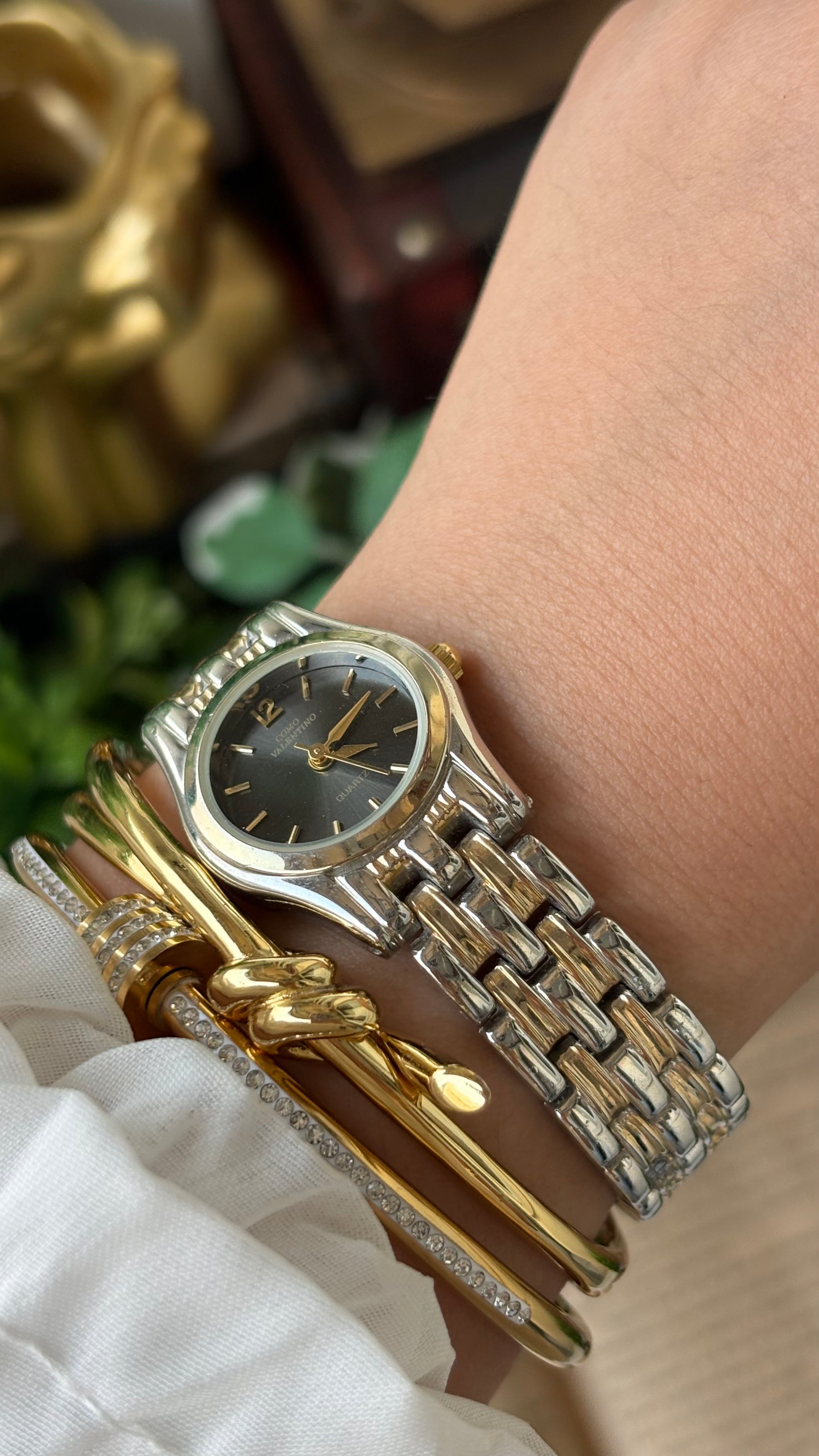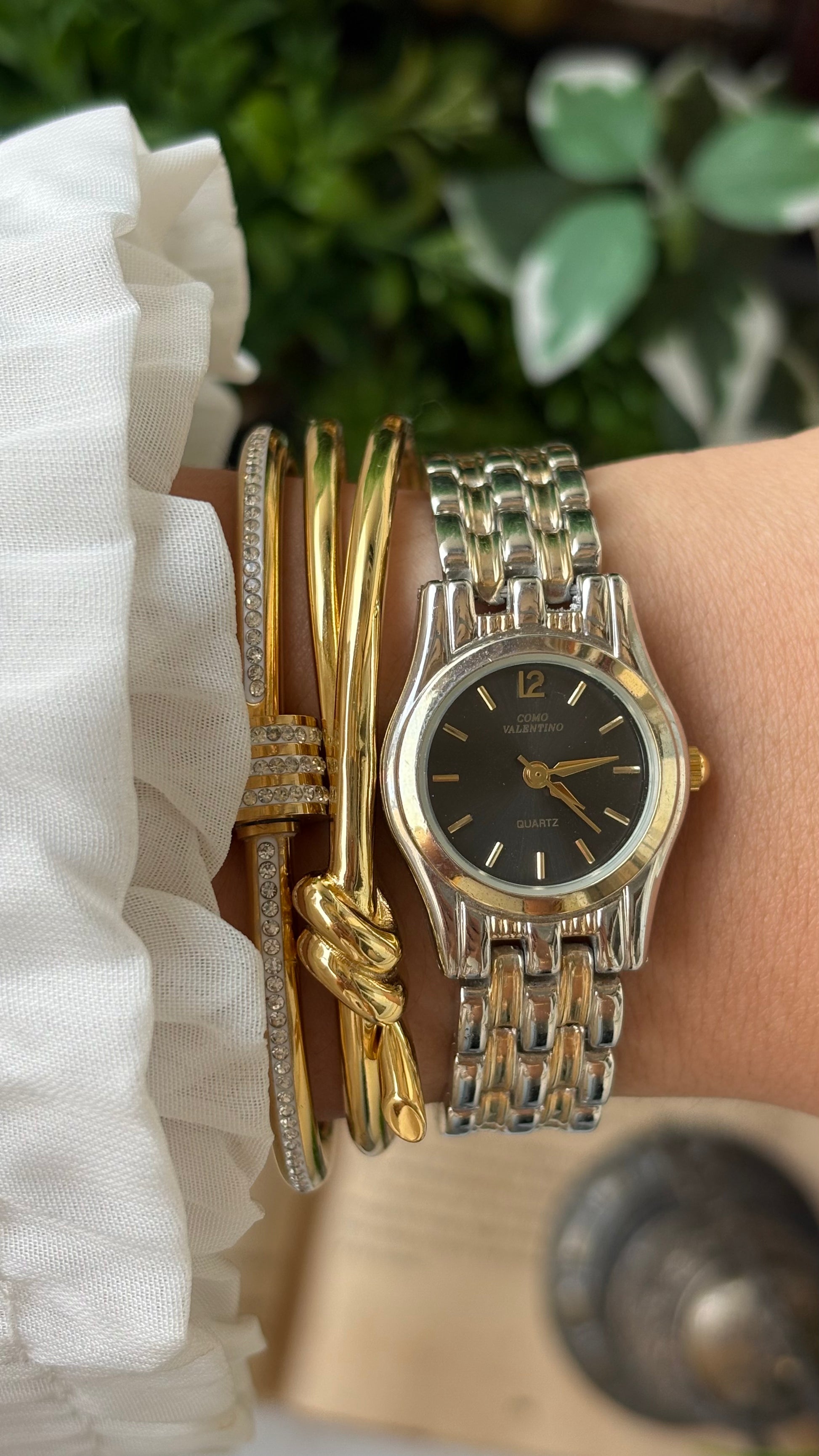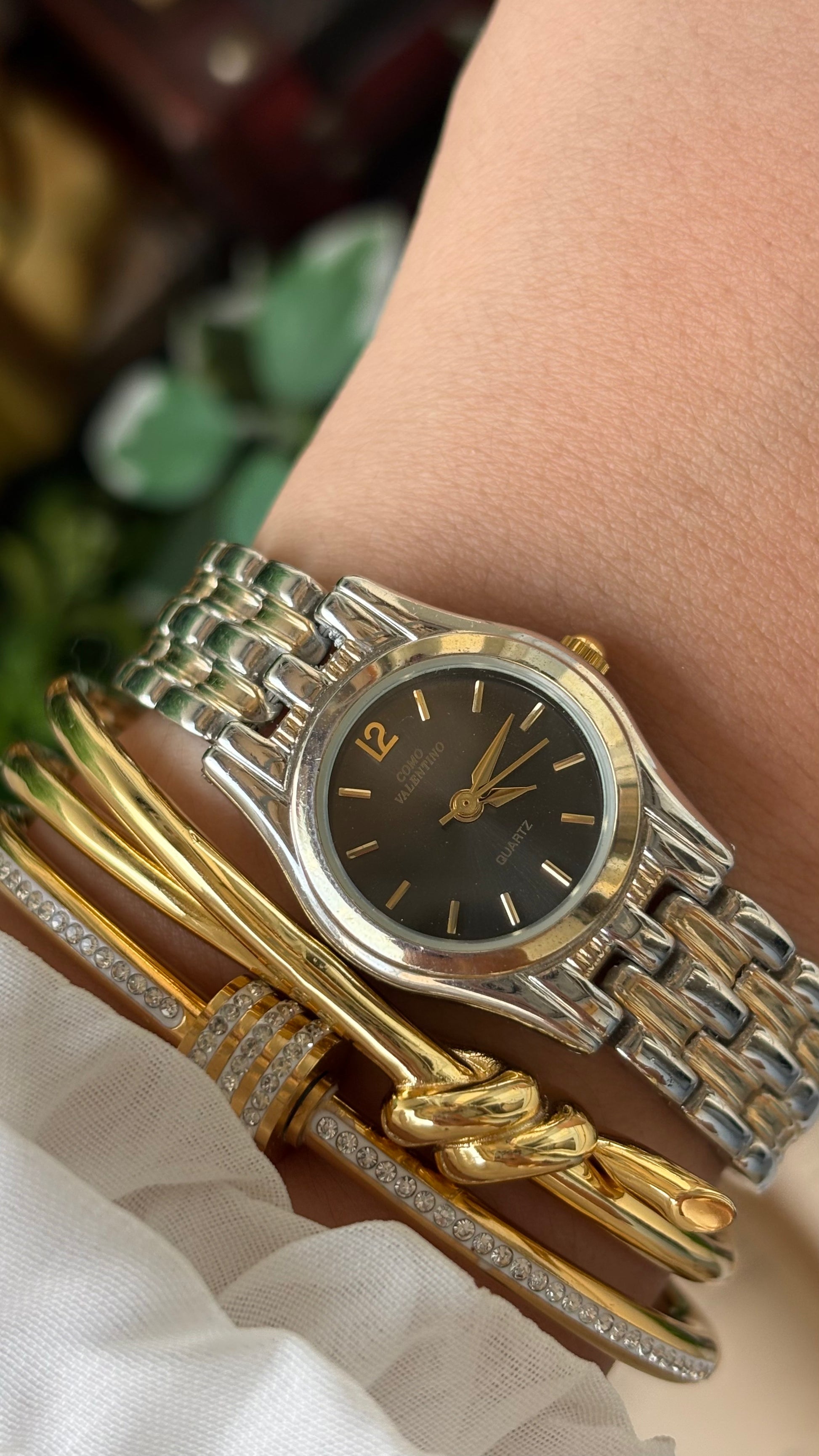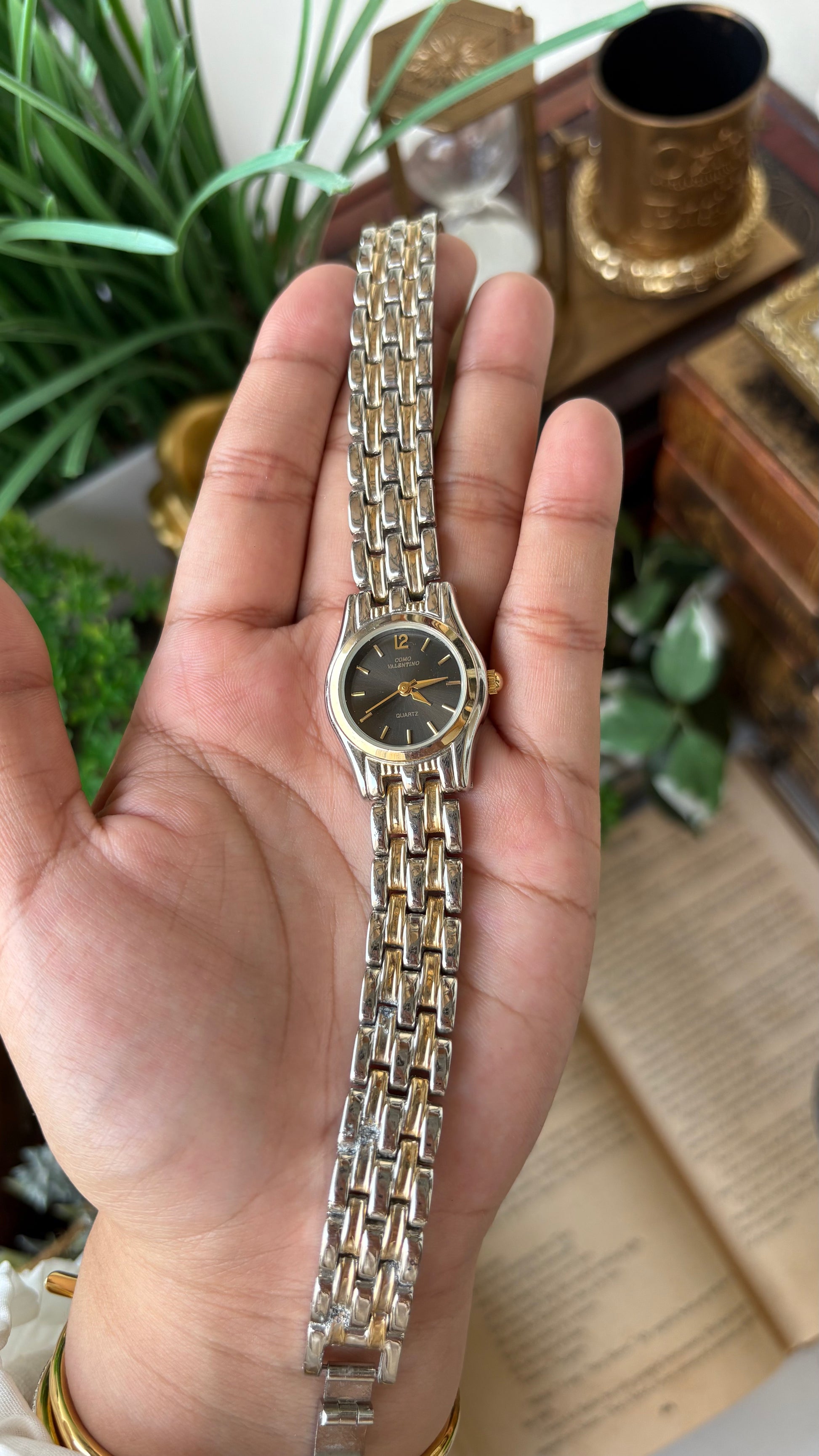 Vintage Como Valentino Classic Watch in Two-Tone Black Silver Dial Japan Quartz