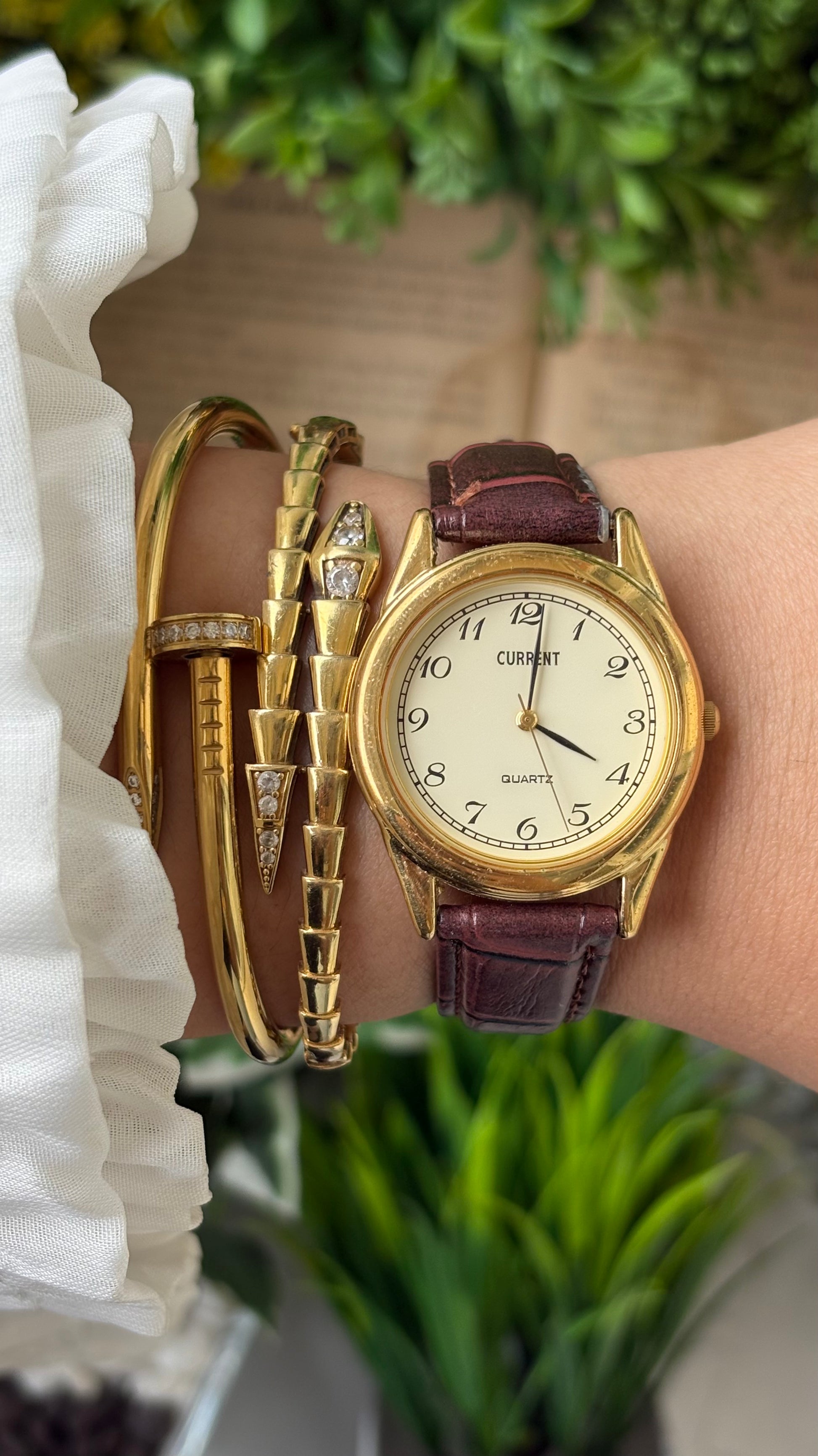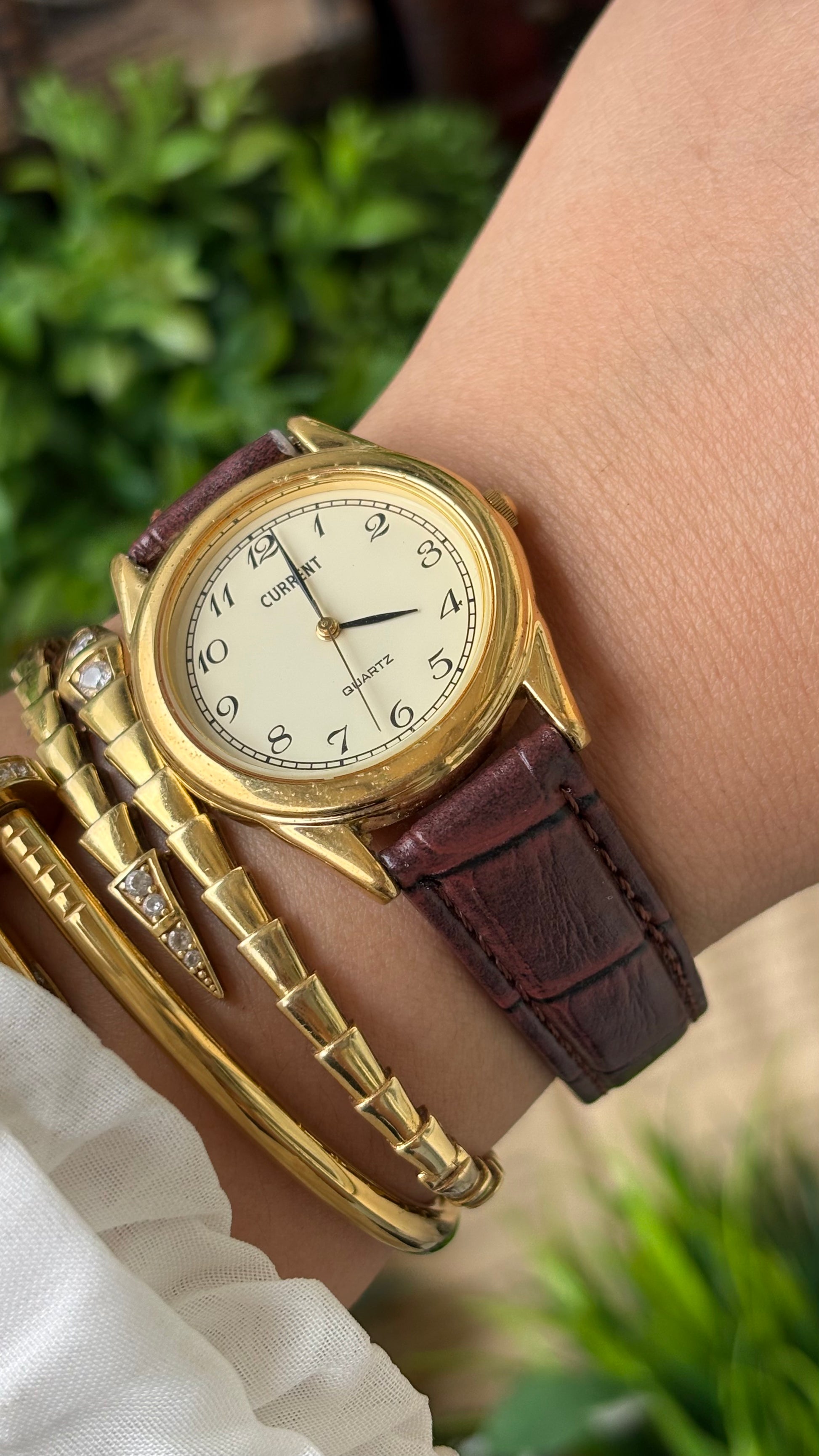 Vintage Current Men's Watch in Gold Tone Brown Leather Quartz #00907