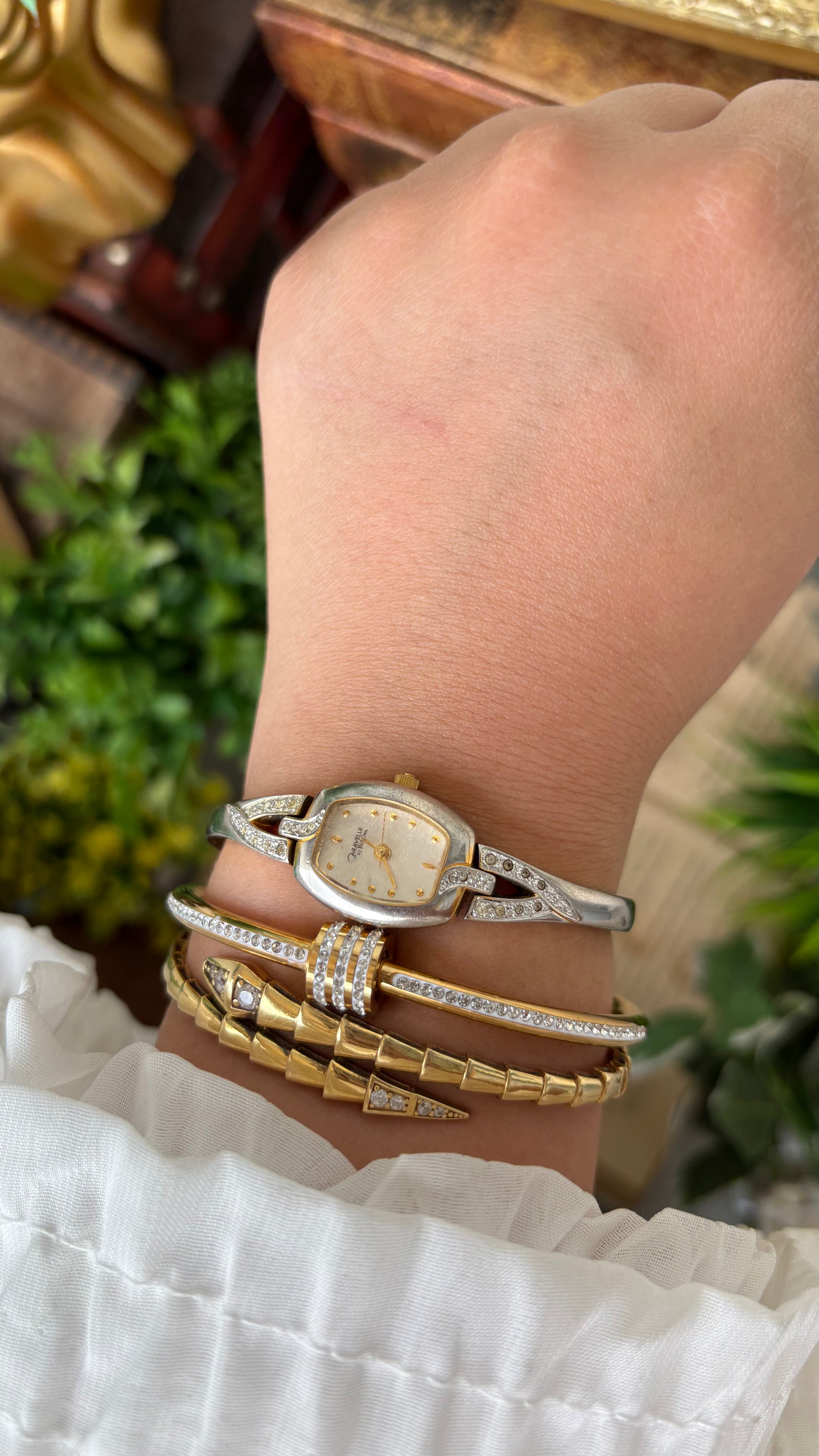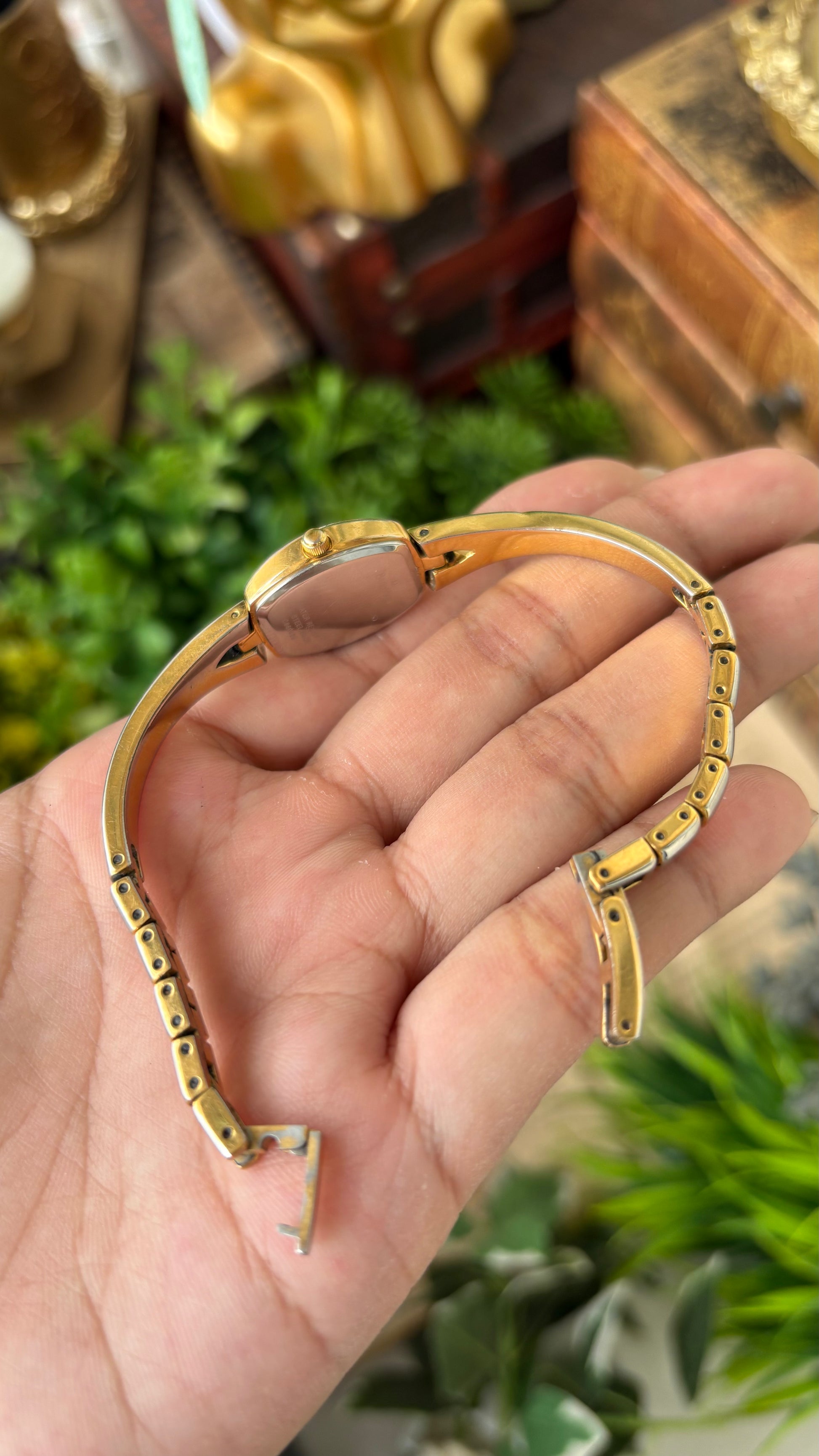 Vintage Dainty Caravelle by Bulova Semi-Bangle Stem Watch in Gold Tone Quartz #00233