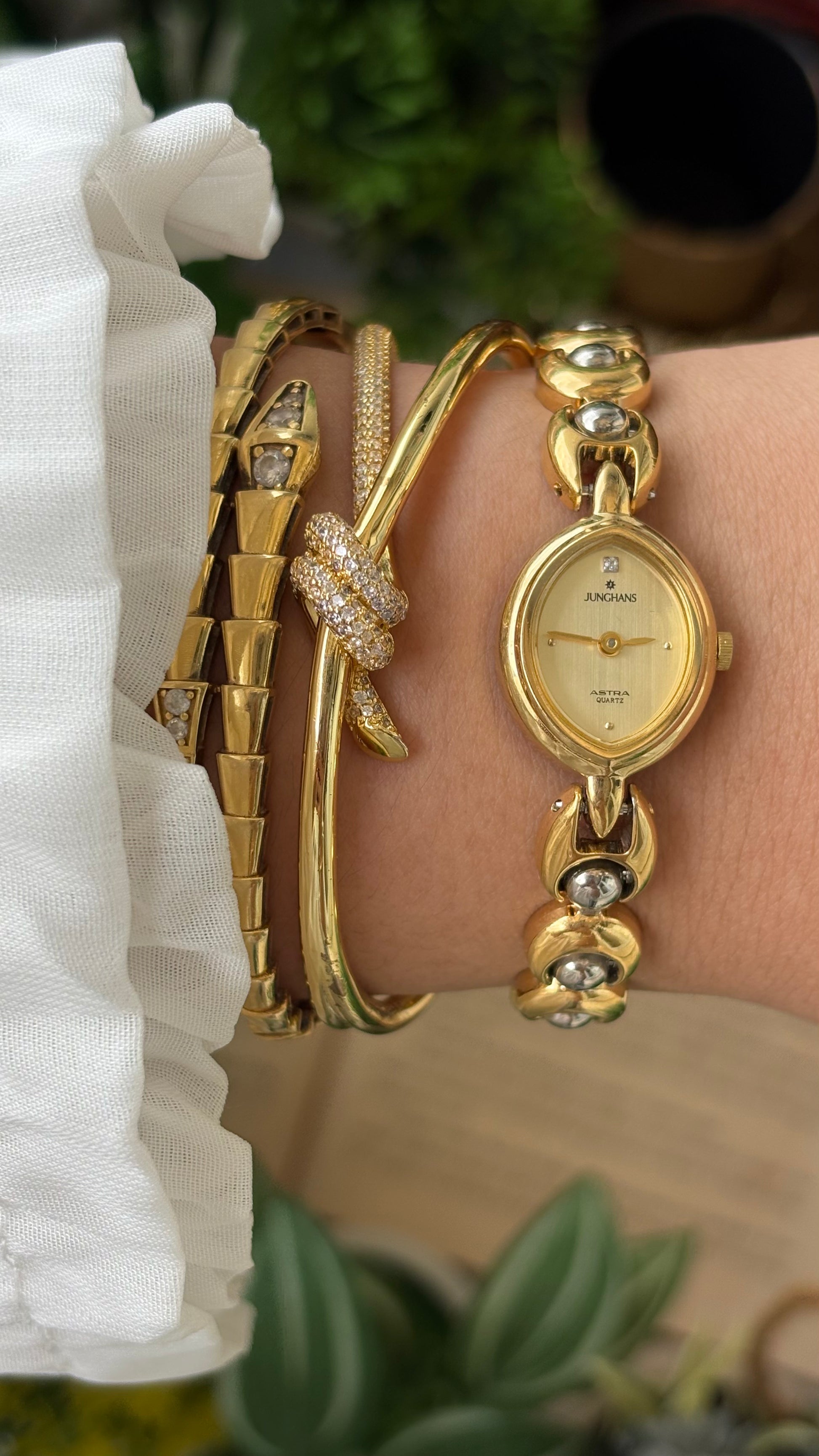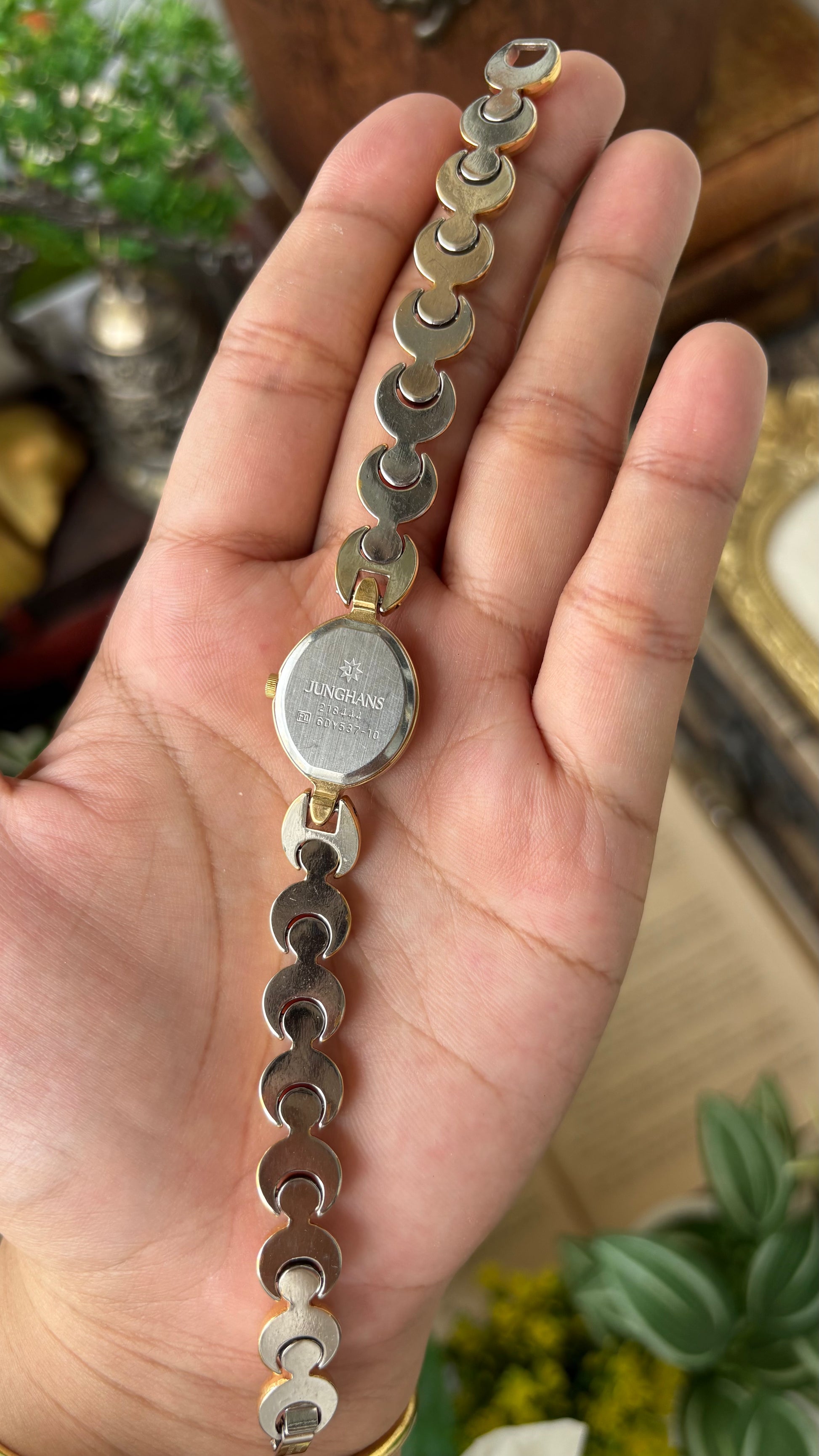 Vintage Dainty Junghans Astra Watch in Gold Tone Almond Dial Quartz