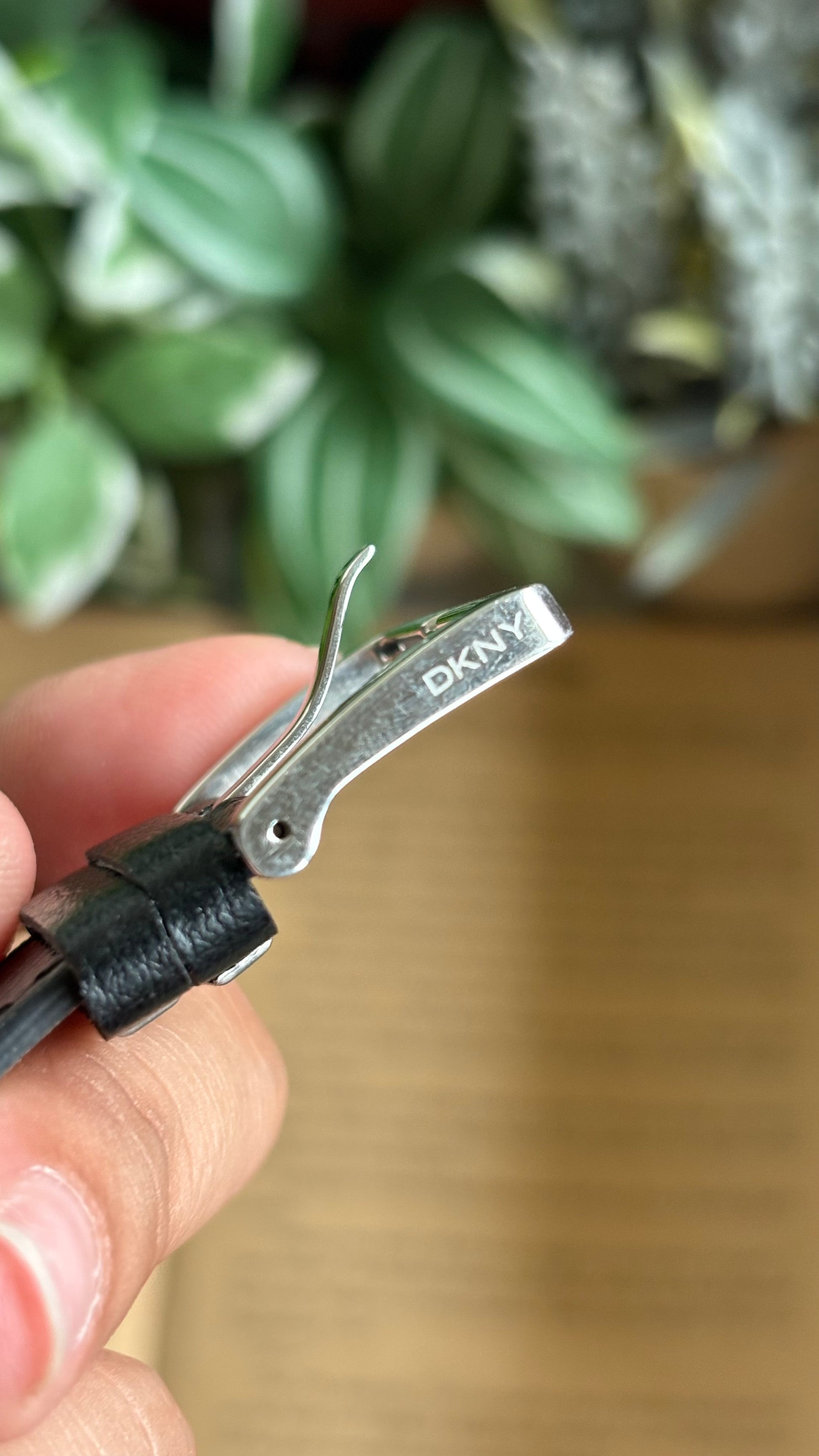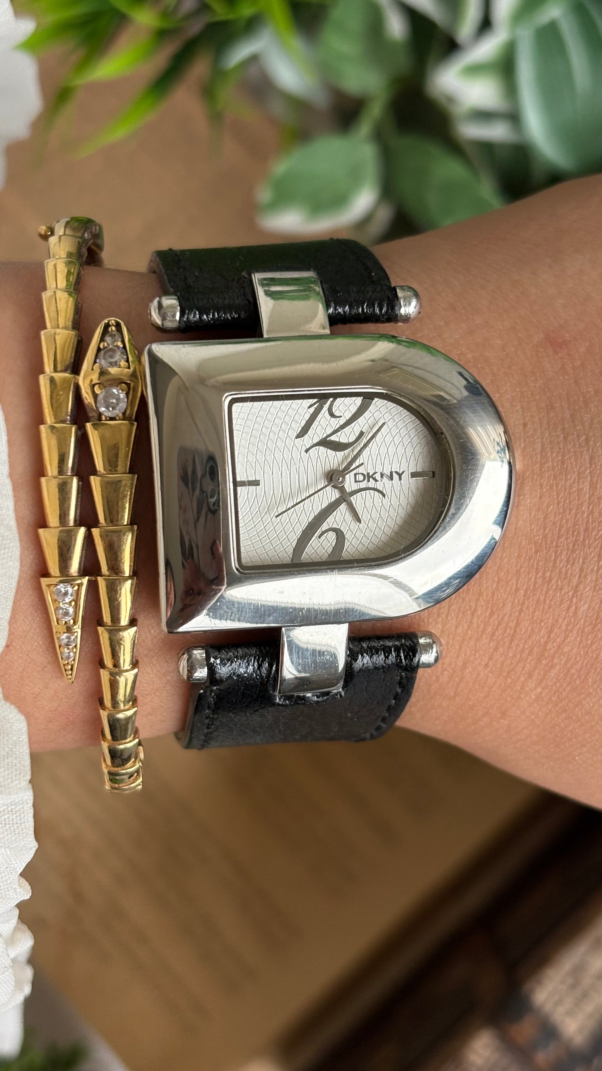Vintage DKNY Half Moon Watch in Black Leather Strap