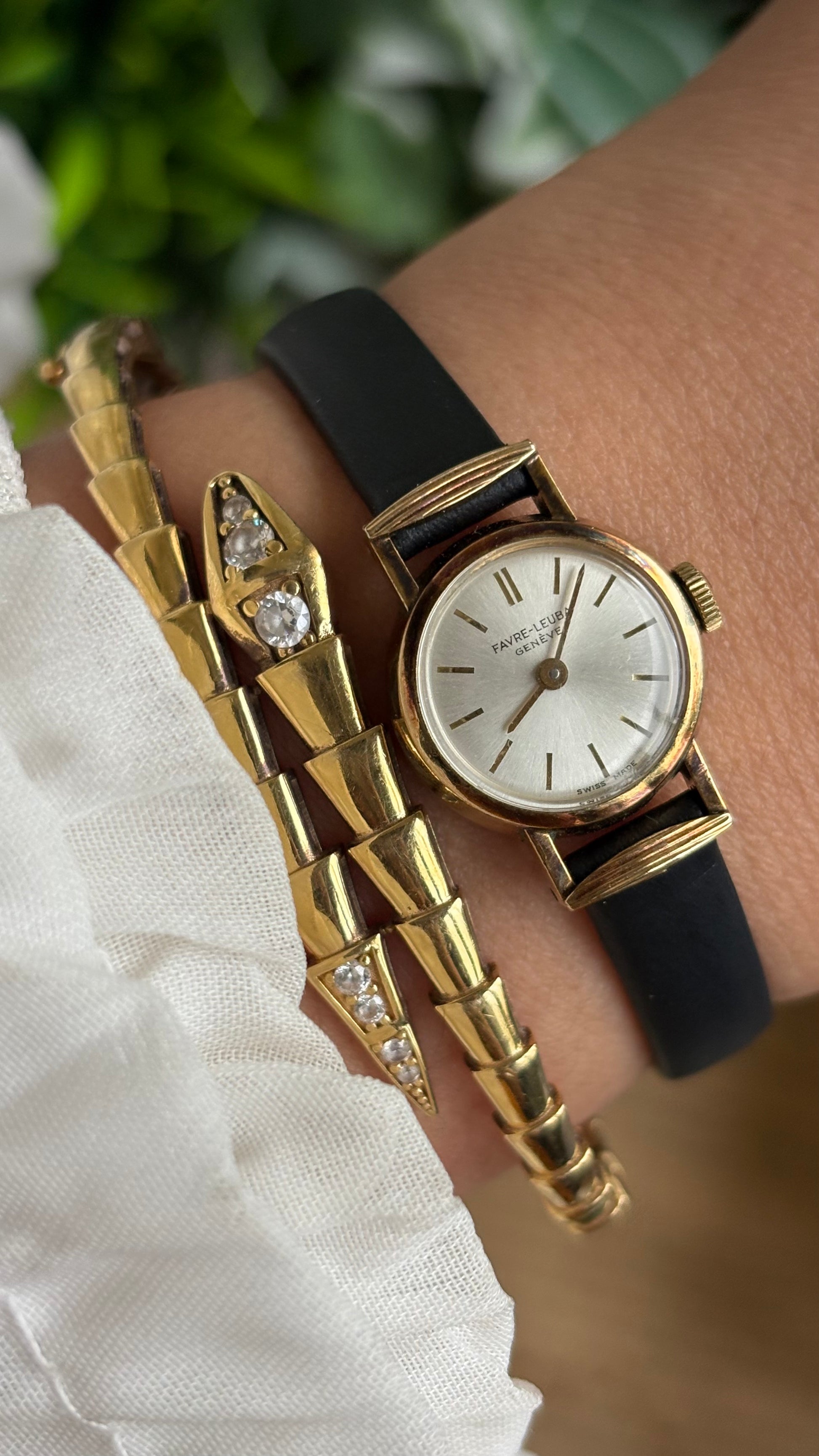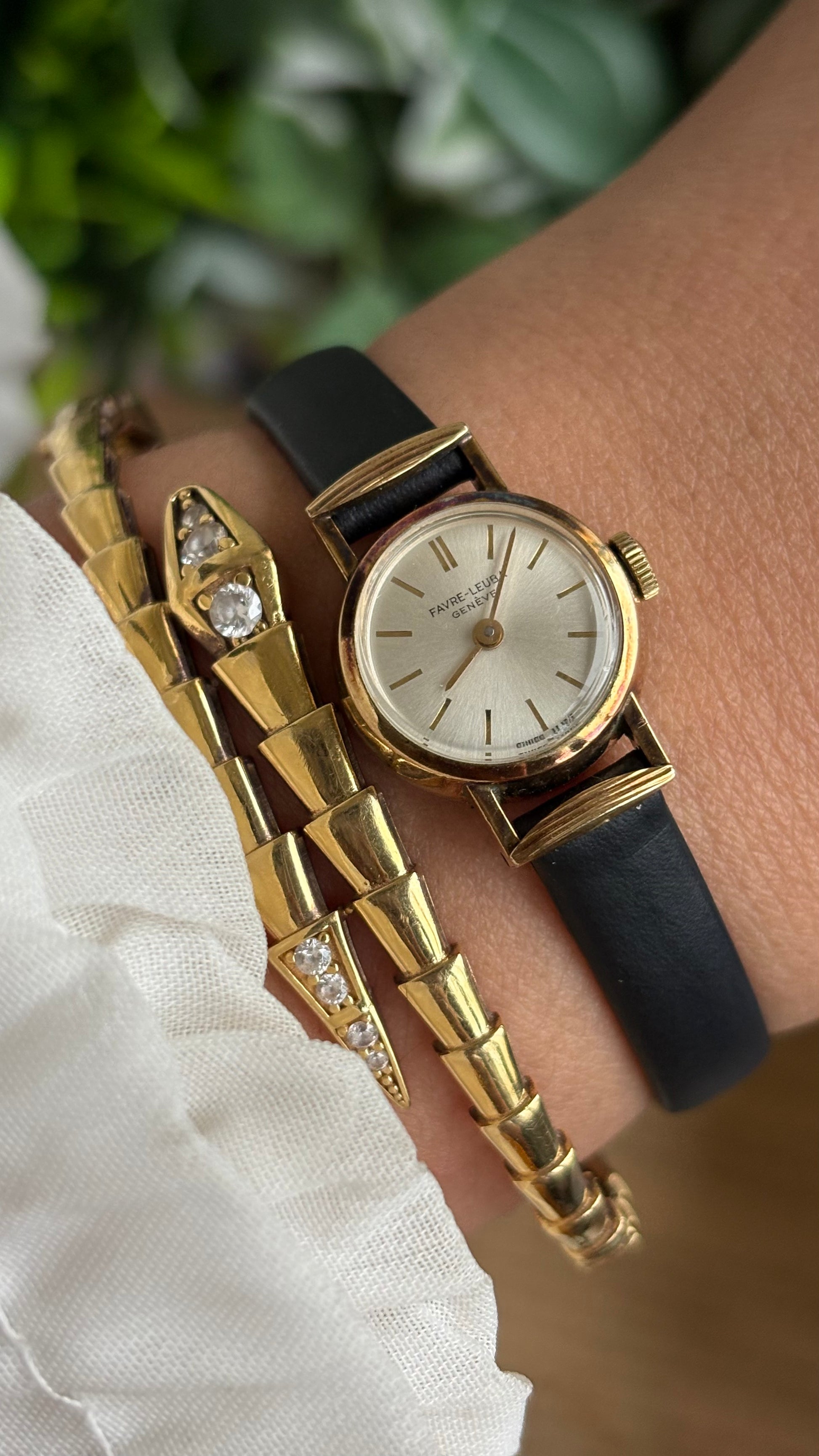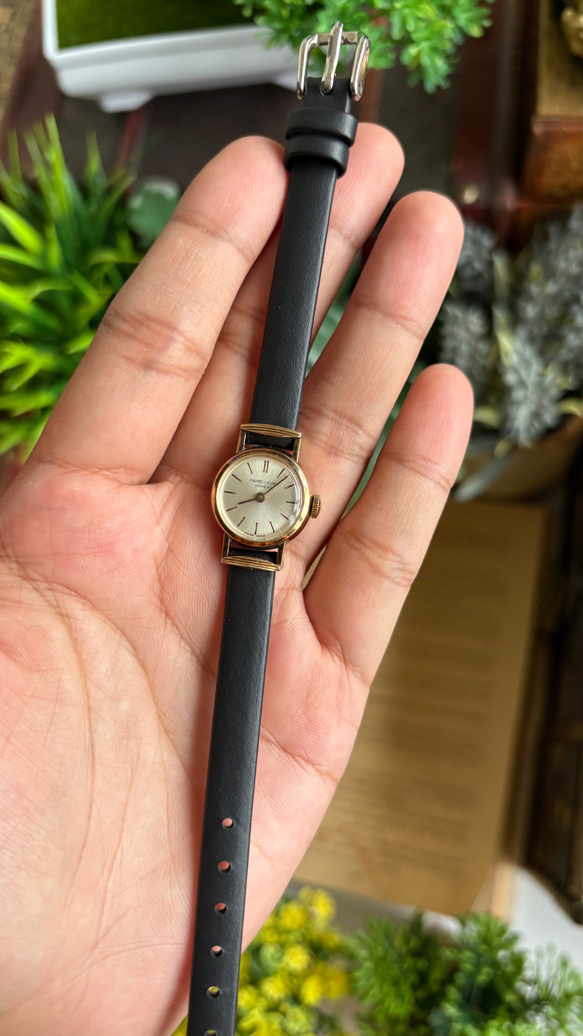 Extremely Rare Vintage Favre-Leuba Geneve Swiss Watch in Black Leather Strap