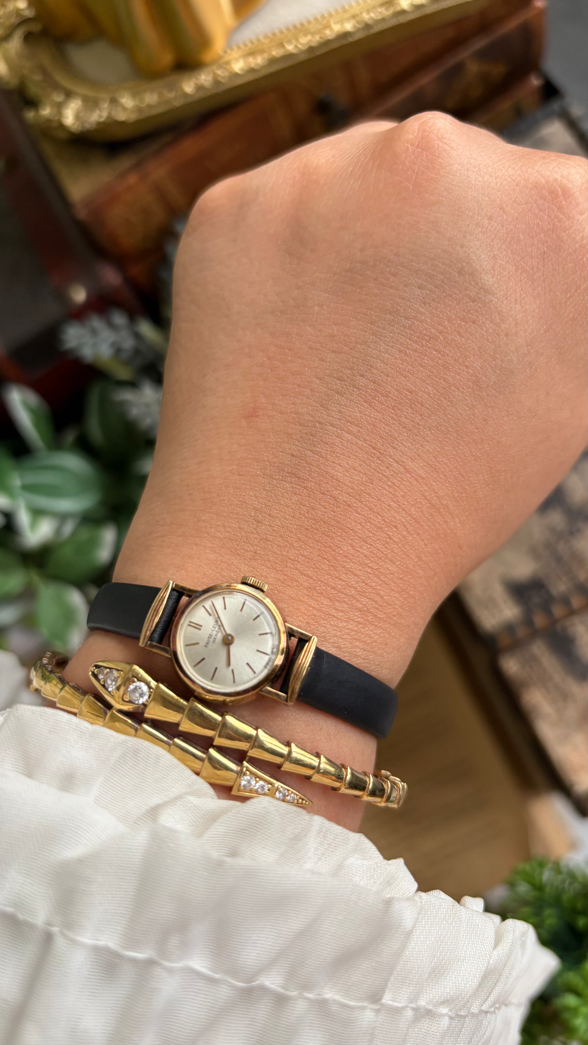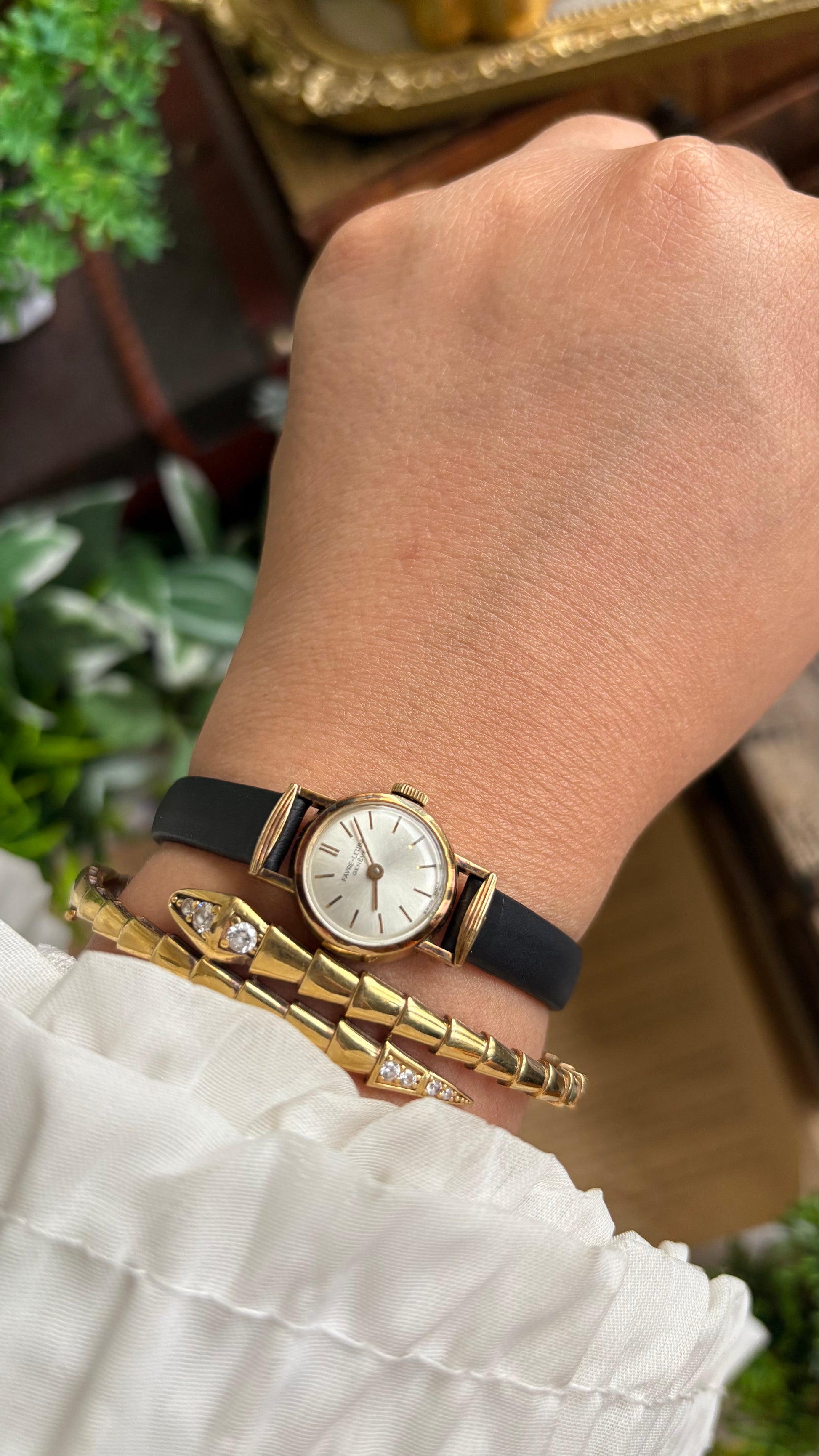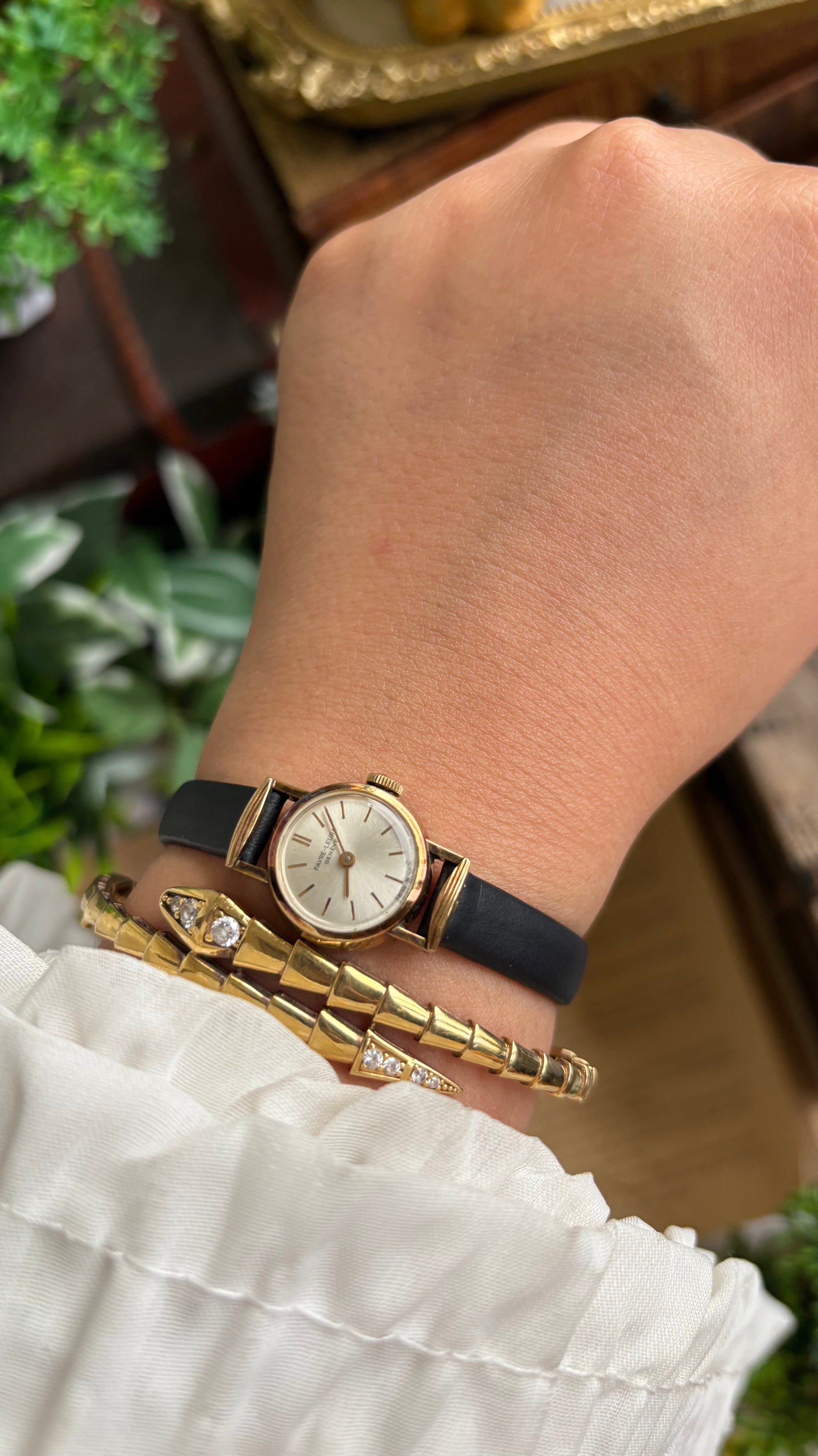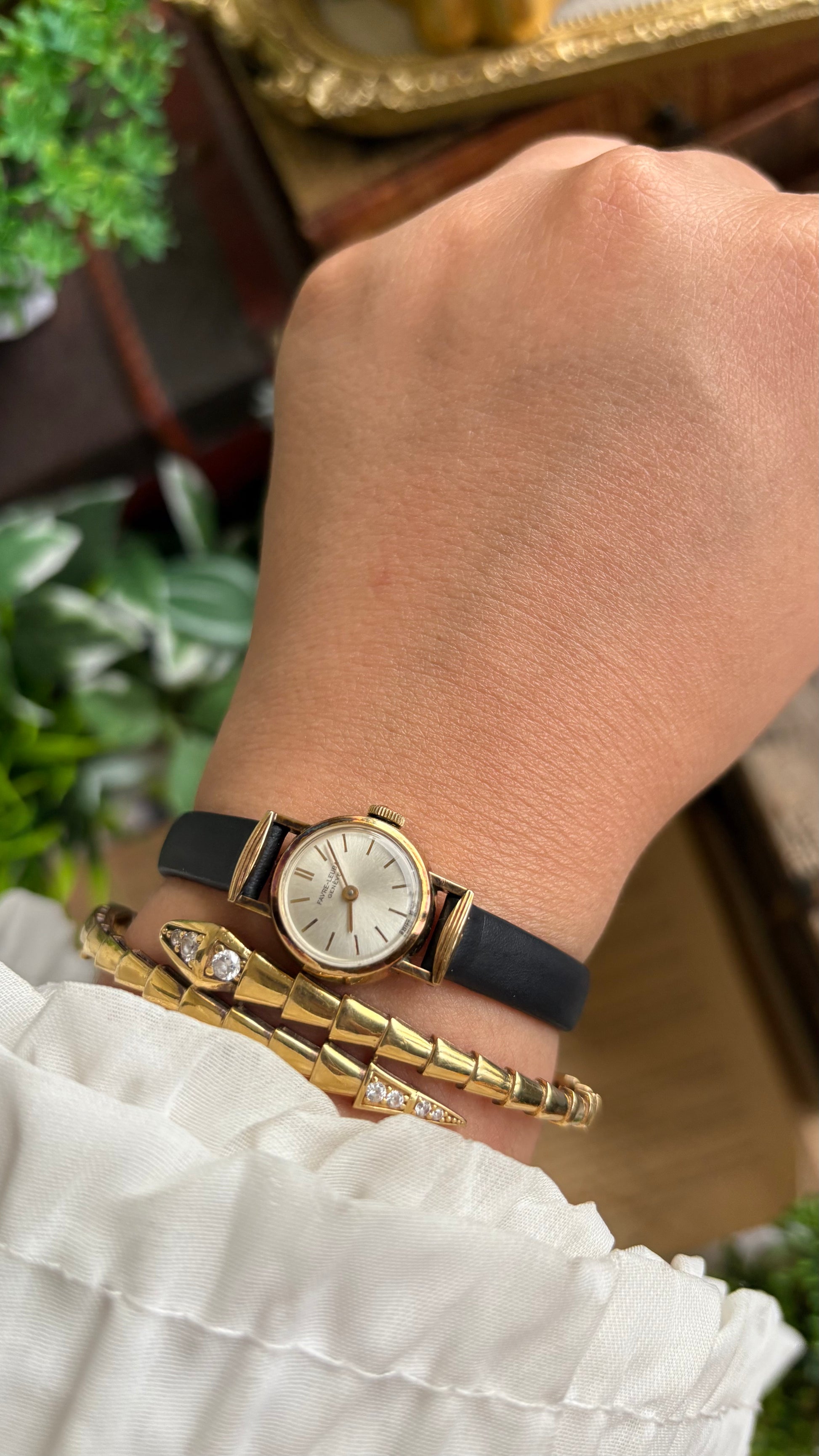 Extremely Rare Vintage Favre-Leuba Geneve Swiss Watch in Black Leather Strap