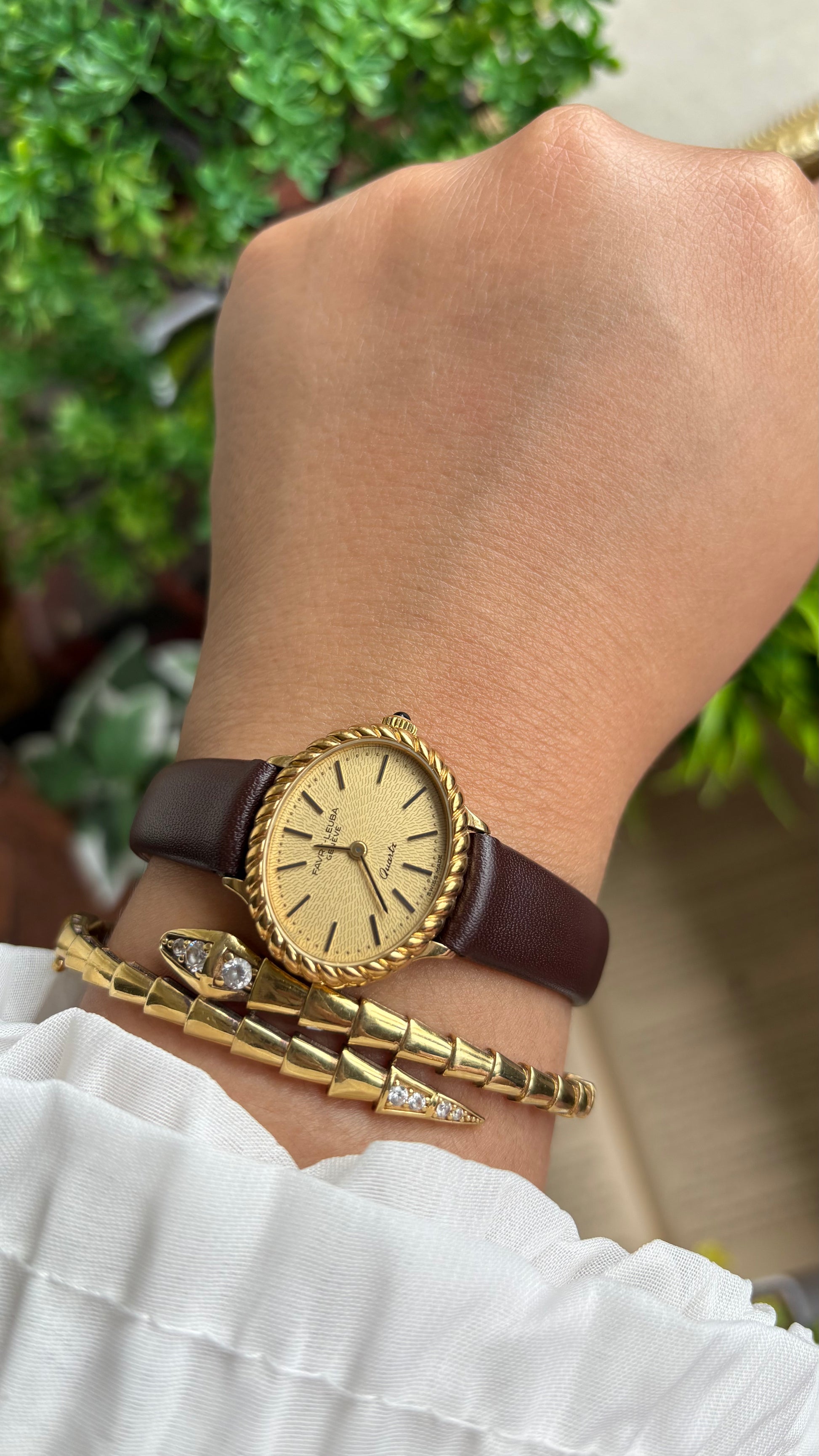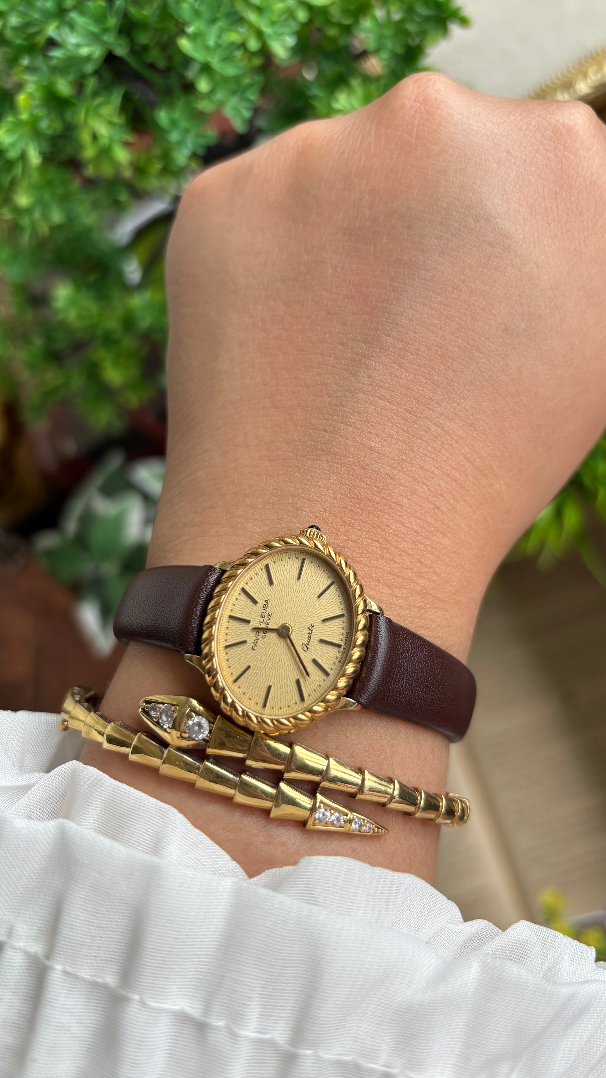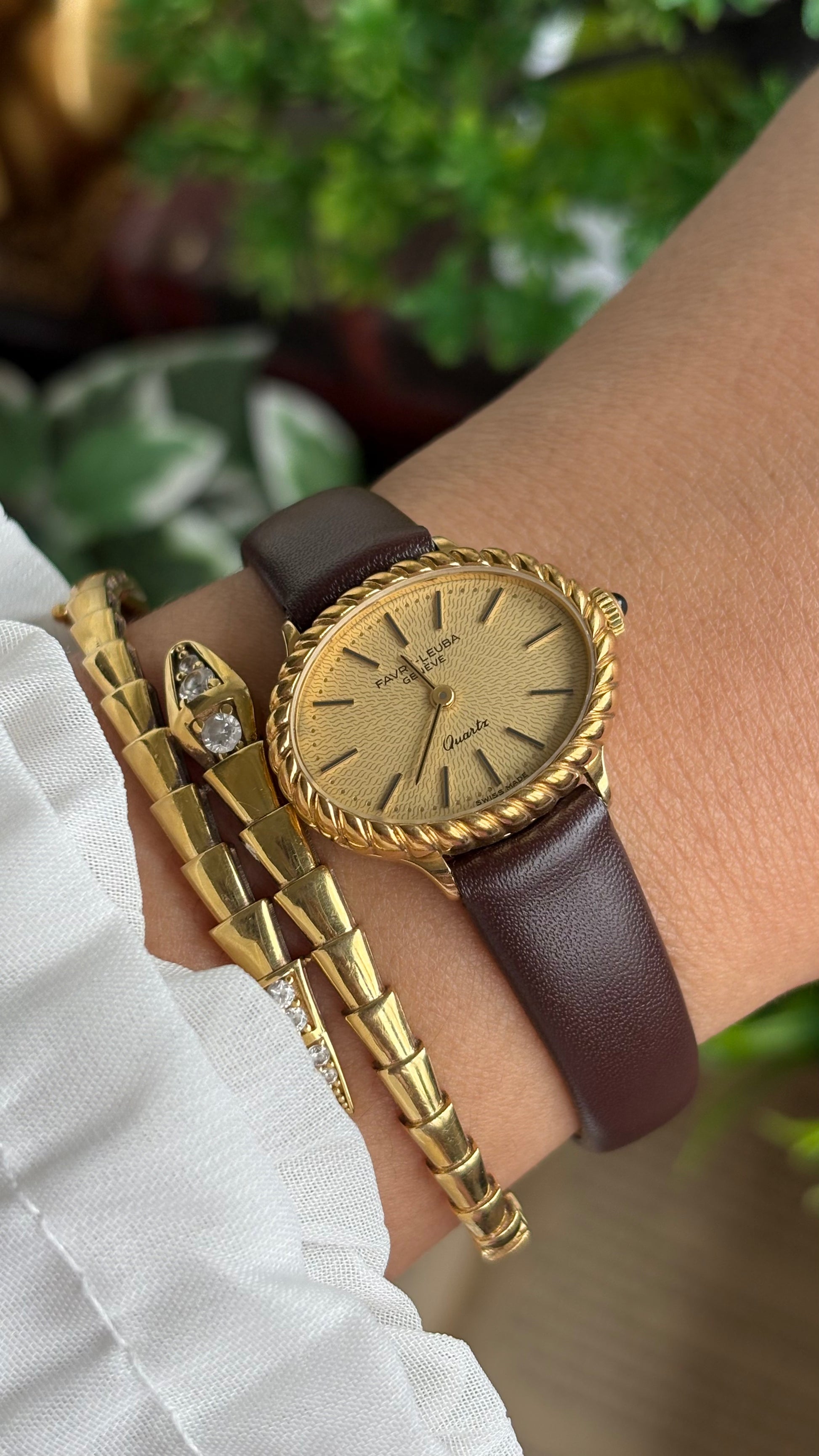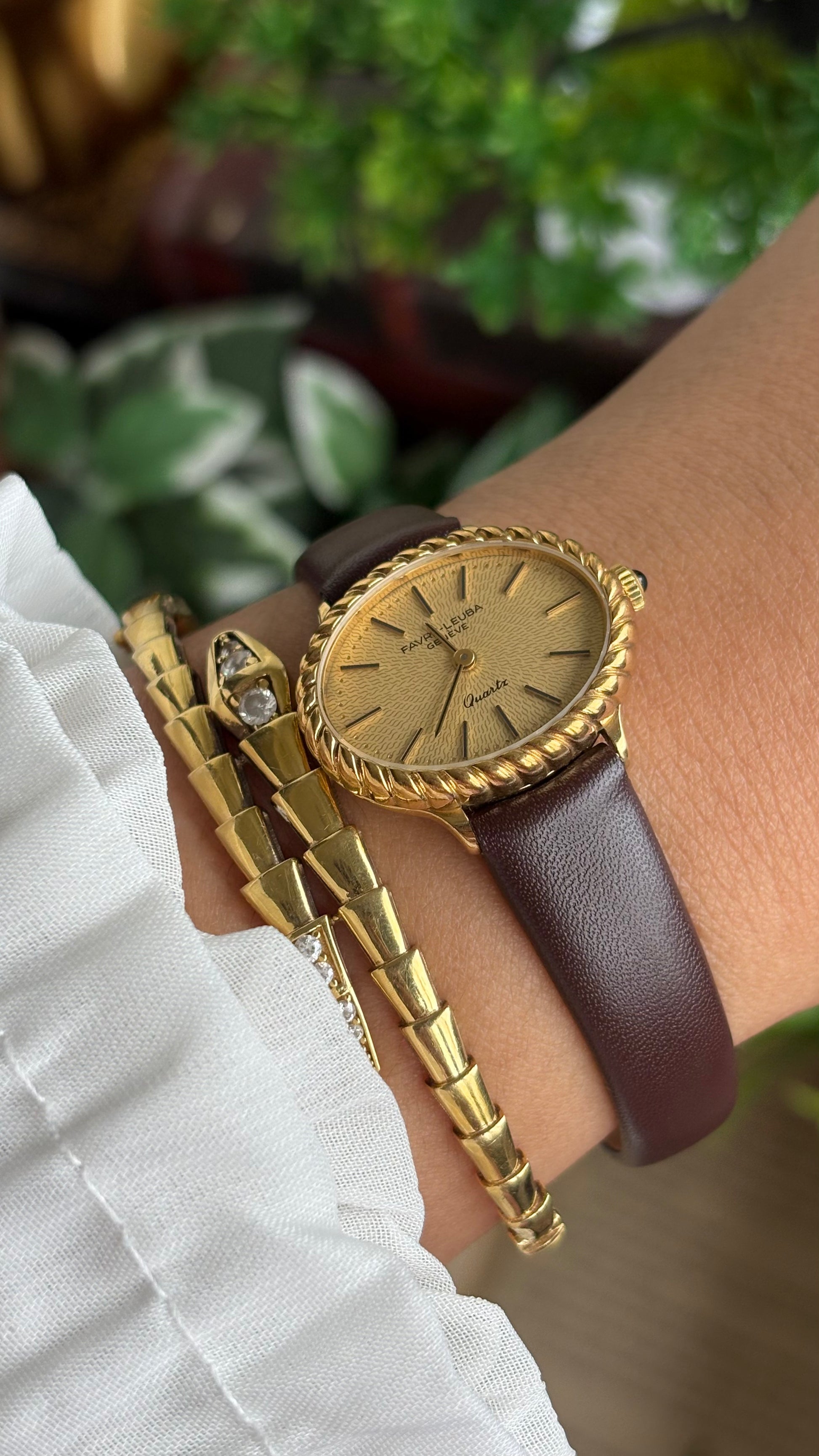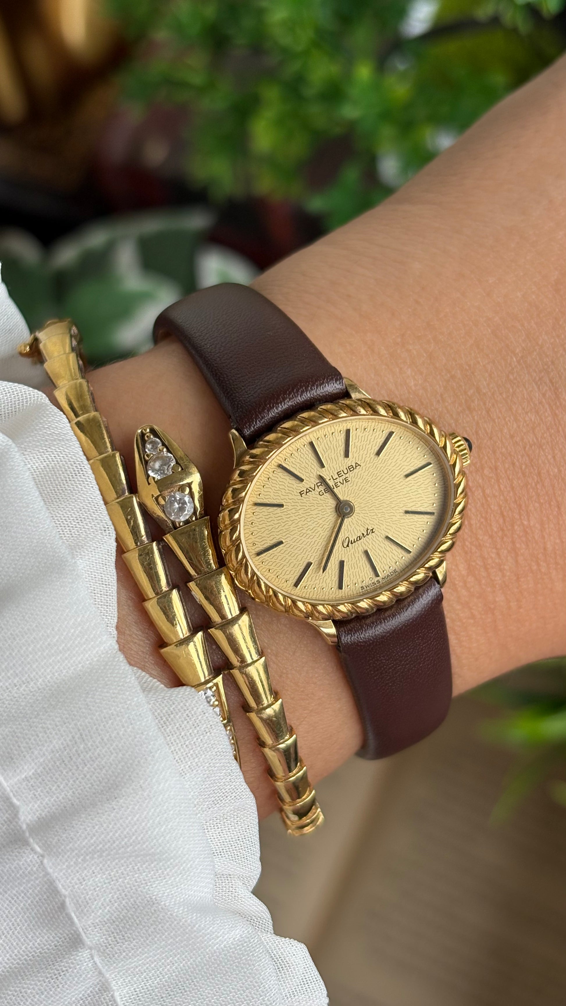 Vintage Favre-Leuba Women’s Dress Watch in Brown Leather Strap Rare Oval Art Deco Dial