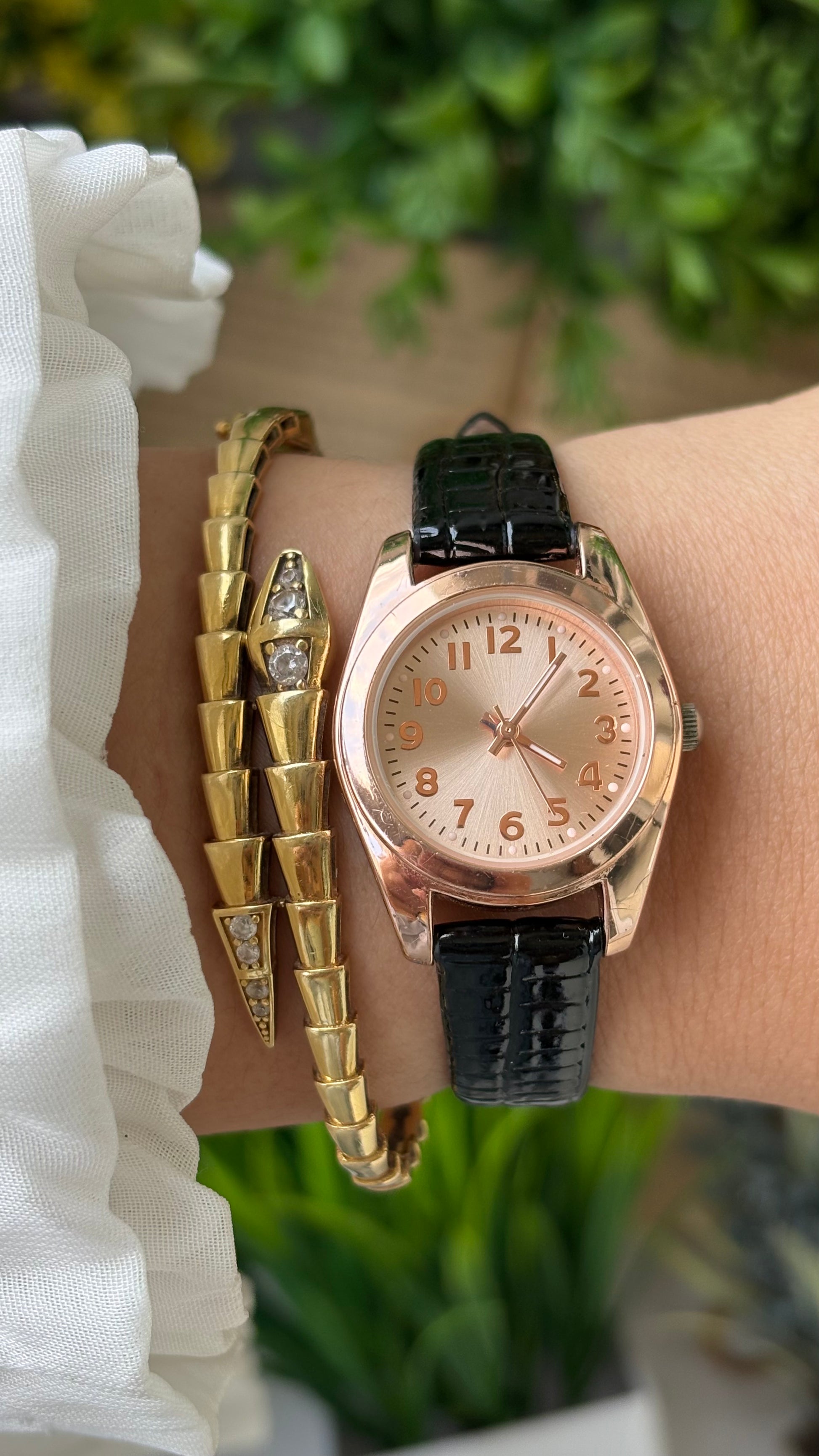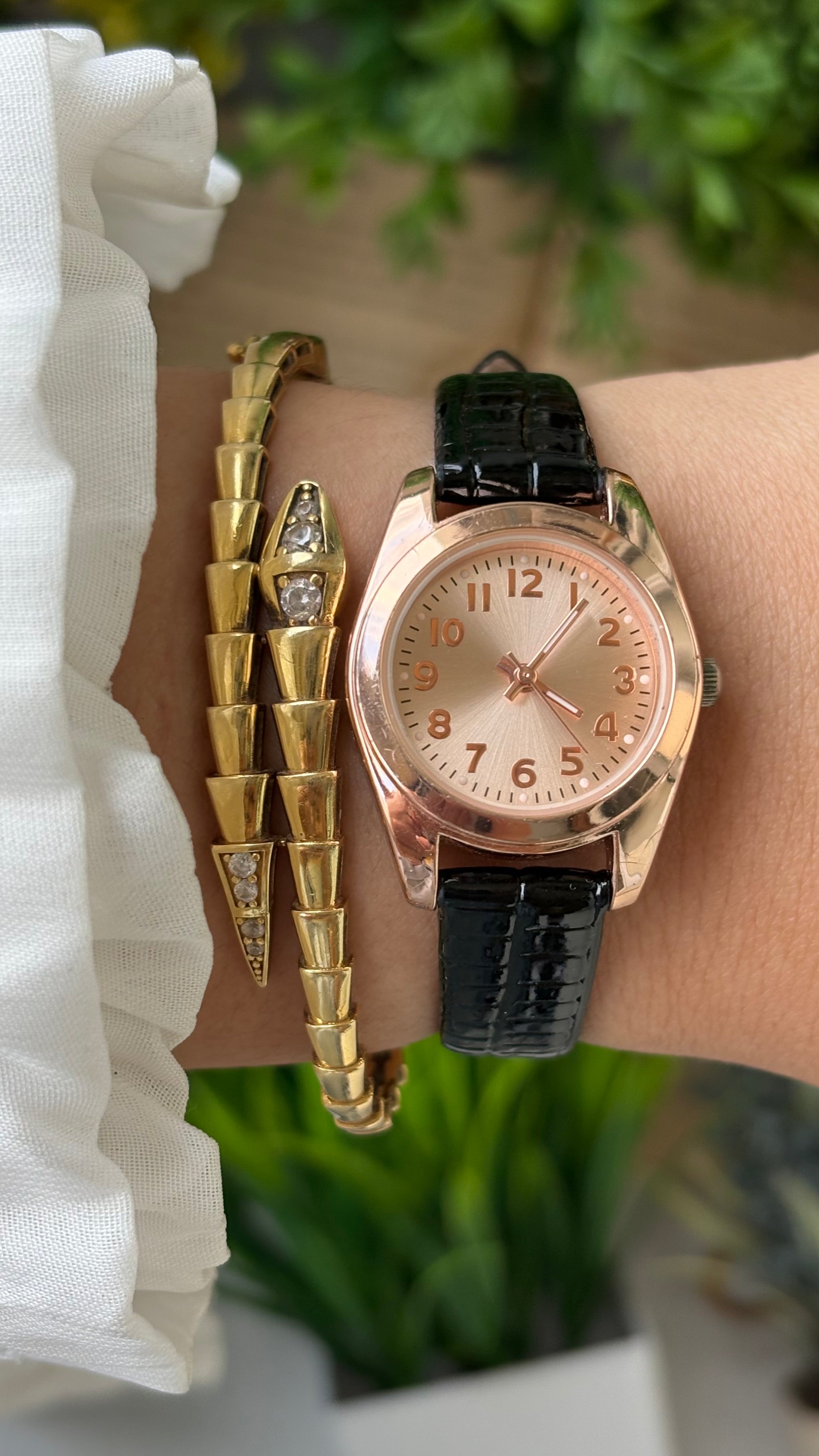 Vintage FMD Minimalist Watch in Rose Gold Tone Black Leather Quartz #00616