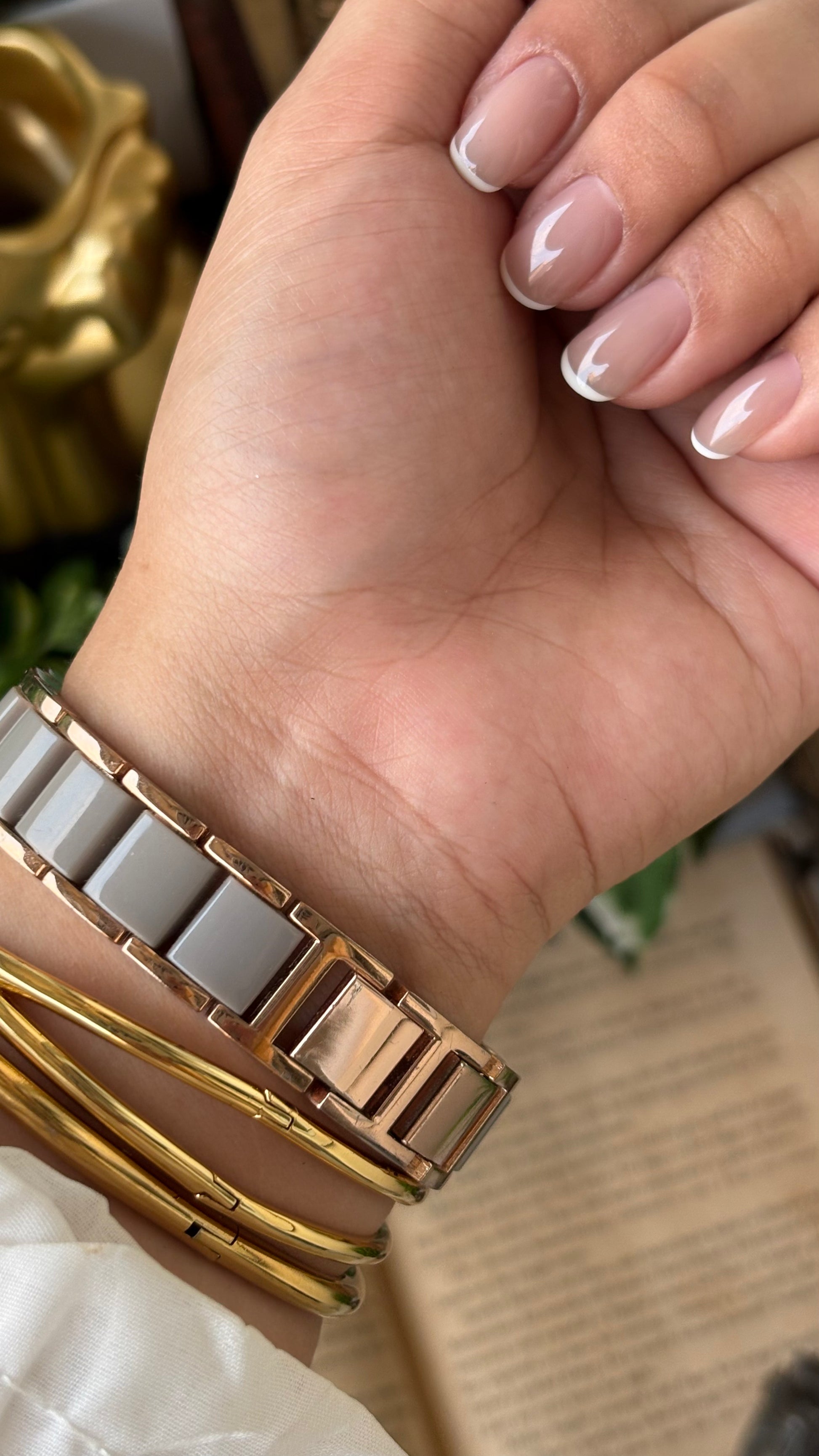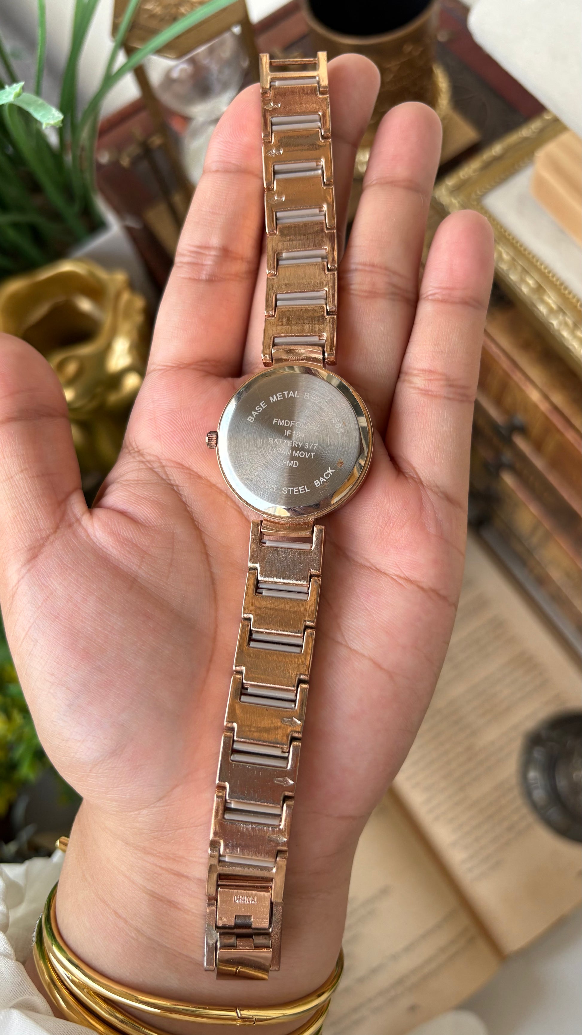 Vintage Folio by Fossil Rhinestone Bezel Watch in Rose Gold Two-Tone Dark Silver Dial Japan Quartz