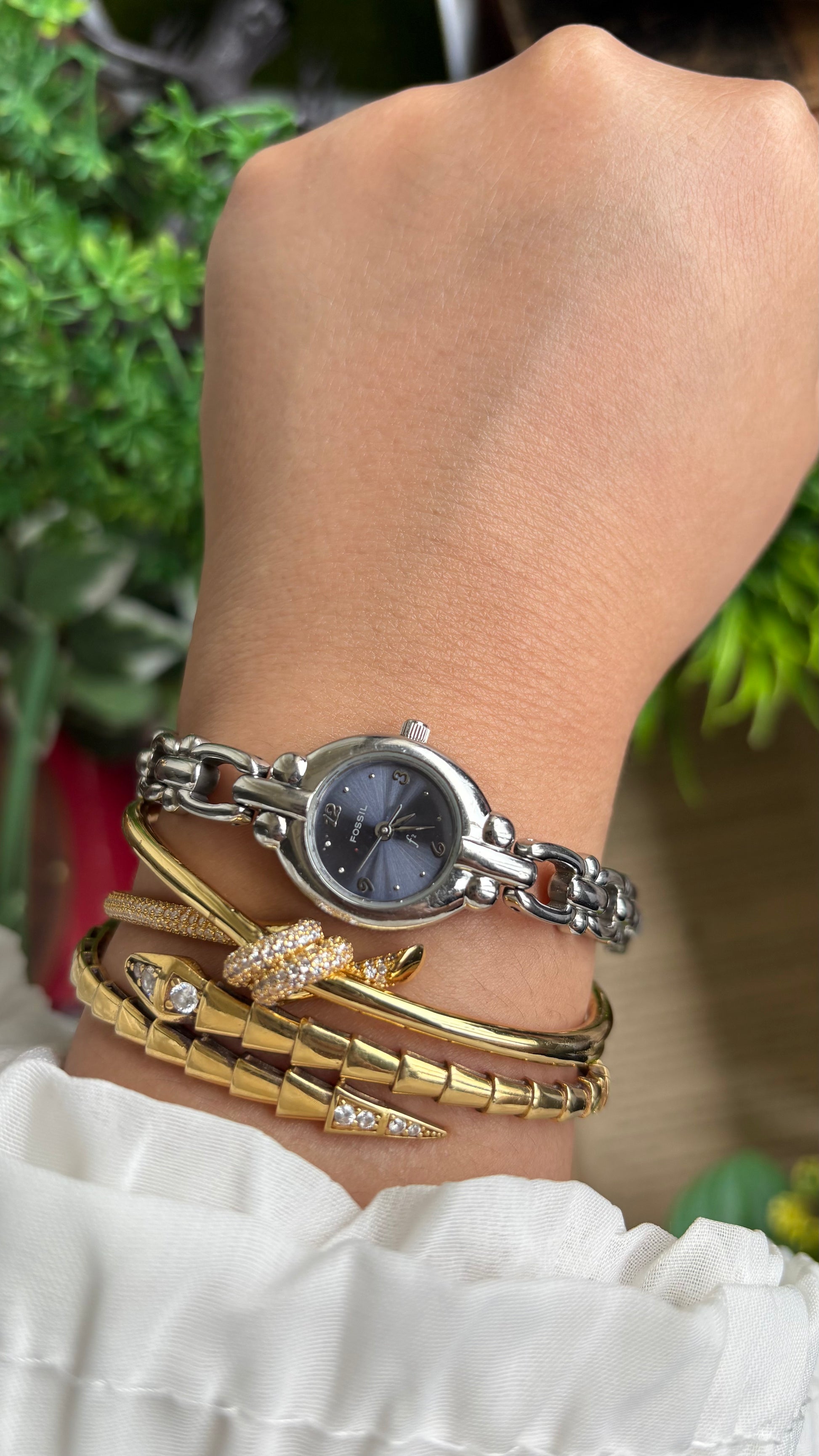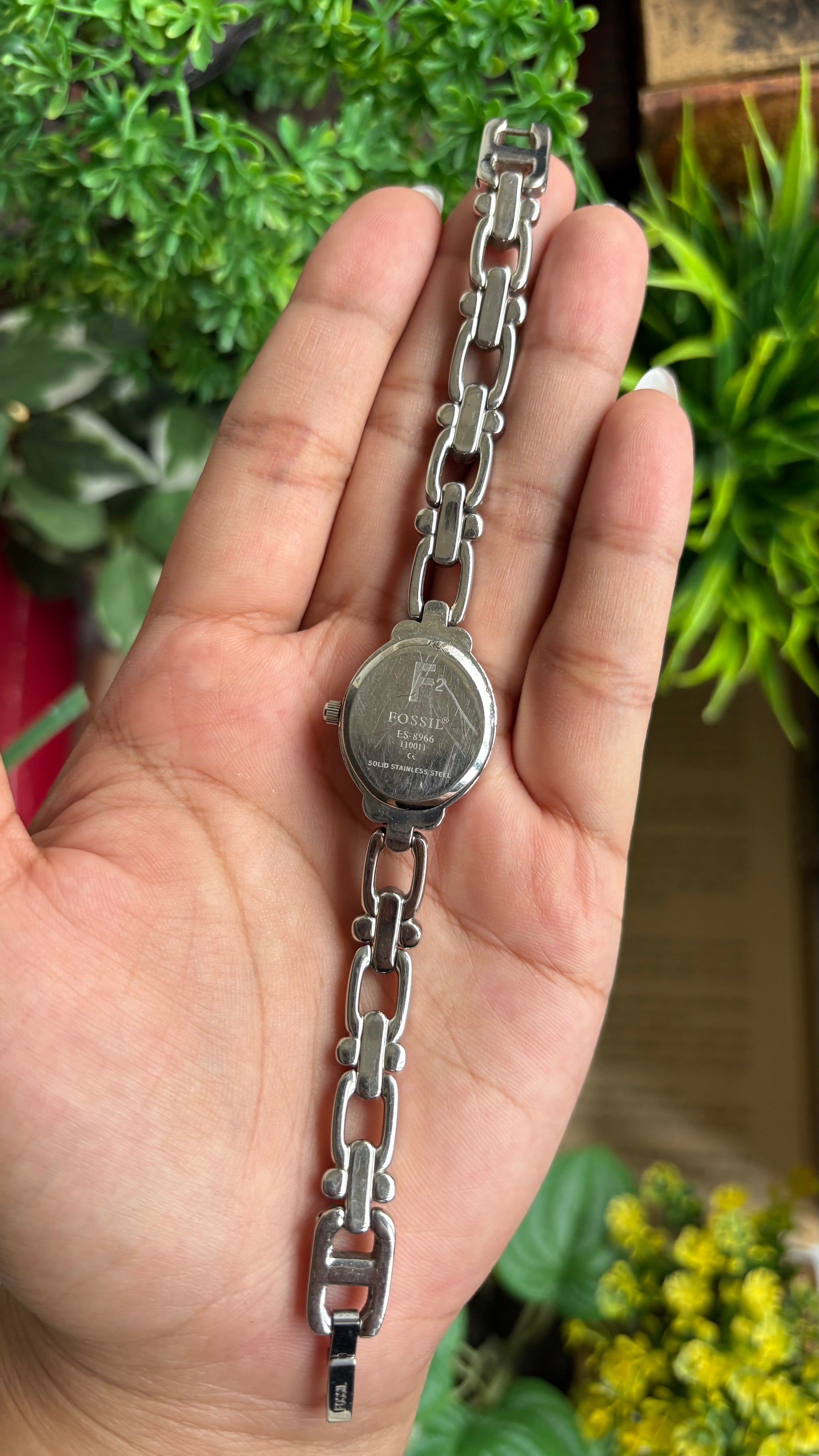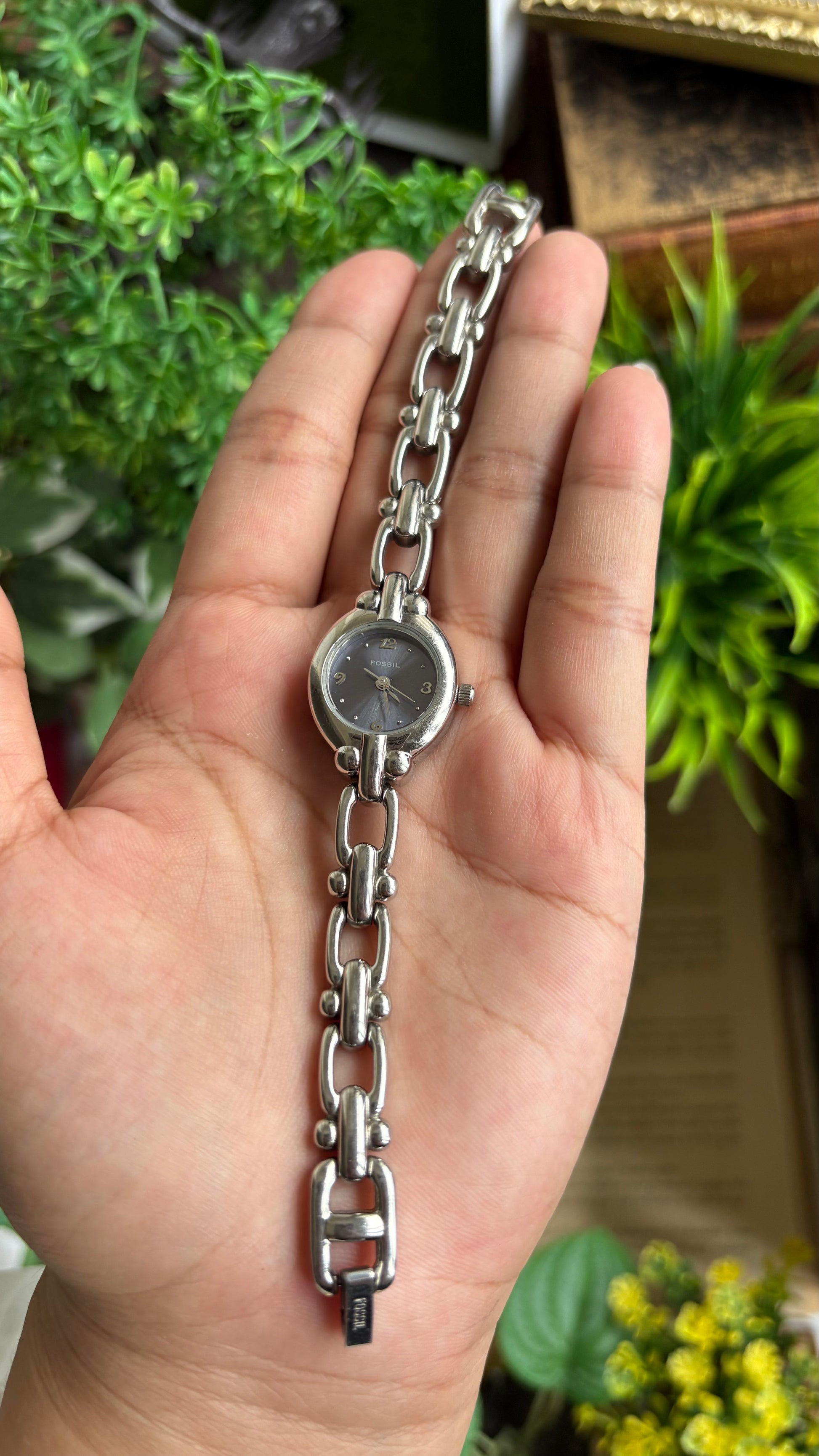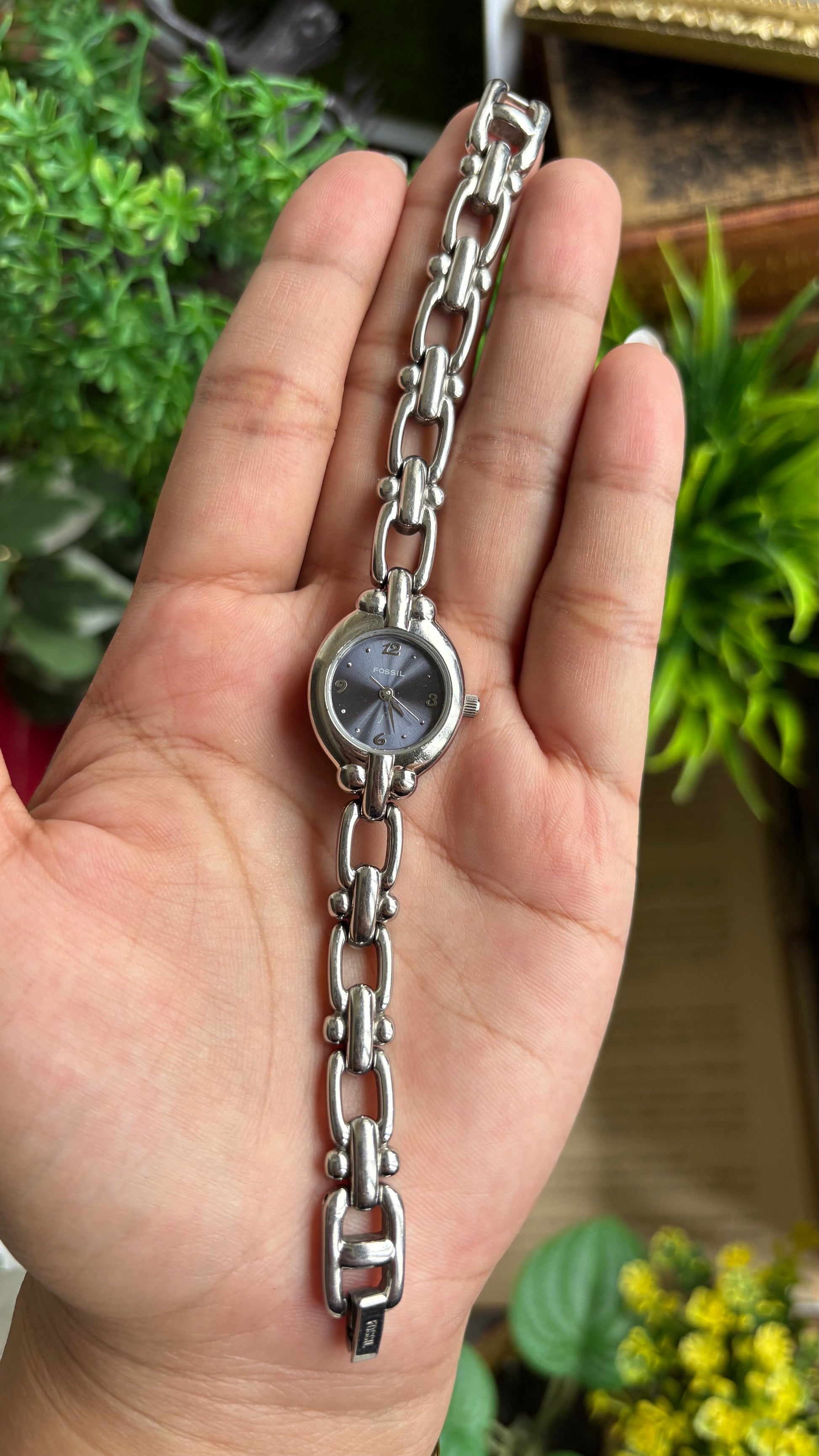 Vintage Fossil Watch in Silver Tone Navy Blue Dial