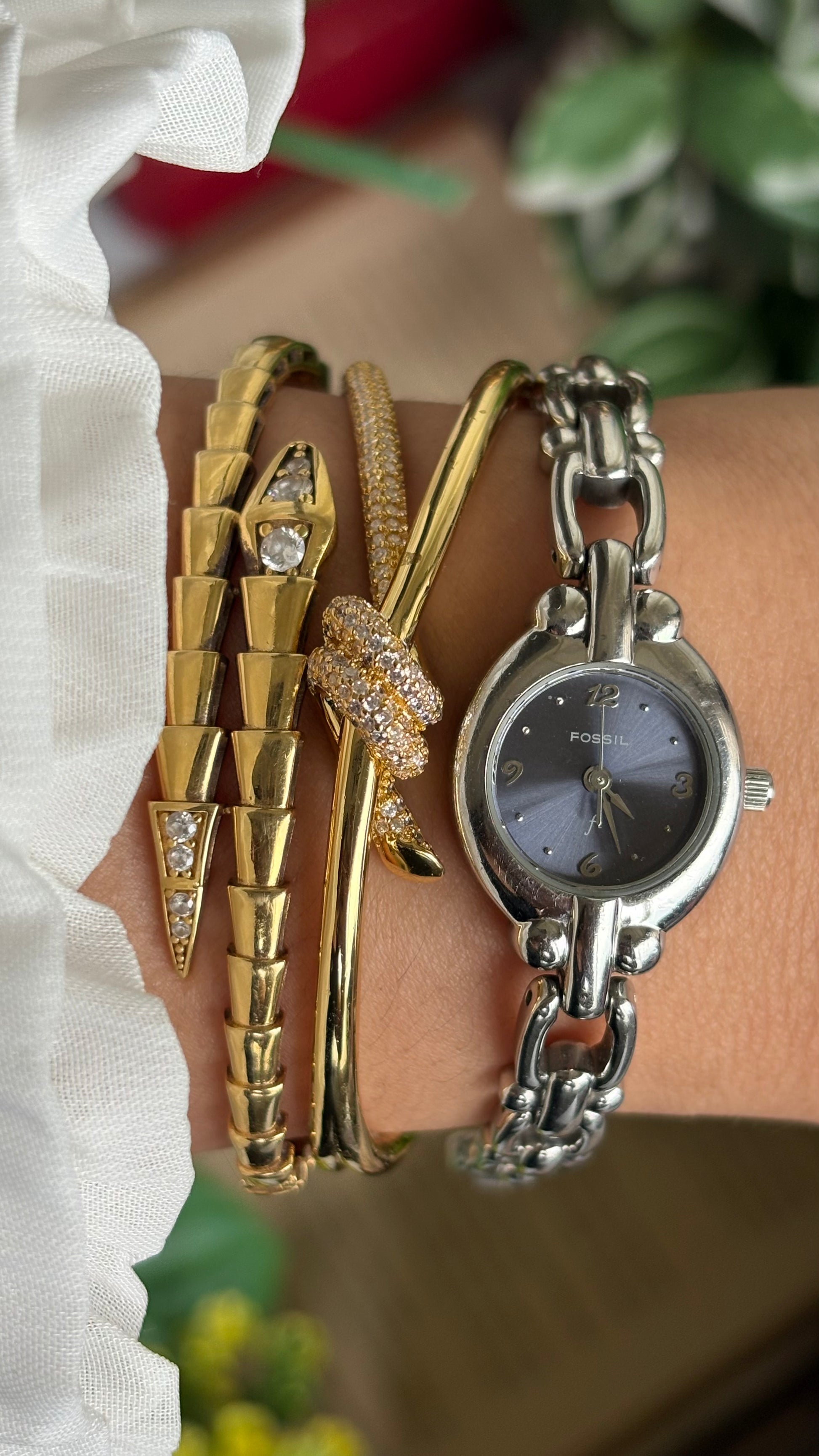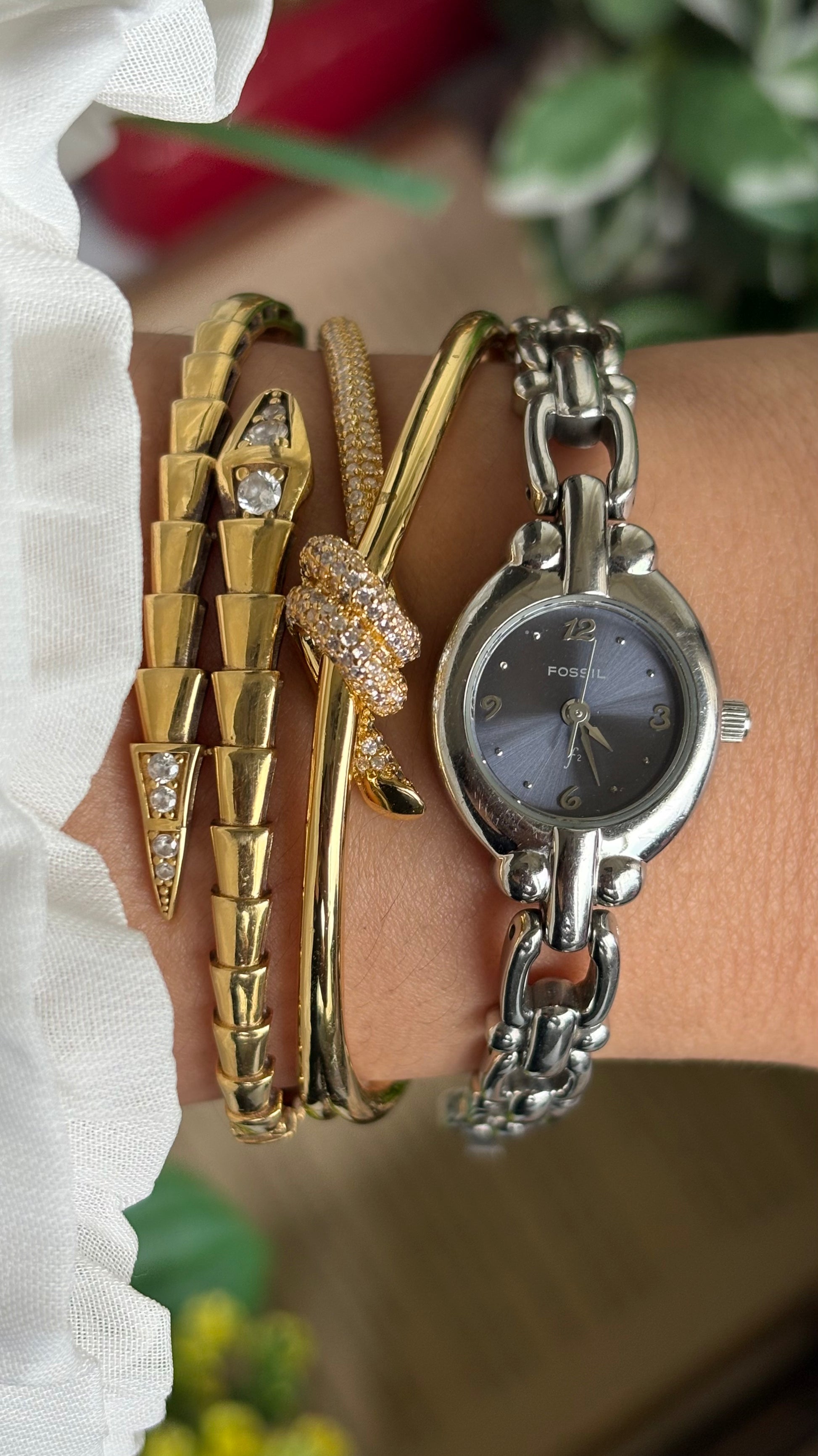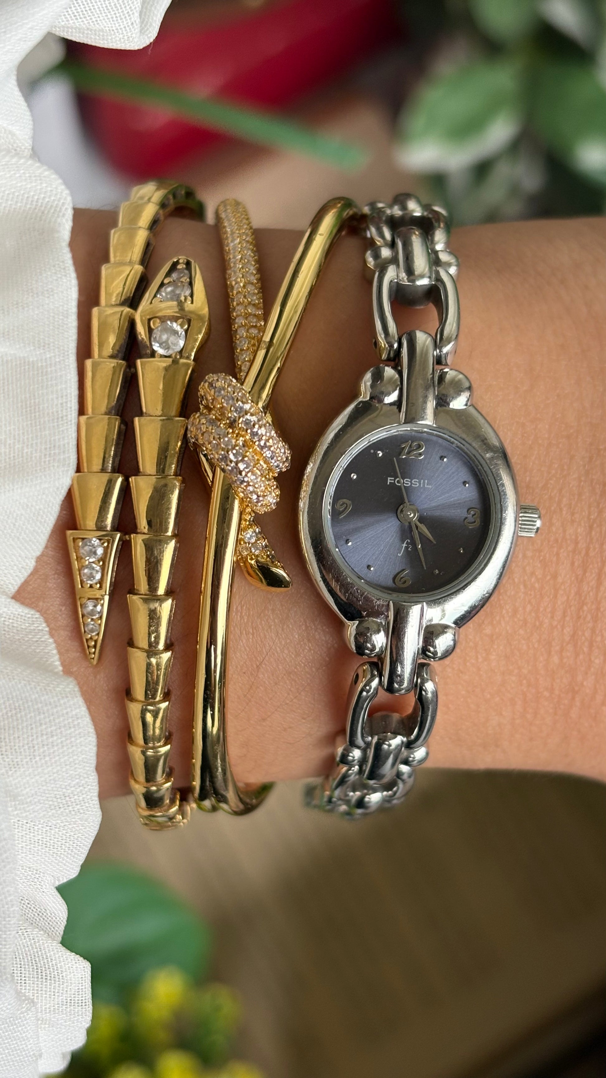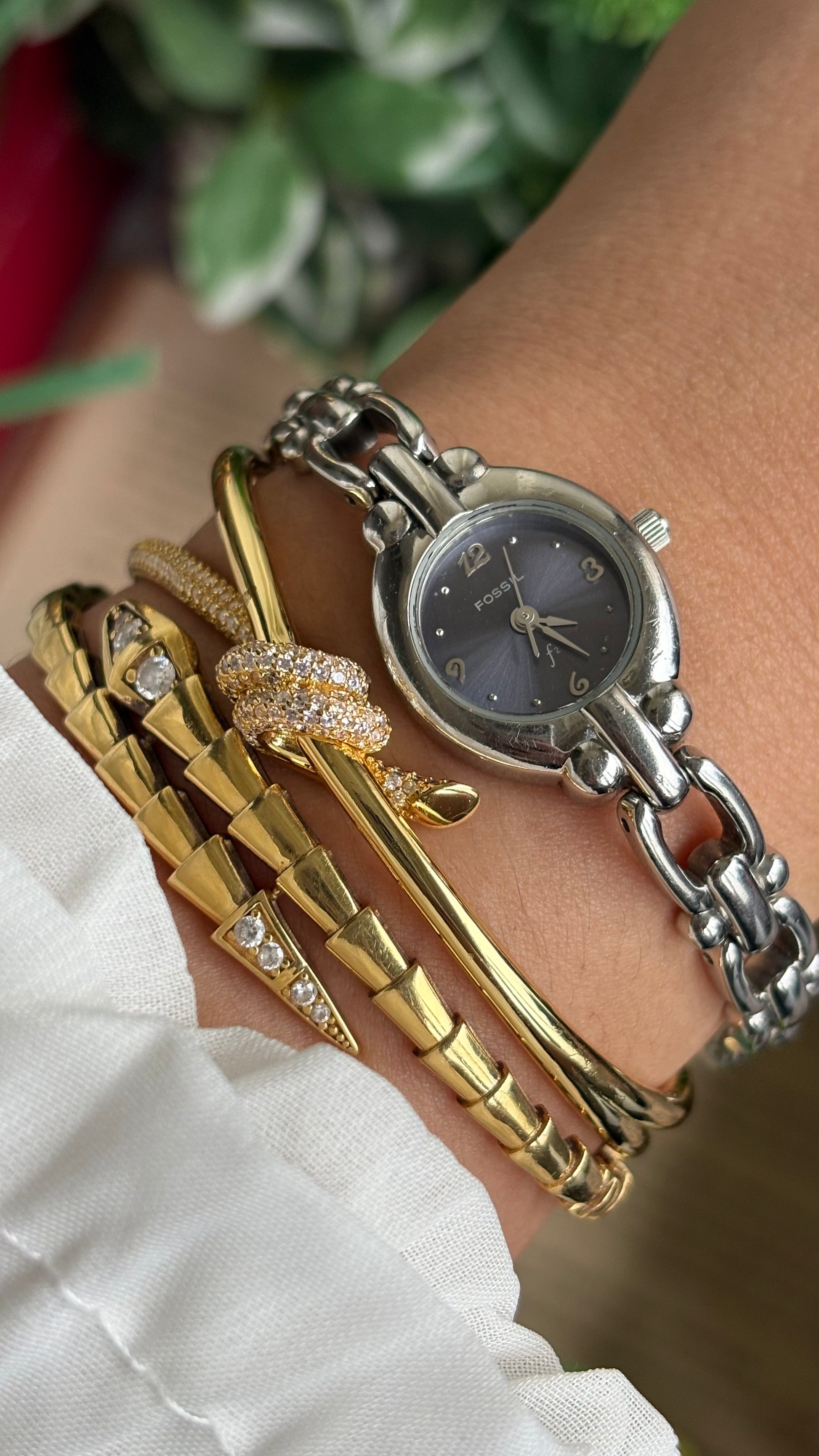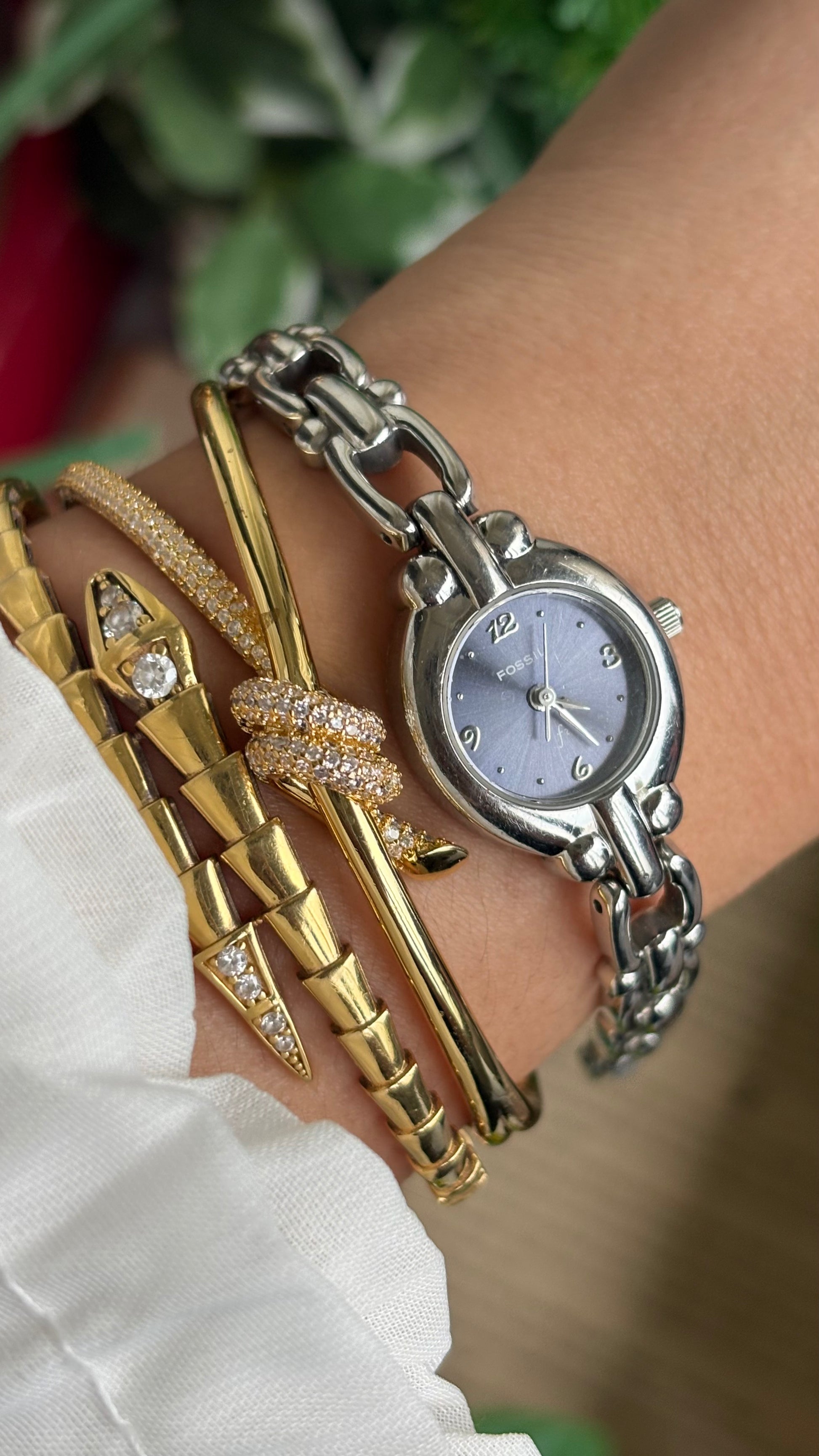 Vintage Fossil Watch in Silver Tone Navy Blue Dial