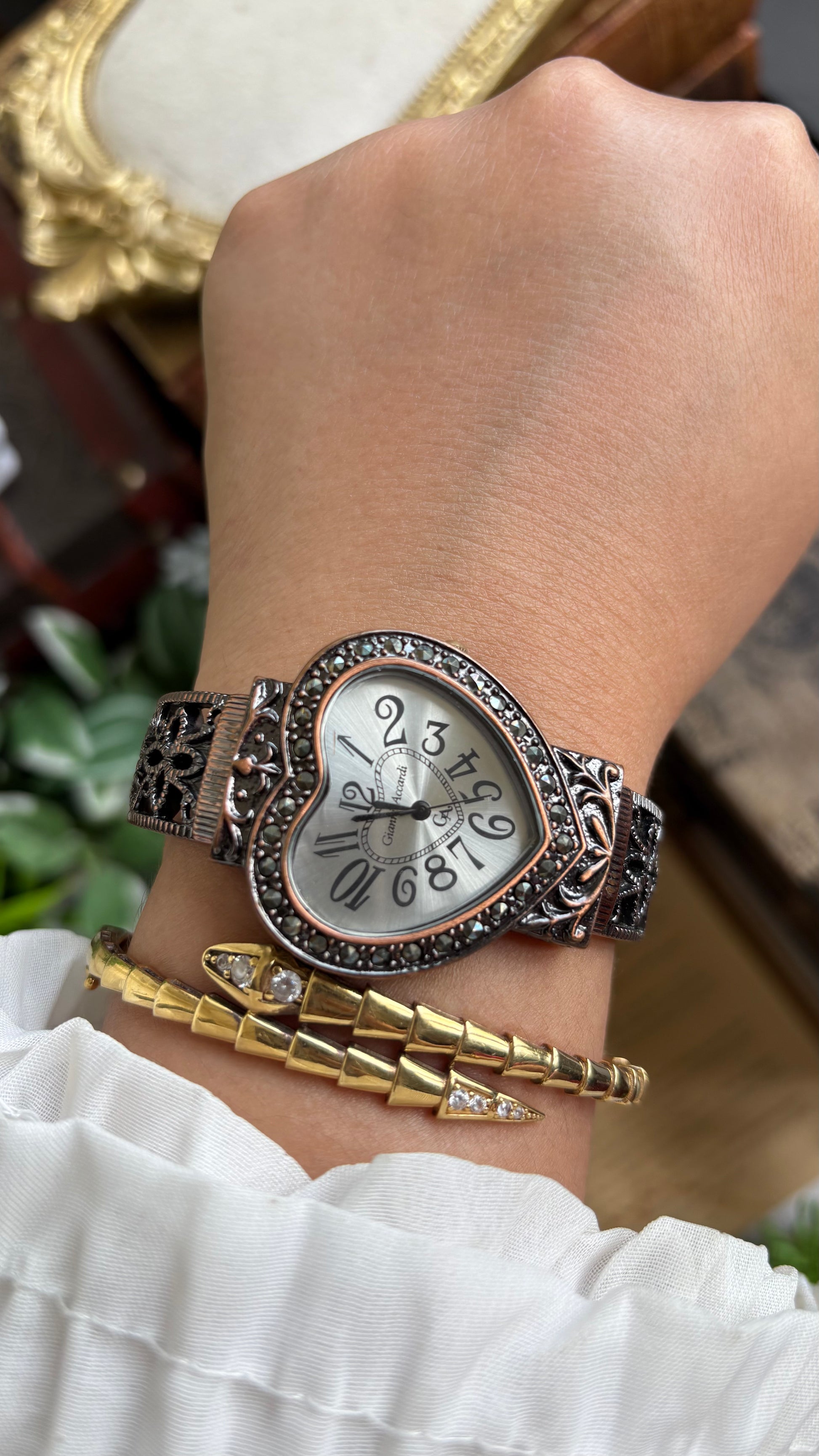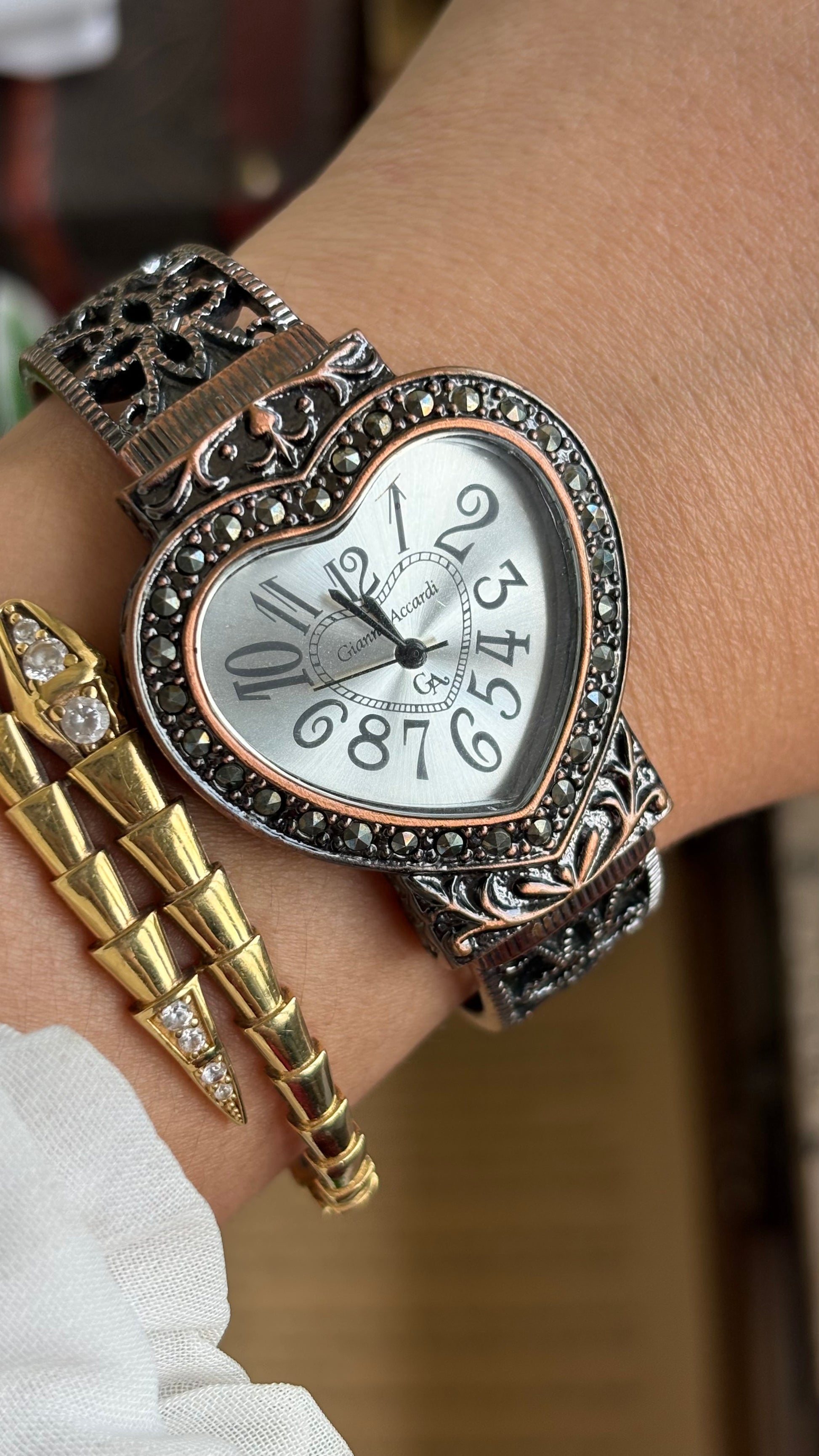 Vintage Gianni Accardi Rare Heart Bangle Watch in Bronze Tone