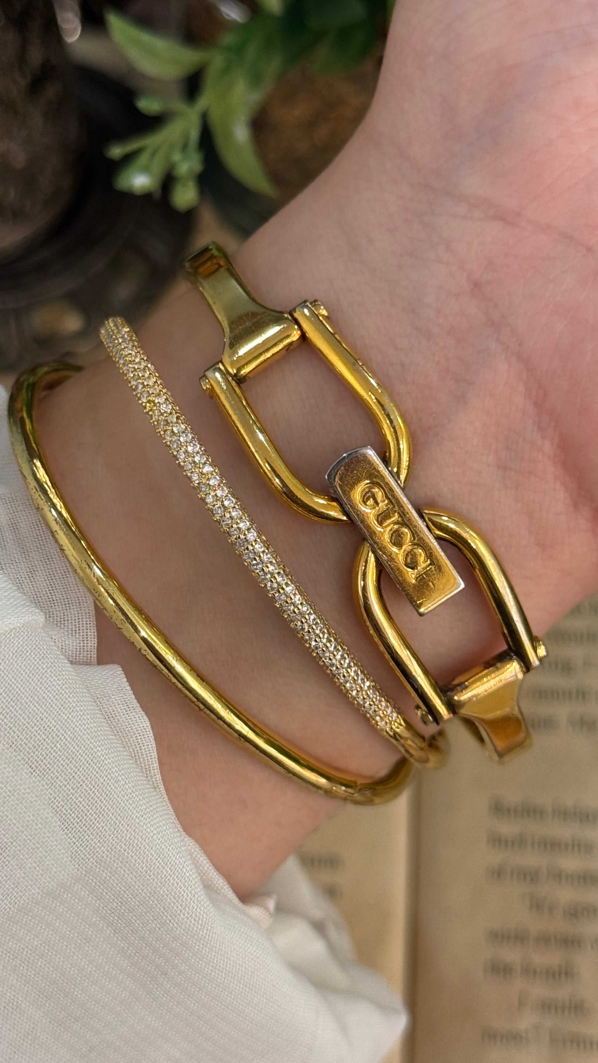 Vintage Gucci Swiss 1500L Bangle Watch in Gold Tone Mother of Pearl Dial Quartz