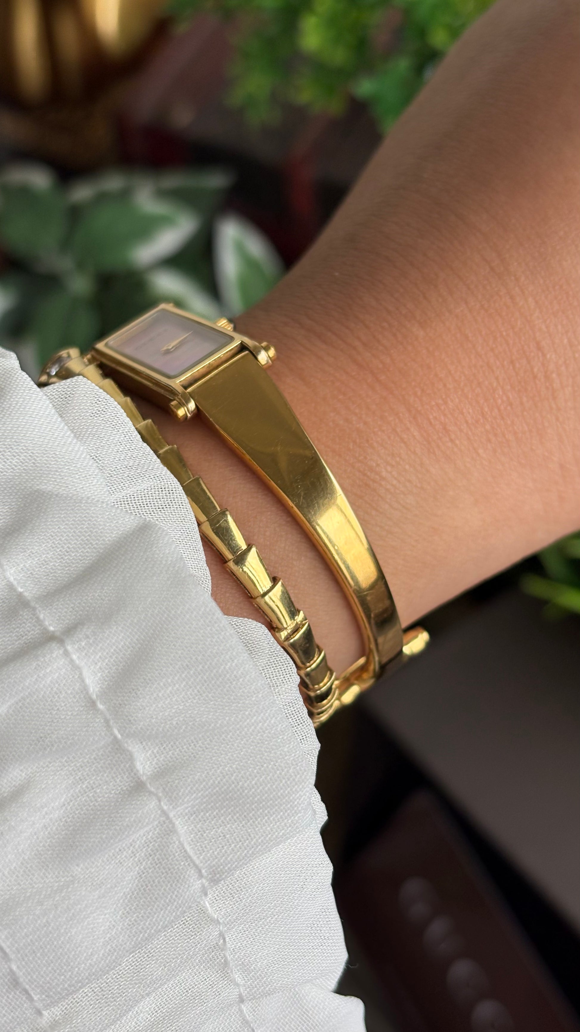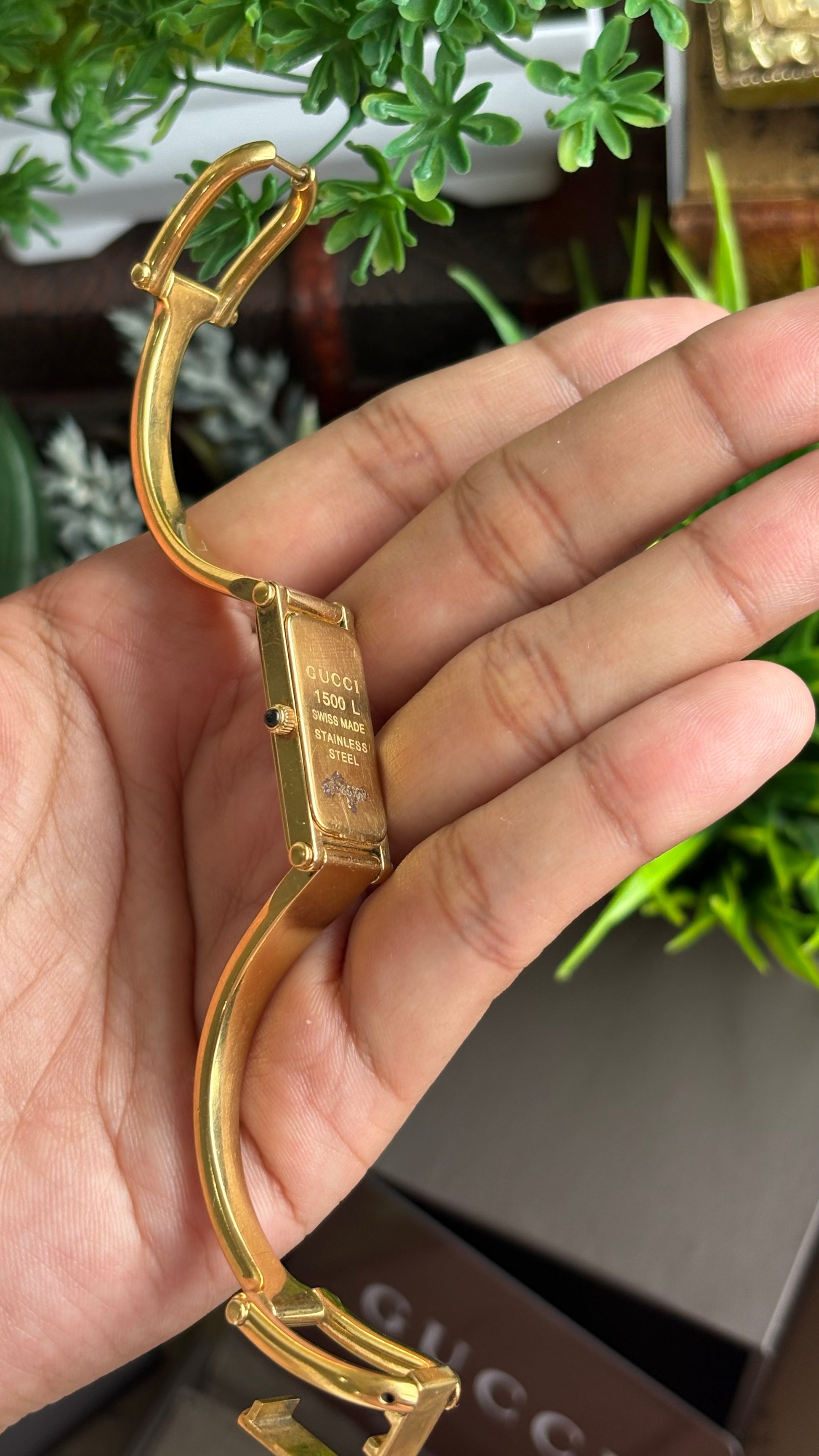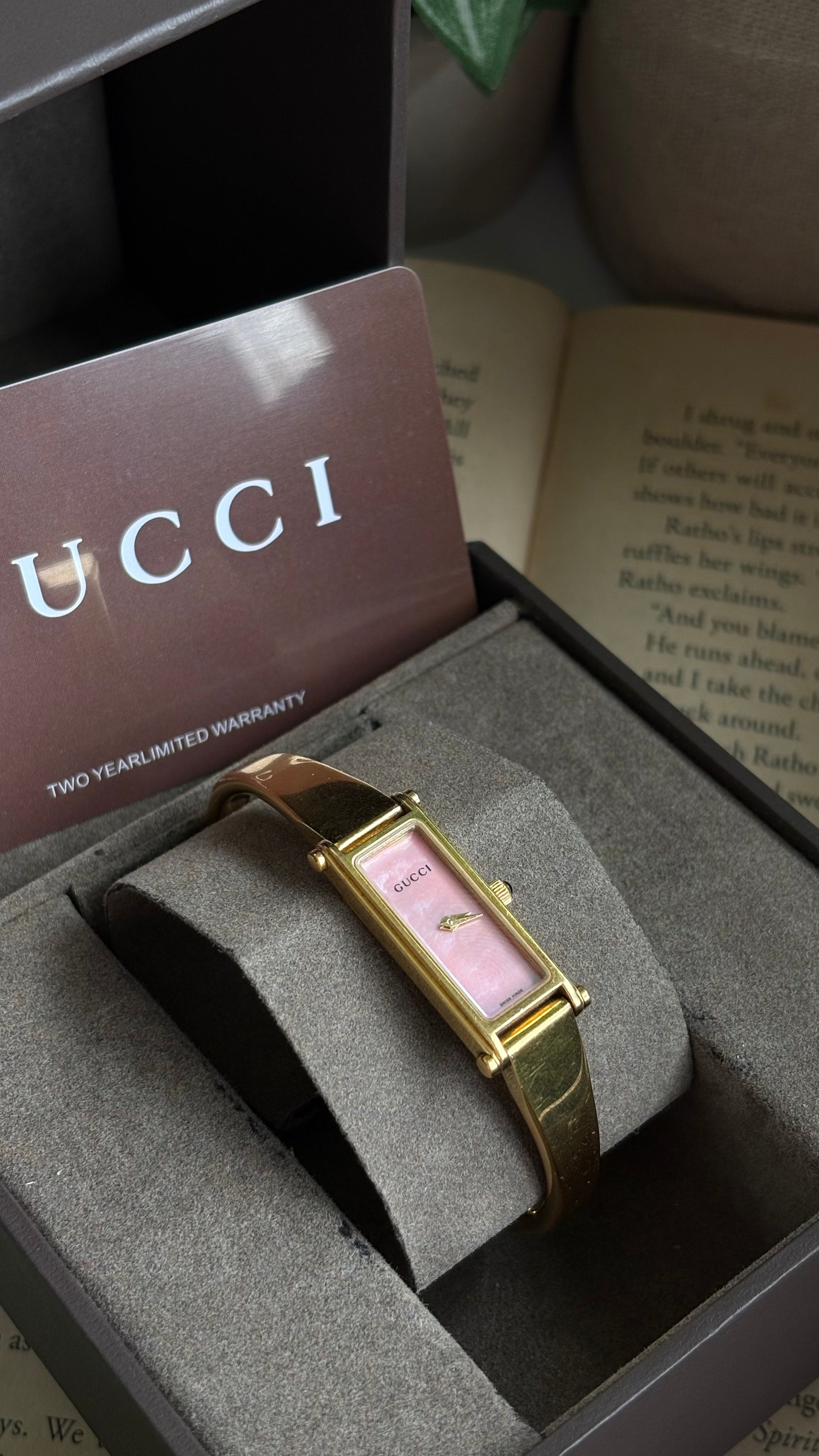 Vintage Gucci 1500L Watch in Gold Tone Mother of Pearl Pink Dial with Gucci Box