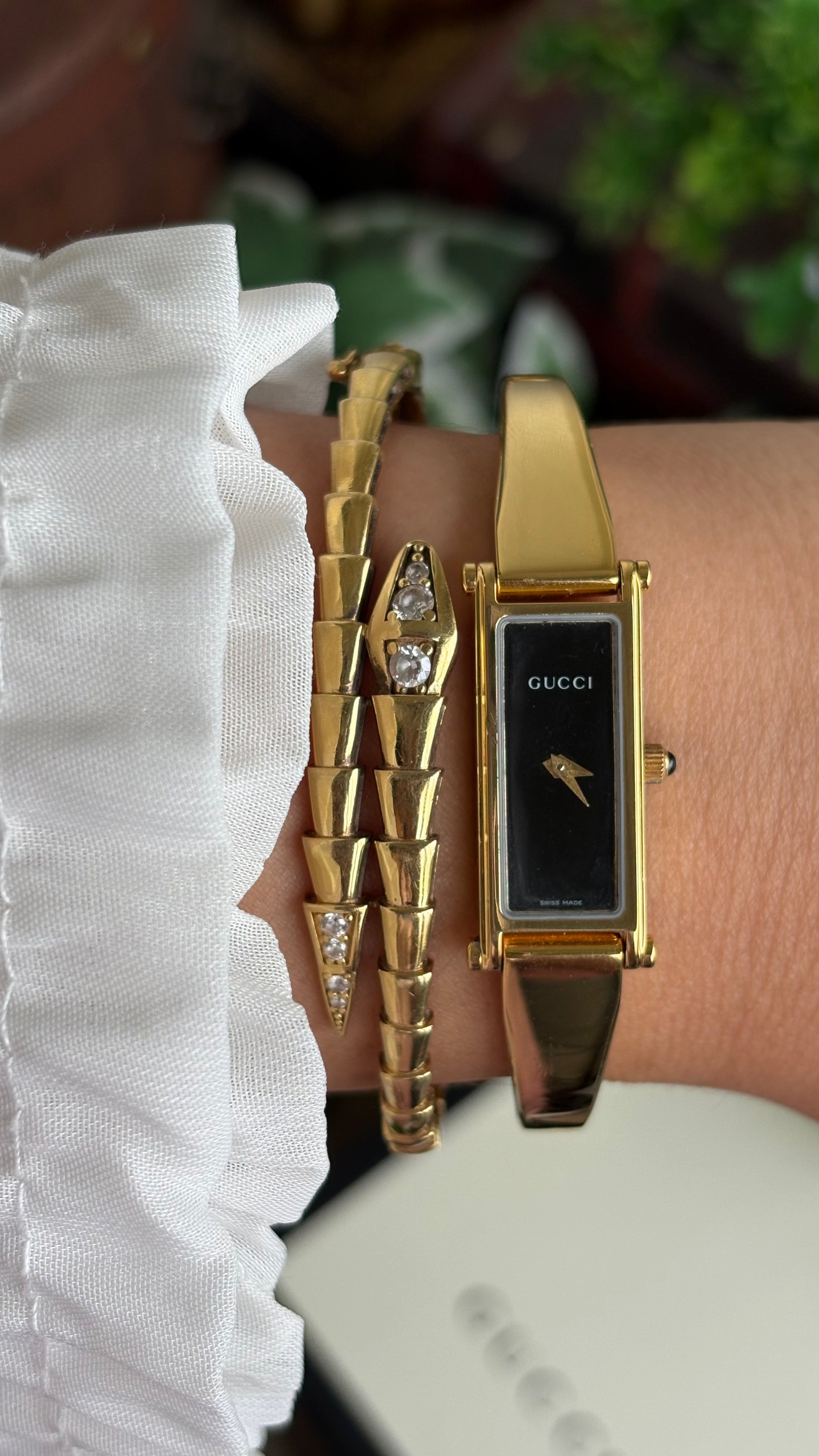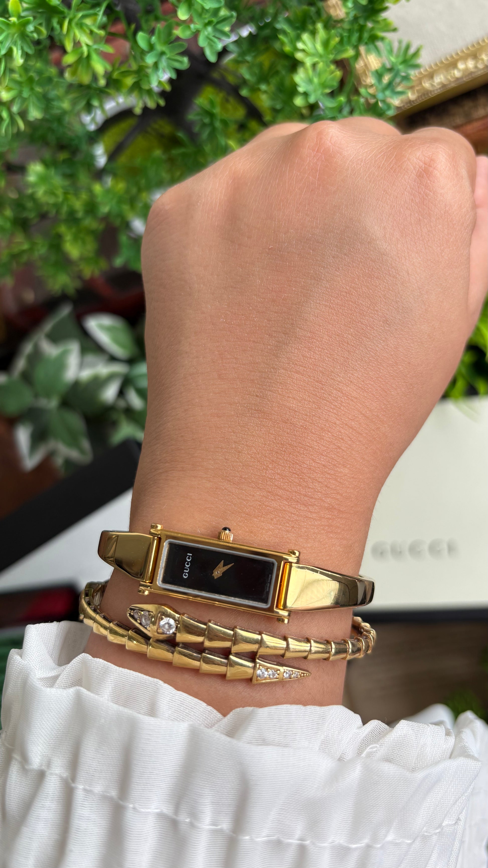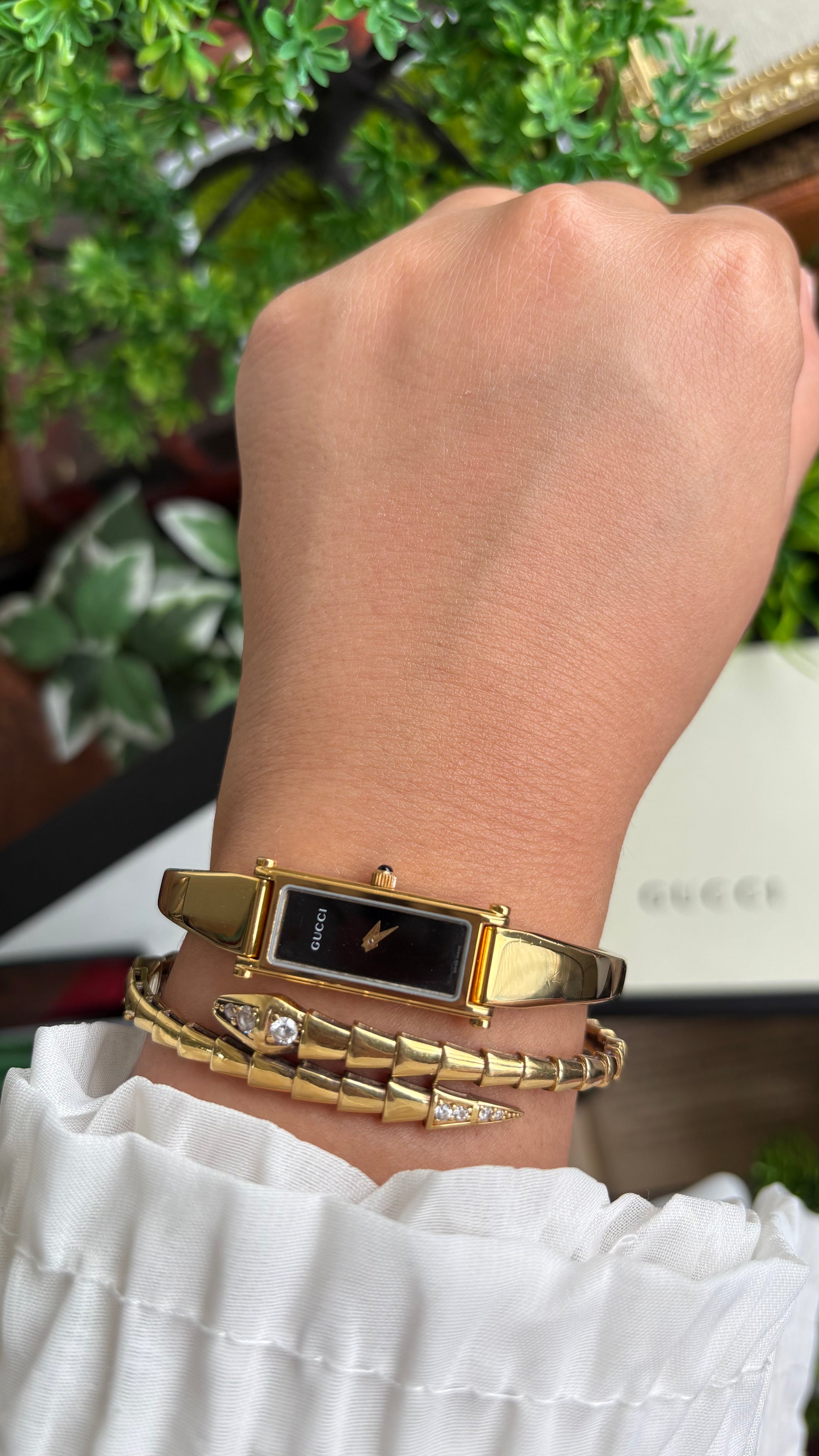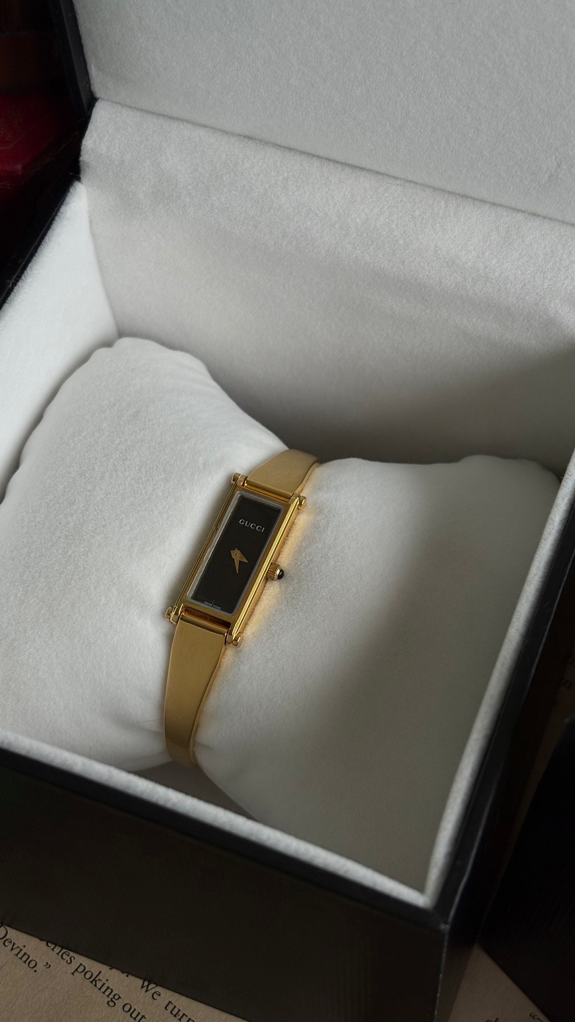 Vintage Gucci 1500L Watch in Gold Tone Black Dial with Gucci Box