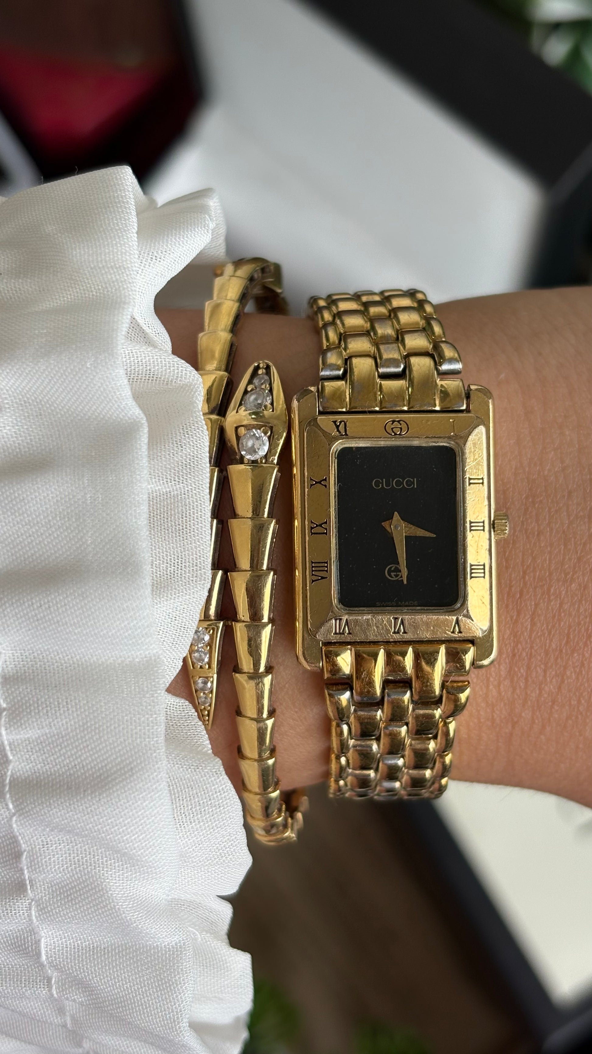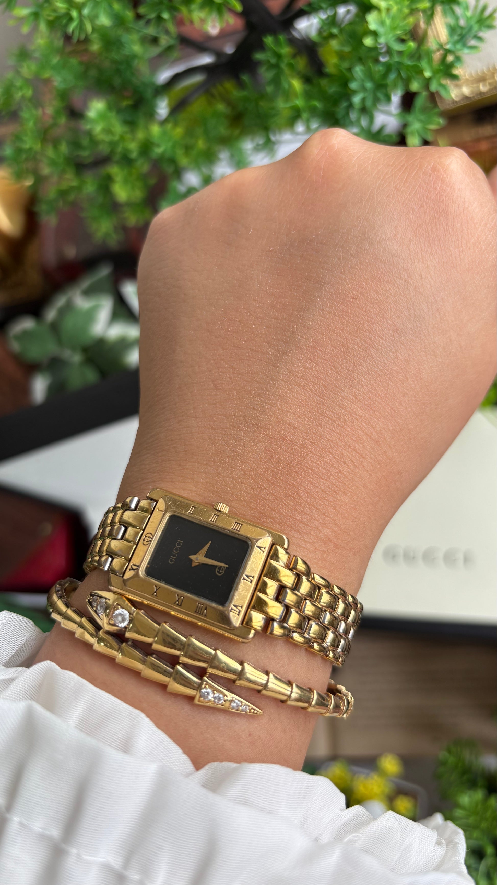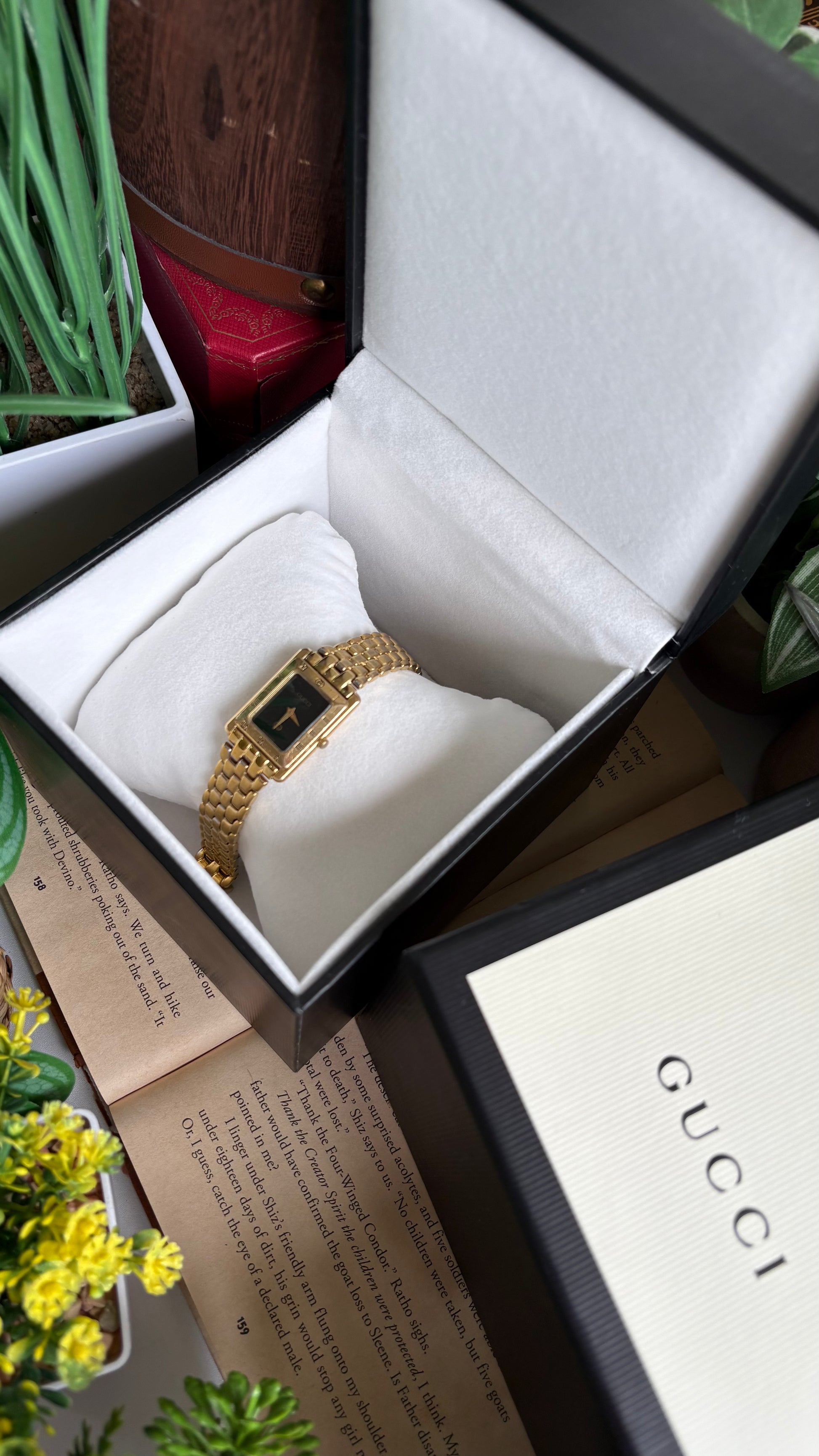 Vintage Gucci 4200L Tank Watch in Gold Tone Black Dial with Gucci Box
