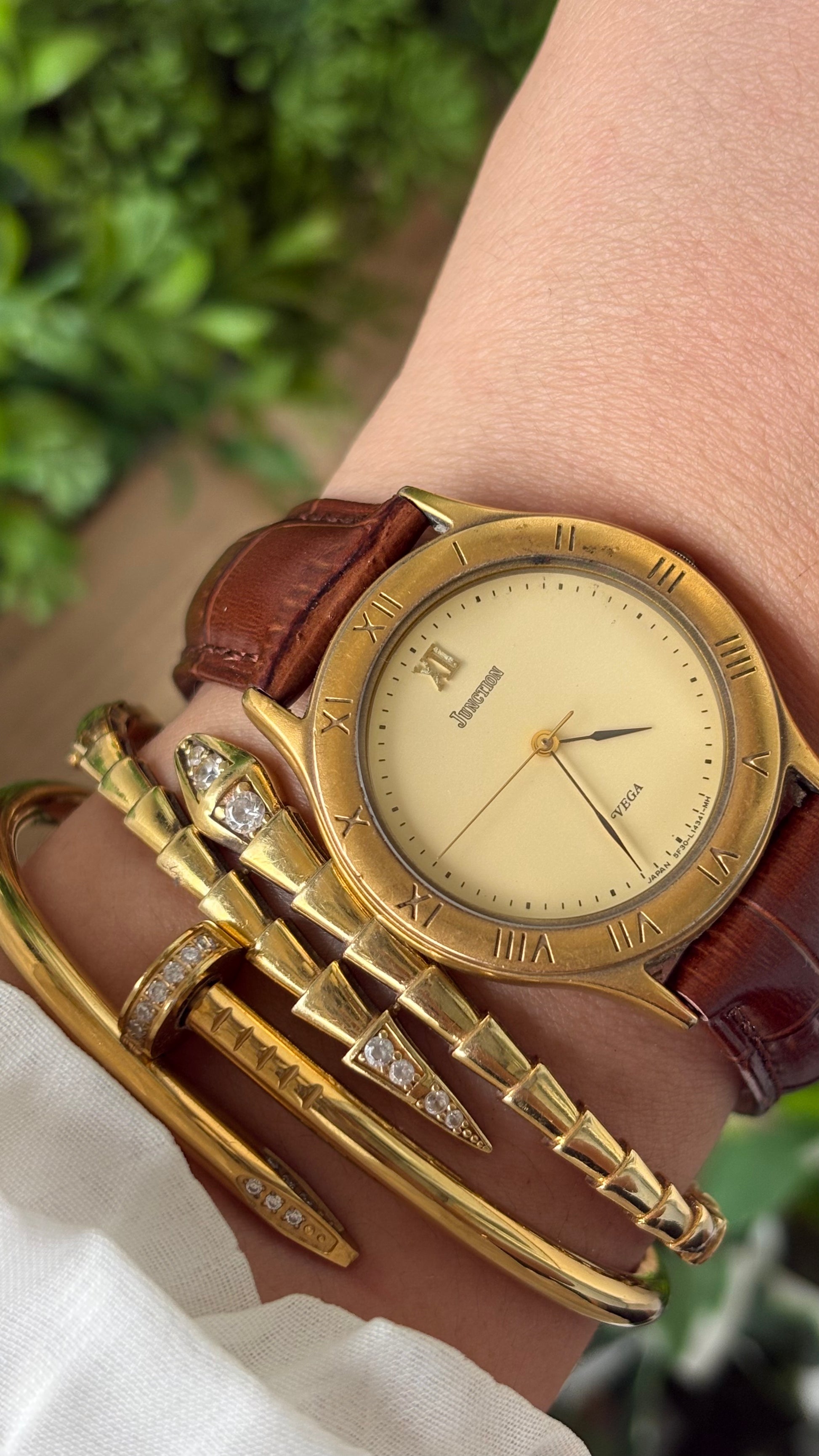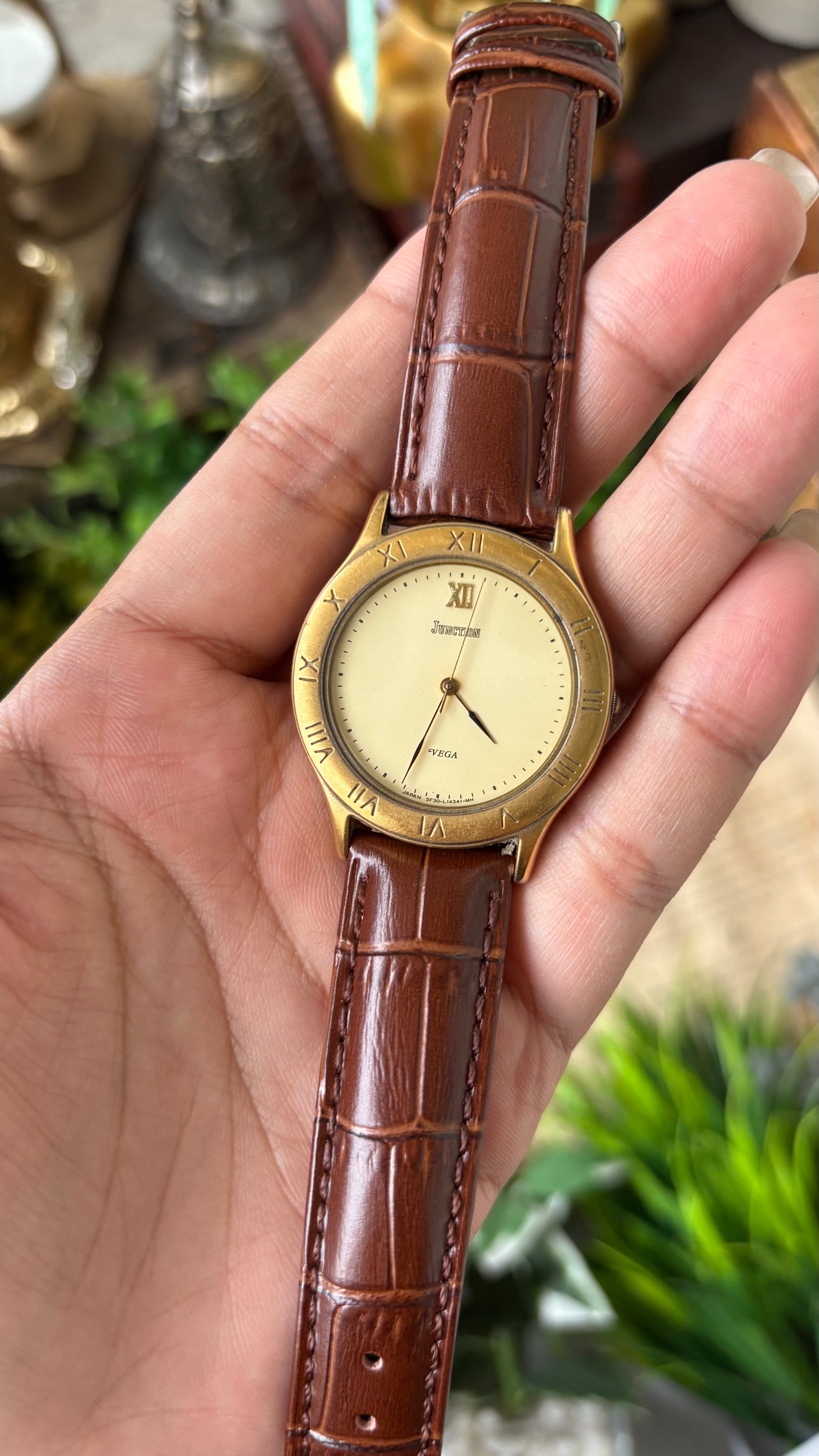 Vintage Junction by Citizen Vega Engraved Bezel Indices Watch in Gold Tone Brown Leather Quartz #00935